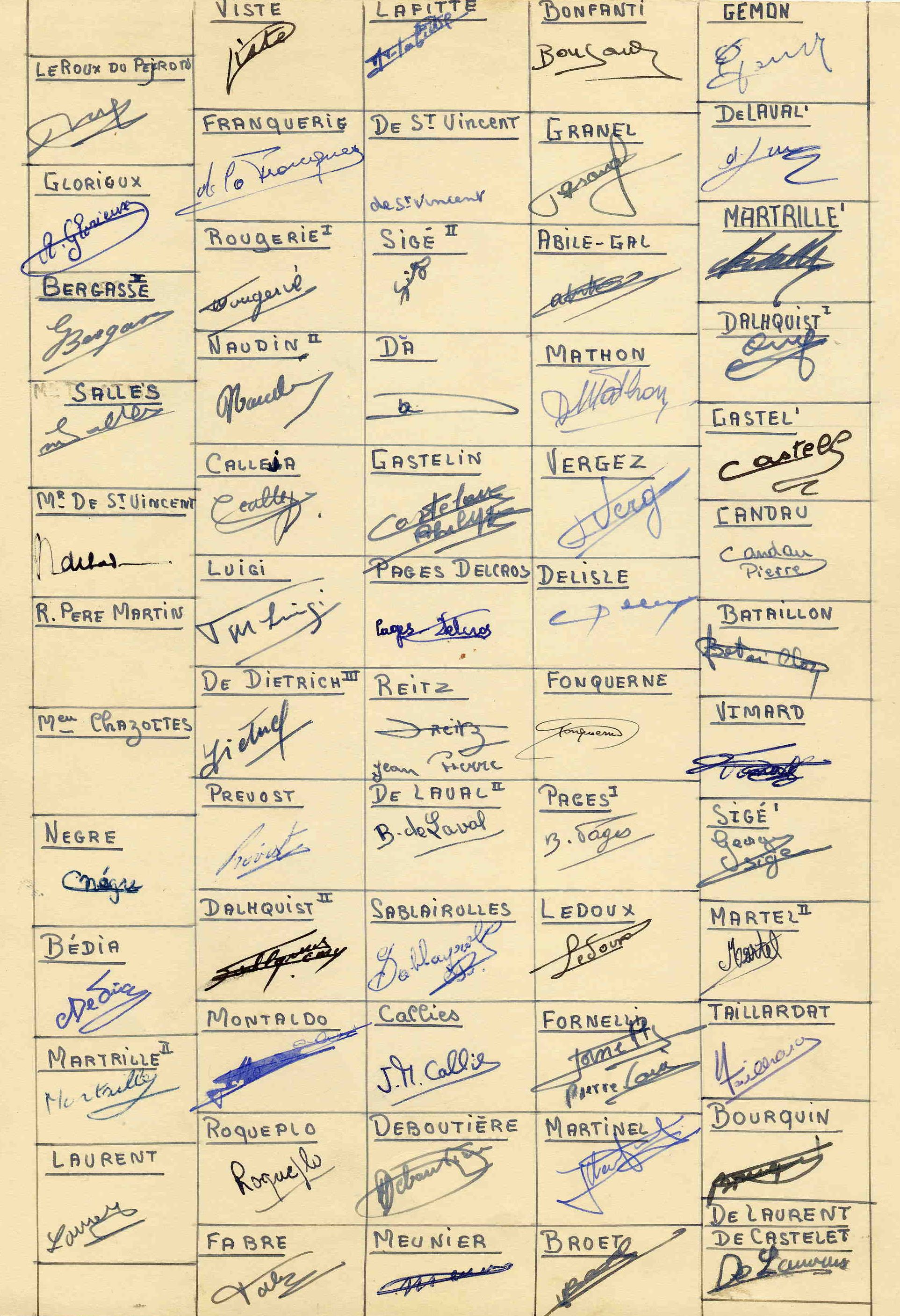 Rangée du bas : Alain Le Roux-Dupeyron, Antoine Glorieux 2, Gaston Bergasse, Michel Salles, Mr de St Vincent, Le Père Martin, Mr Chazottes, Claude Nègre, Jean-Claude Bédia, Pierre Martrille 2, Jean Laurent