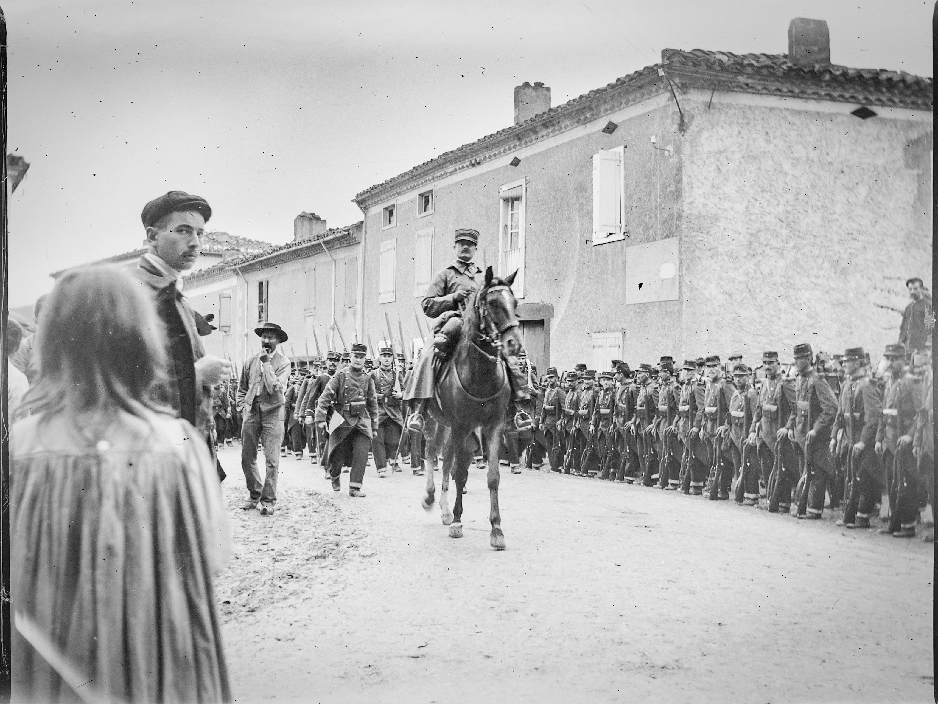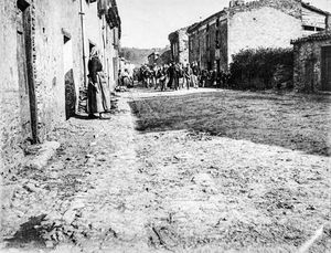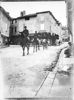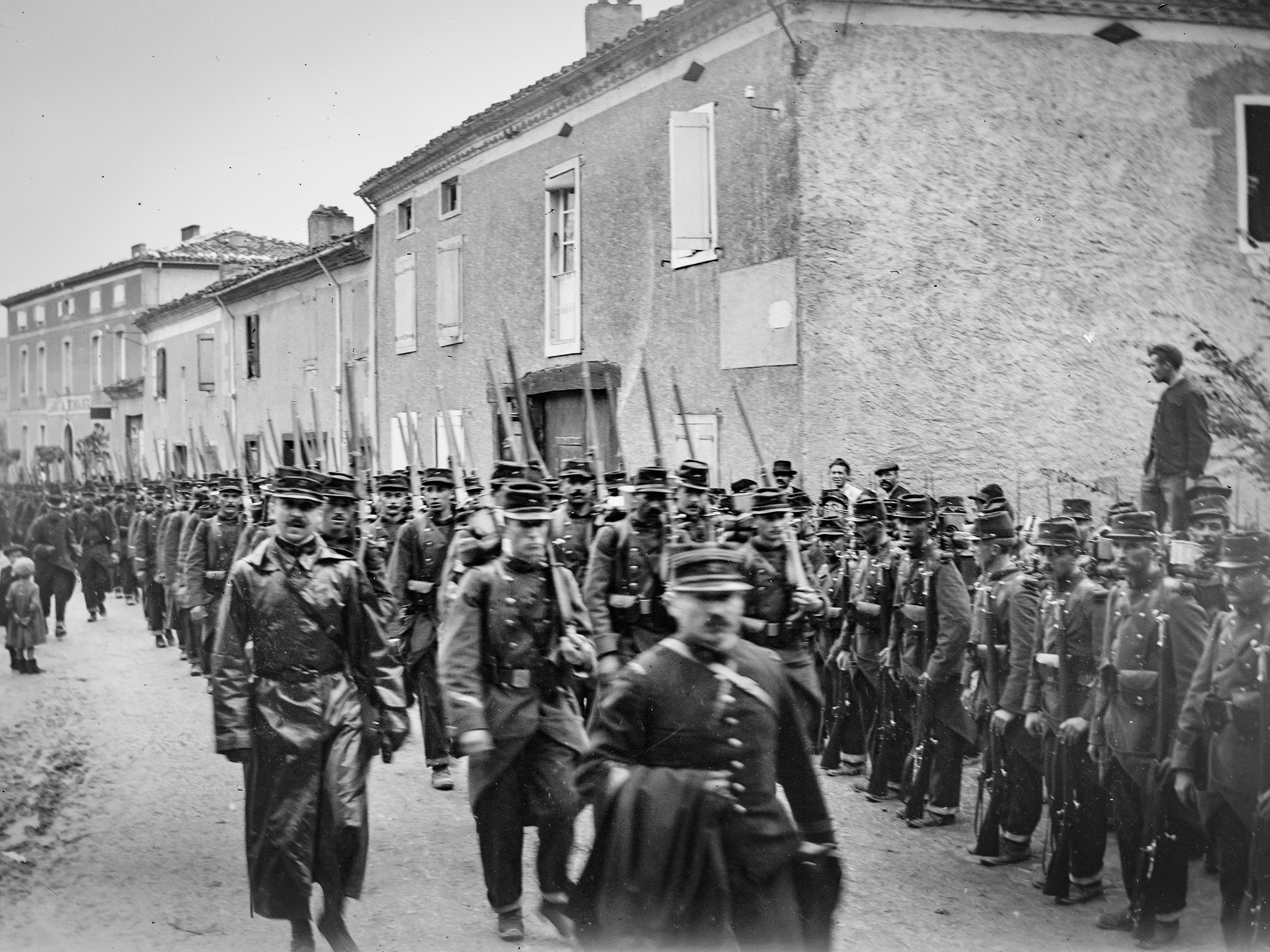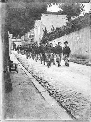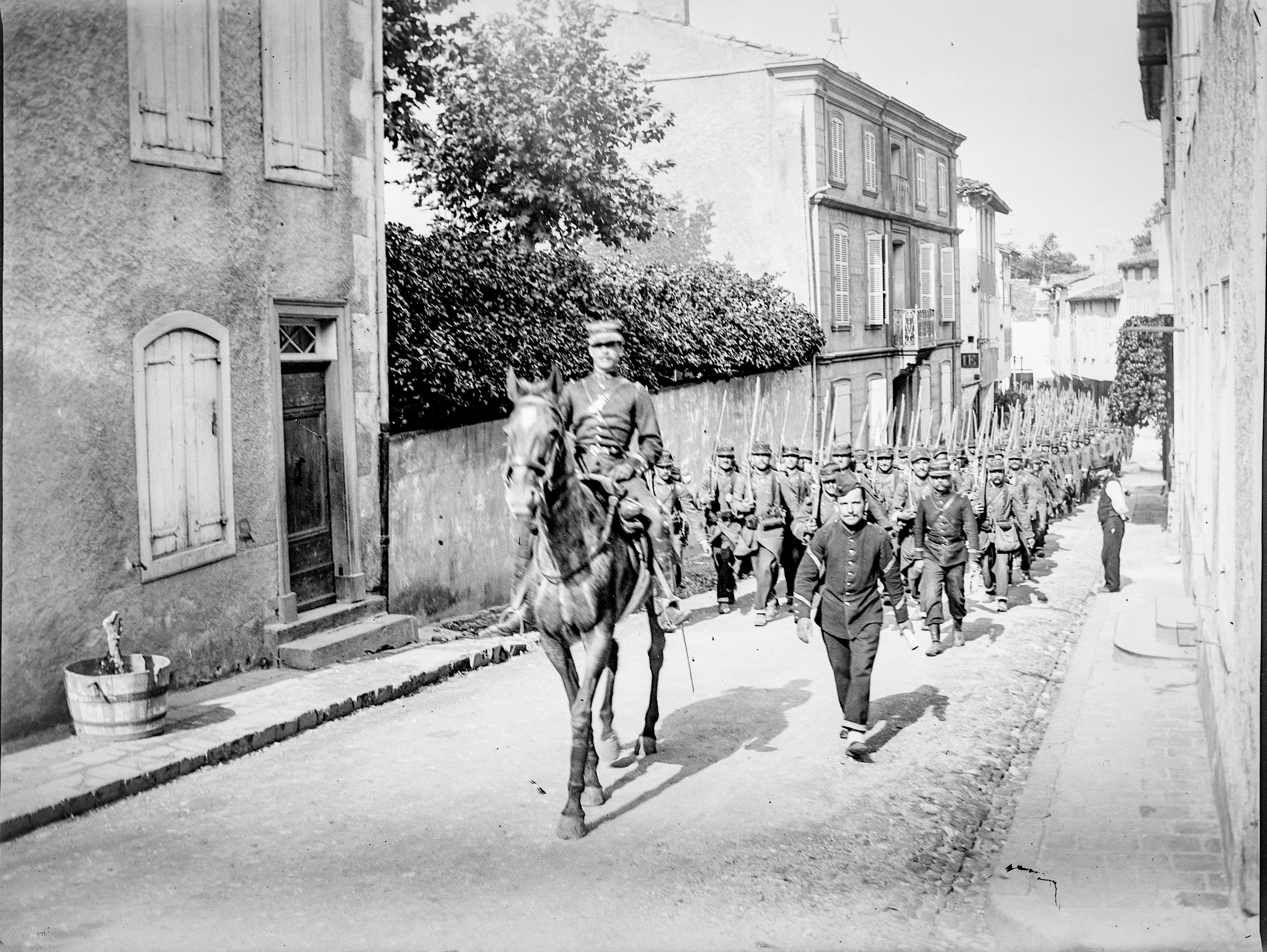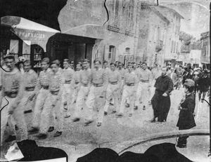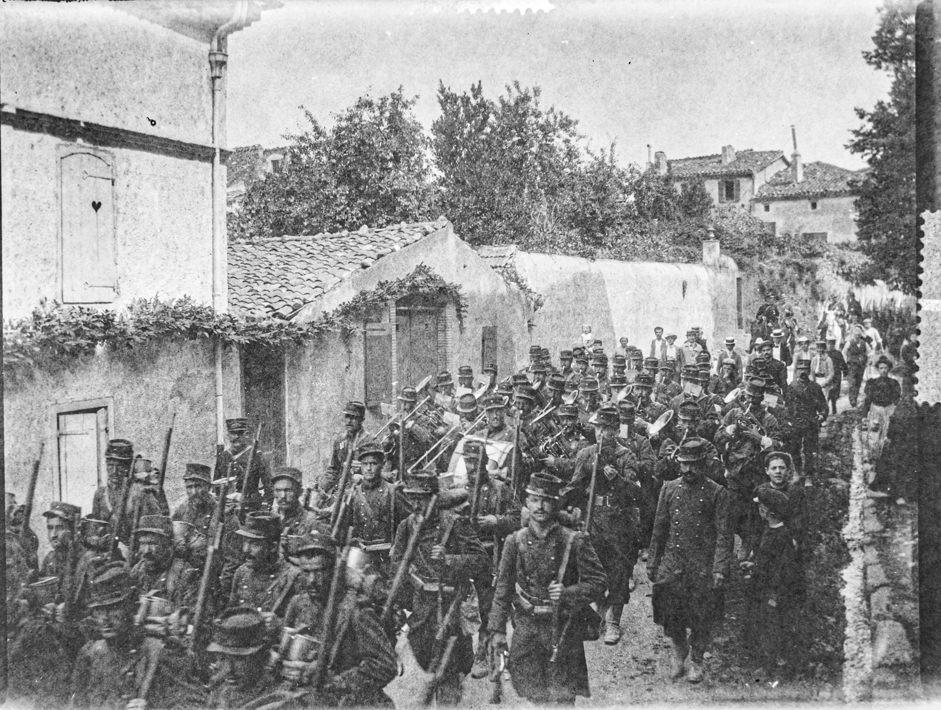 Les soldats arrivent à pieds par la route de Dourgne