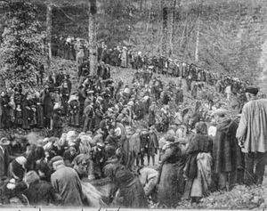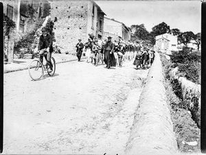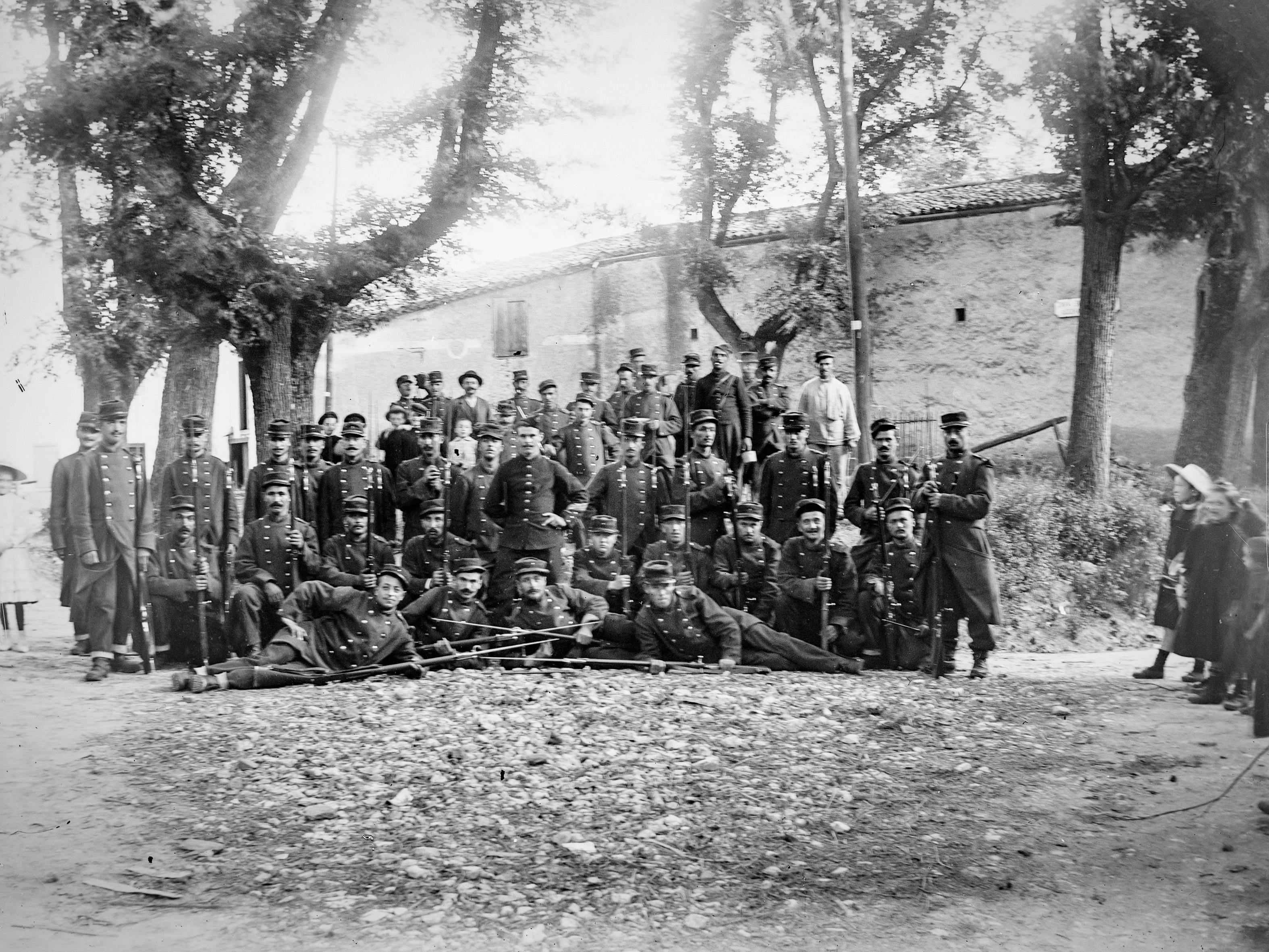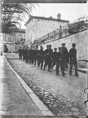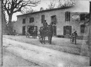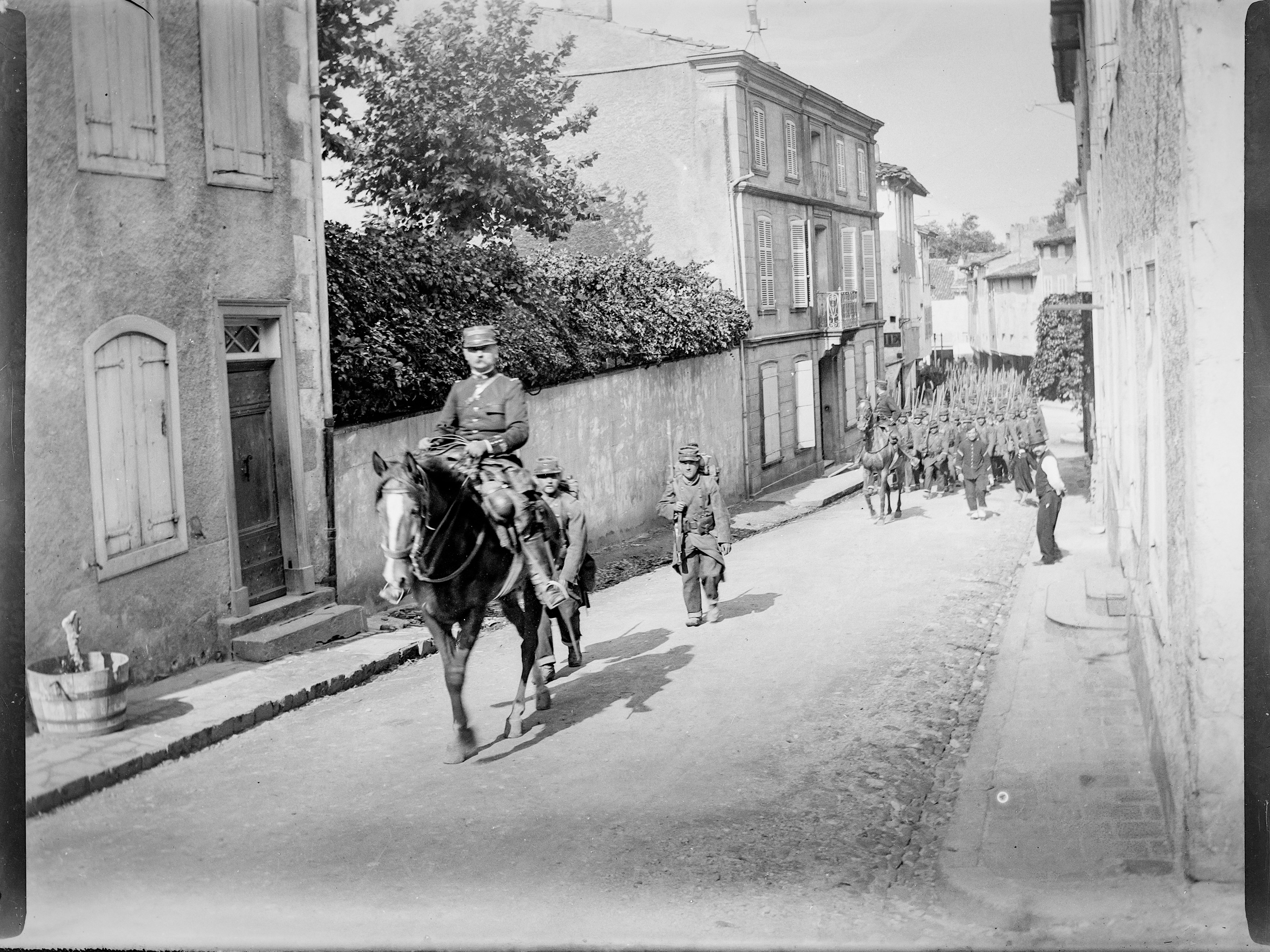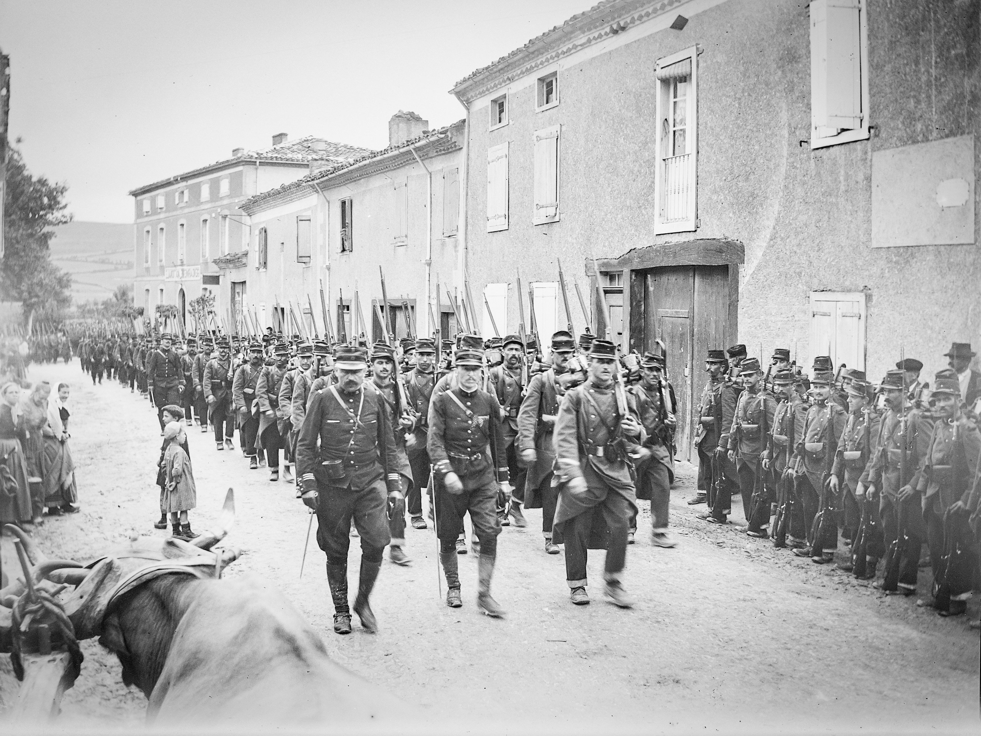Les soldats arrivent à pieds par la route de Dourgne