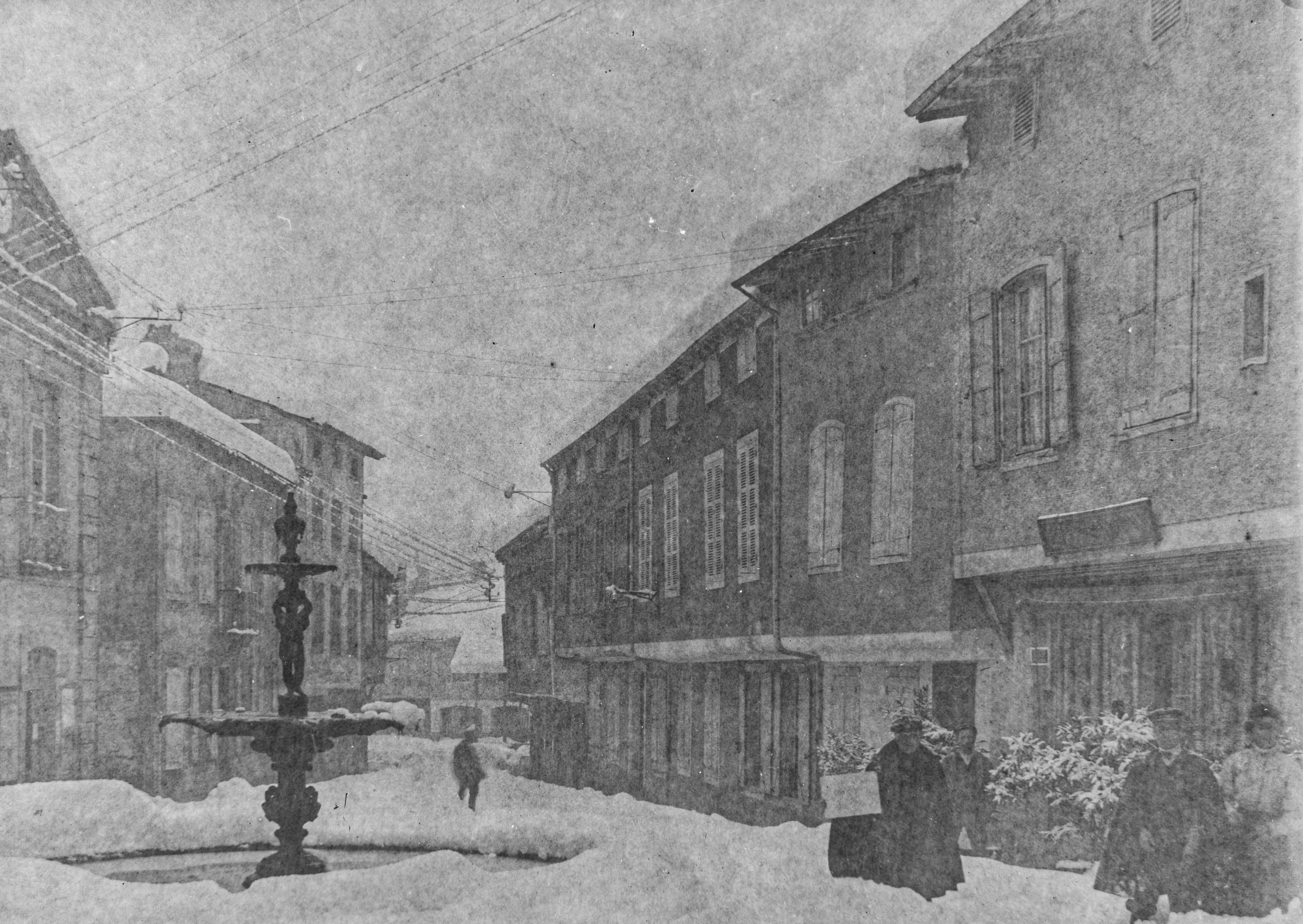 52. SORÈZE sous la neige Place du GRIFFOUL et rue LACORDAIRE