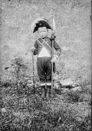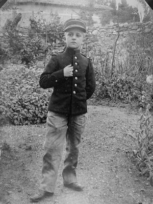 Devant l'arbre un petit SORÉZIEN en grand uniforme