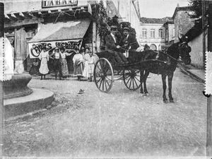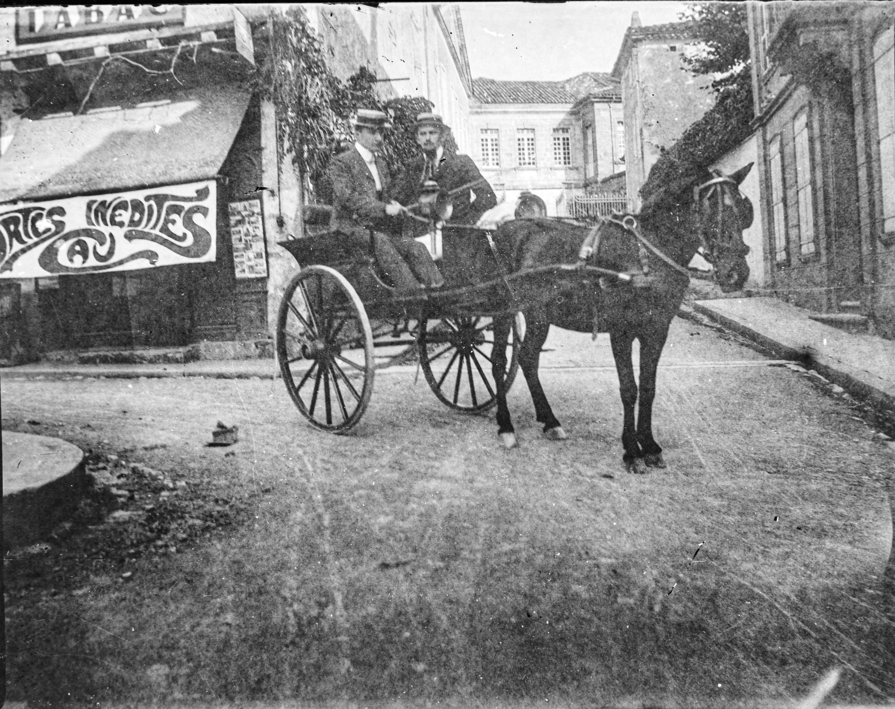 203. Devant la boutique Cau, une voiture hippomobile "jardinière"