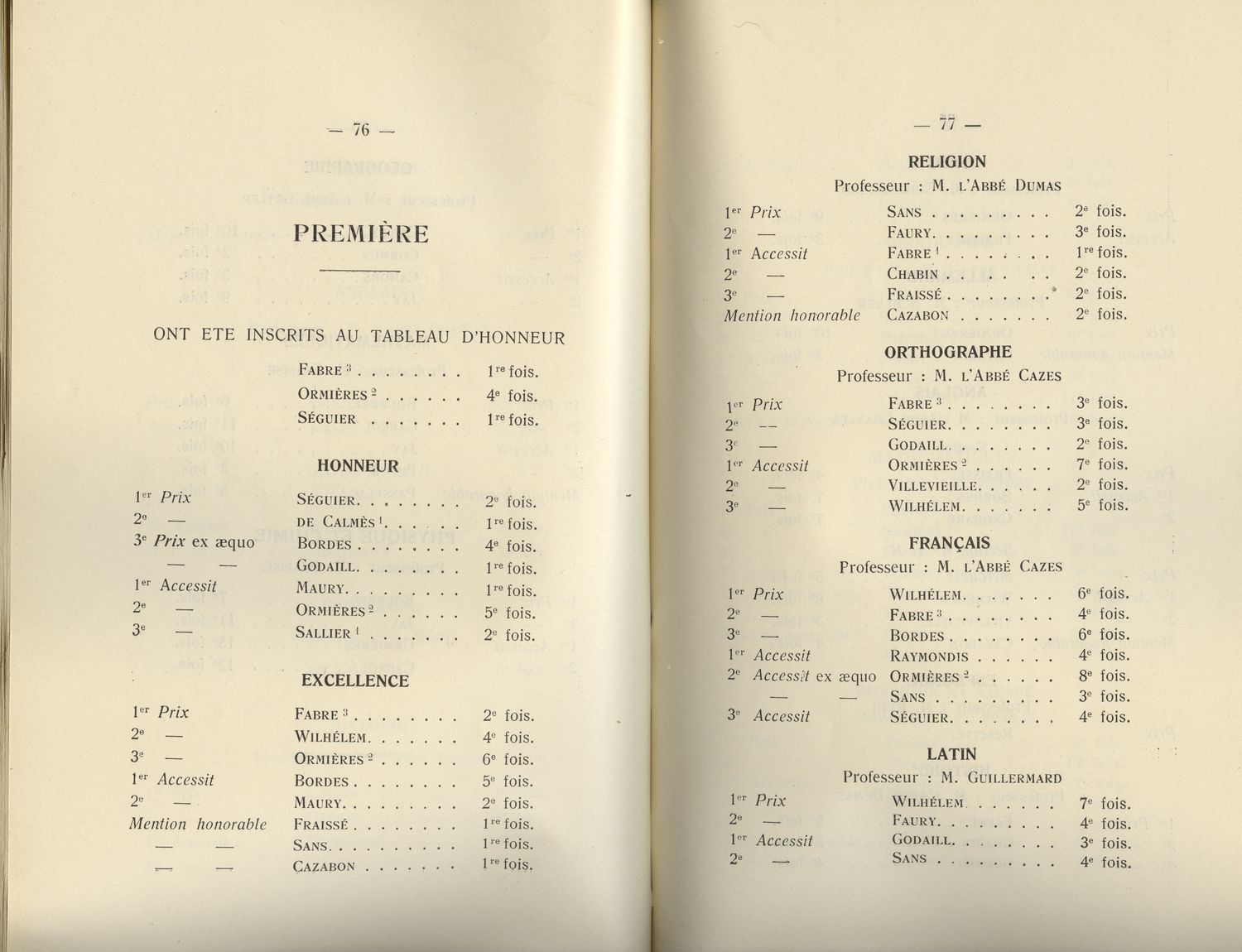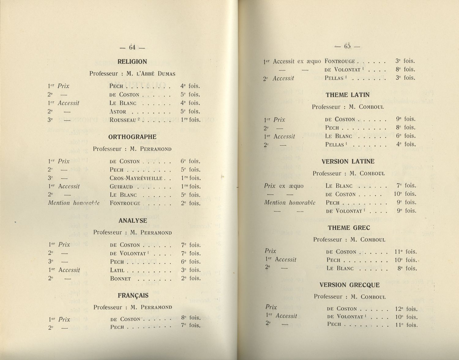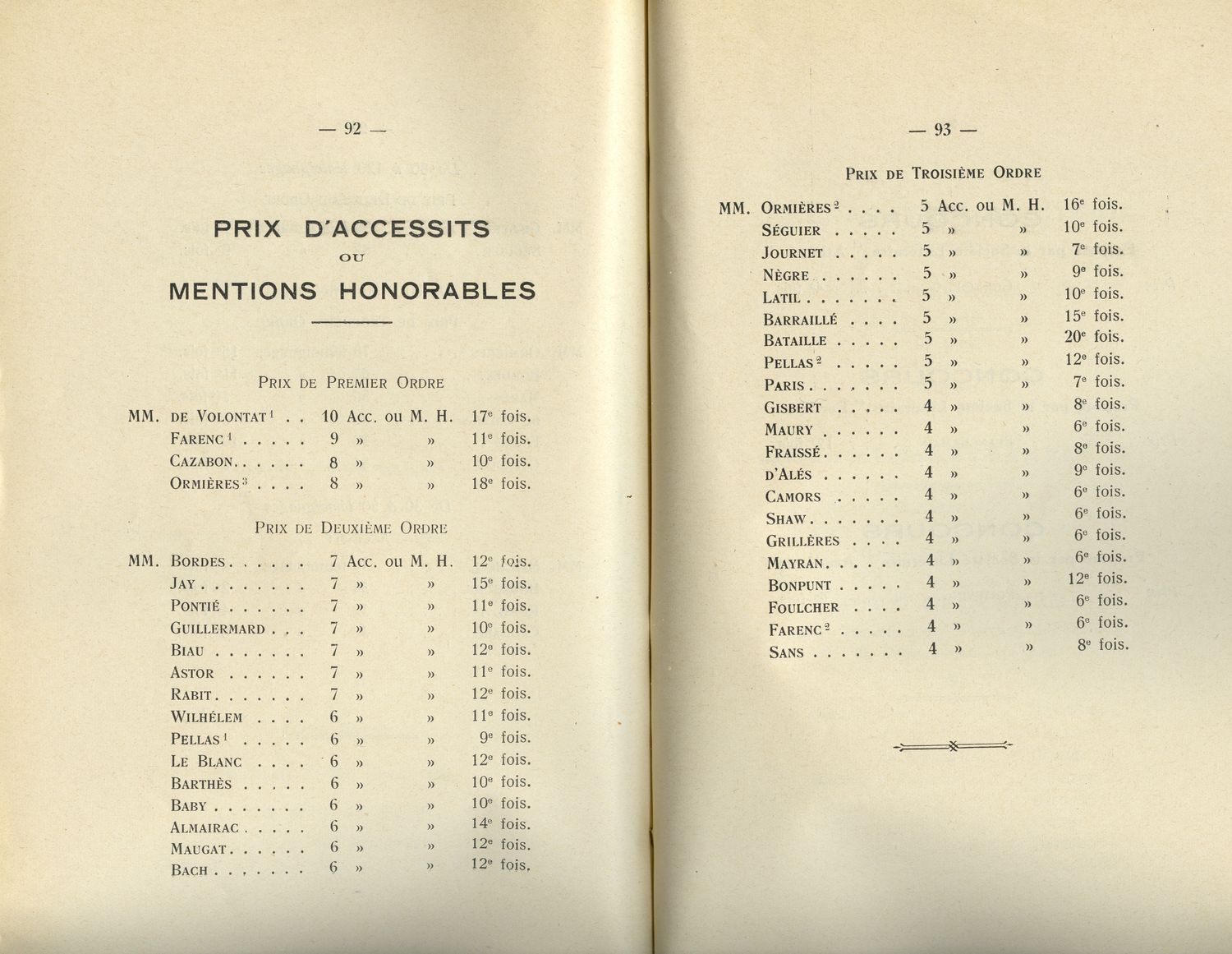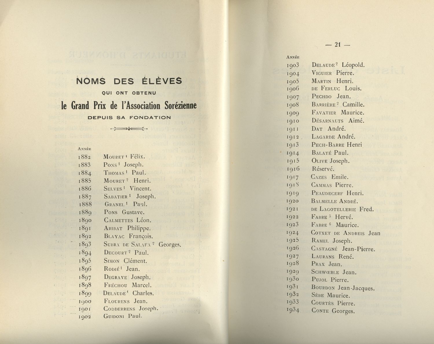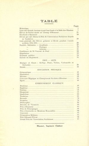 Le Palmarès 1934-1935