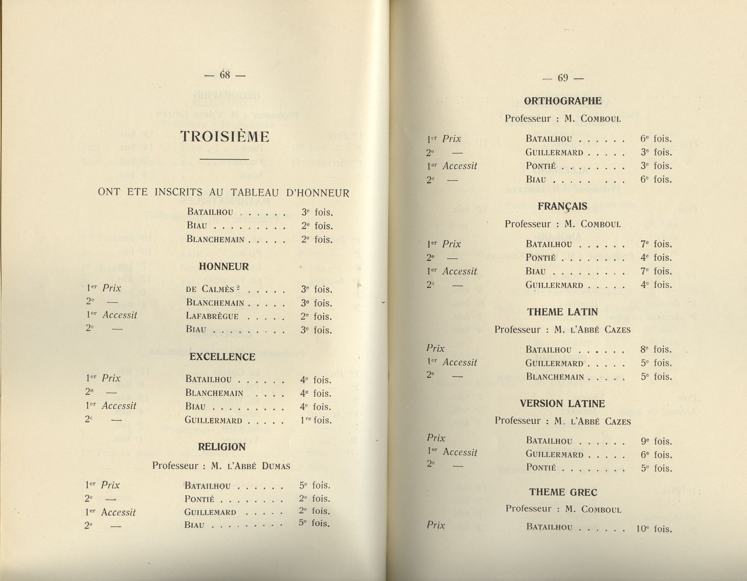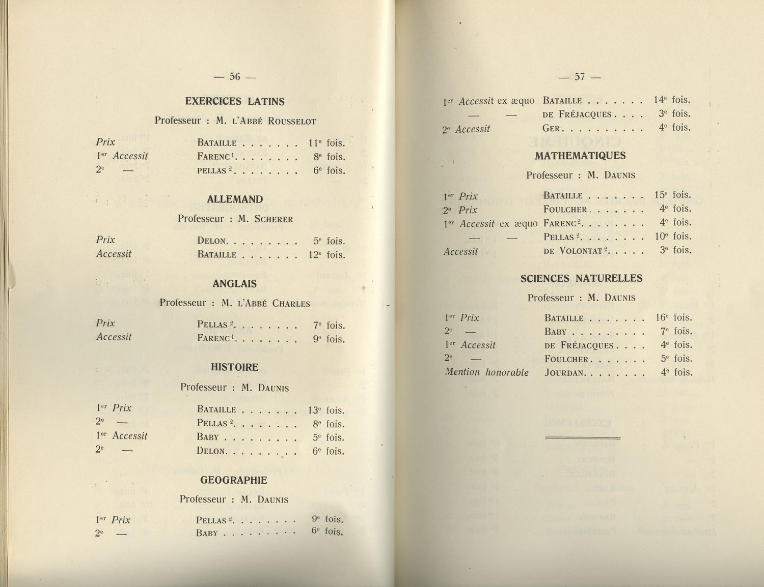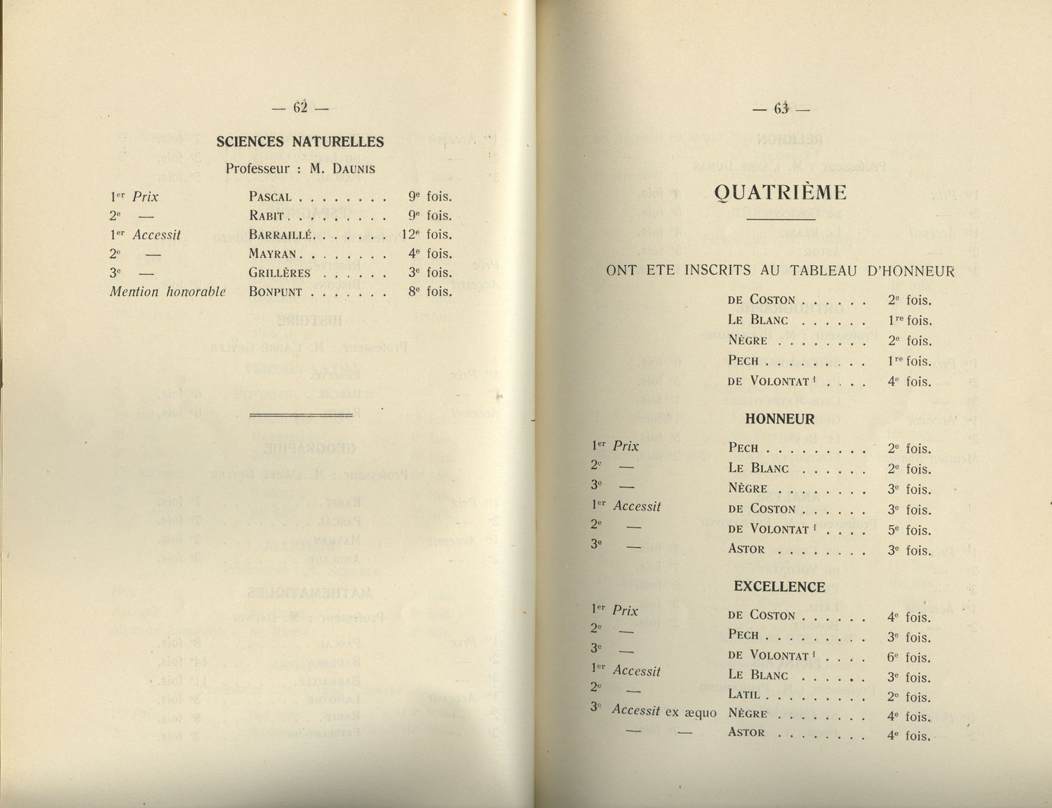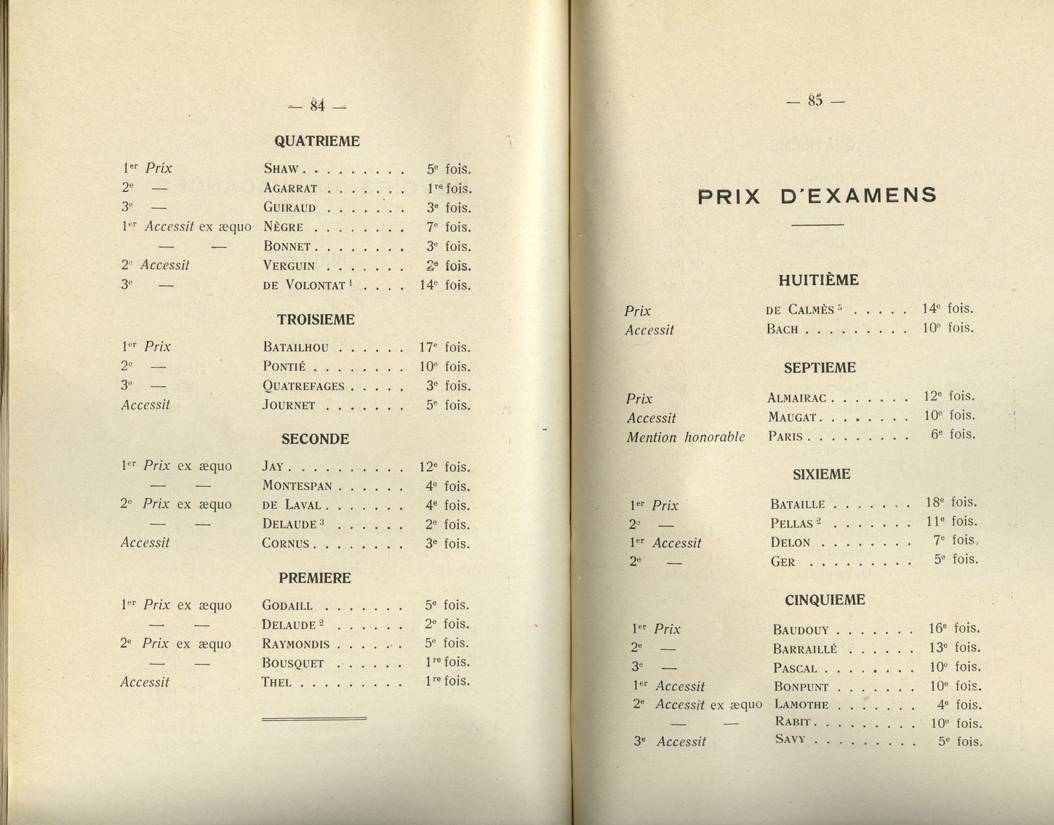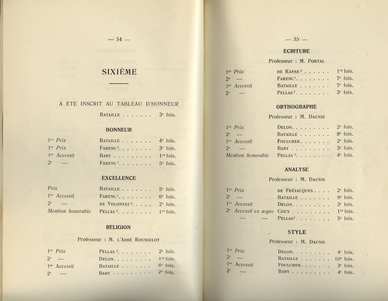 Le Palmarès 1934-1935