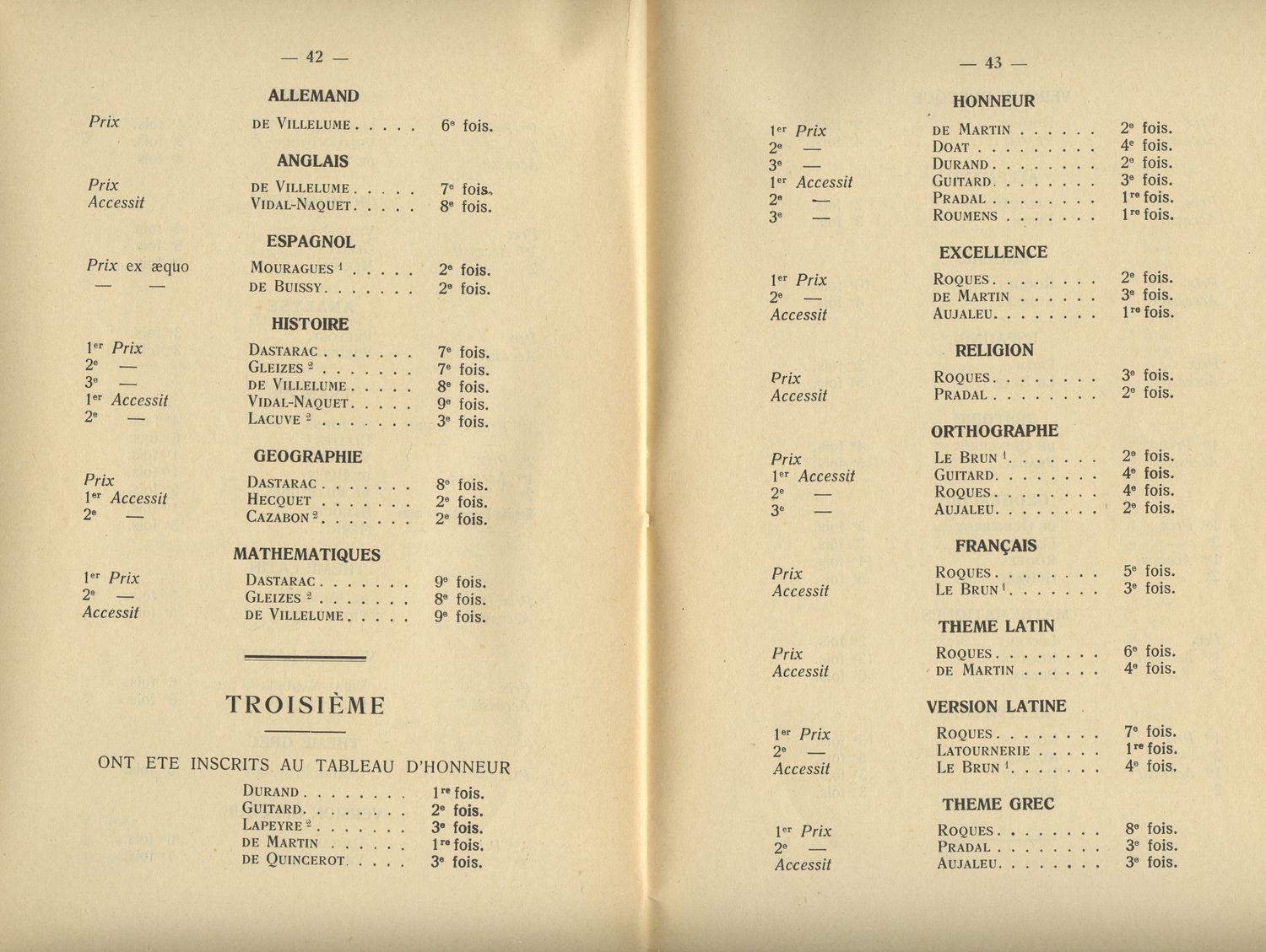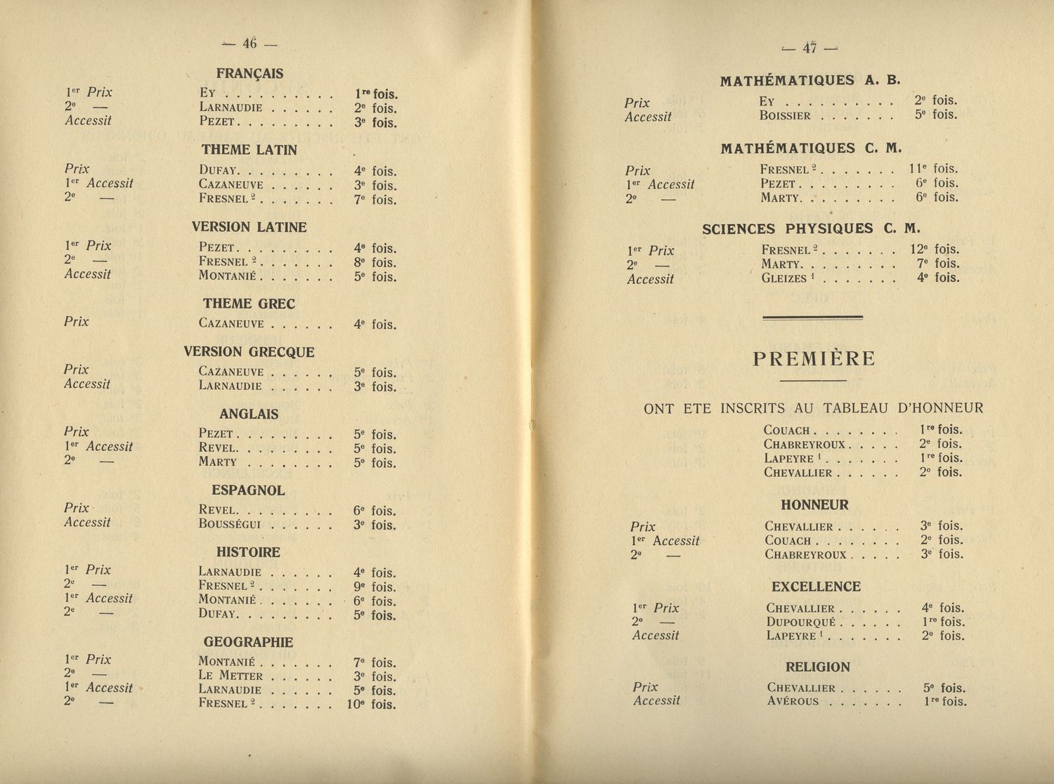 Le Palmarès 1948-1949