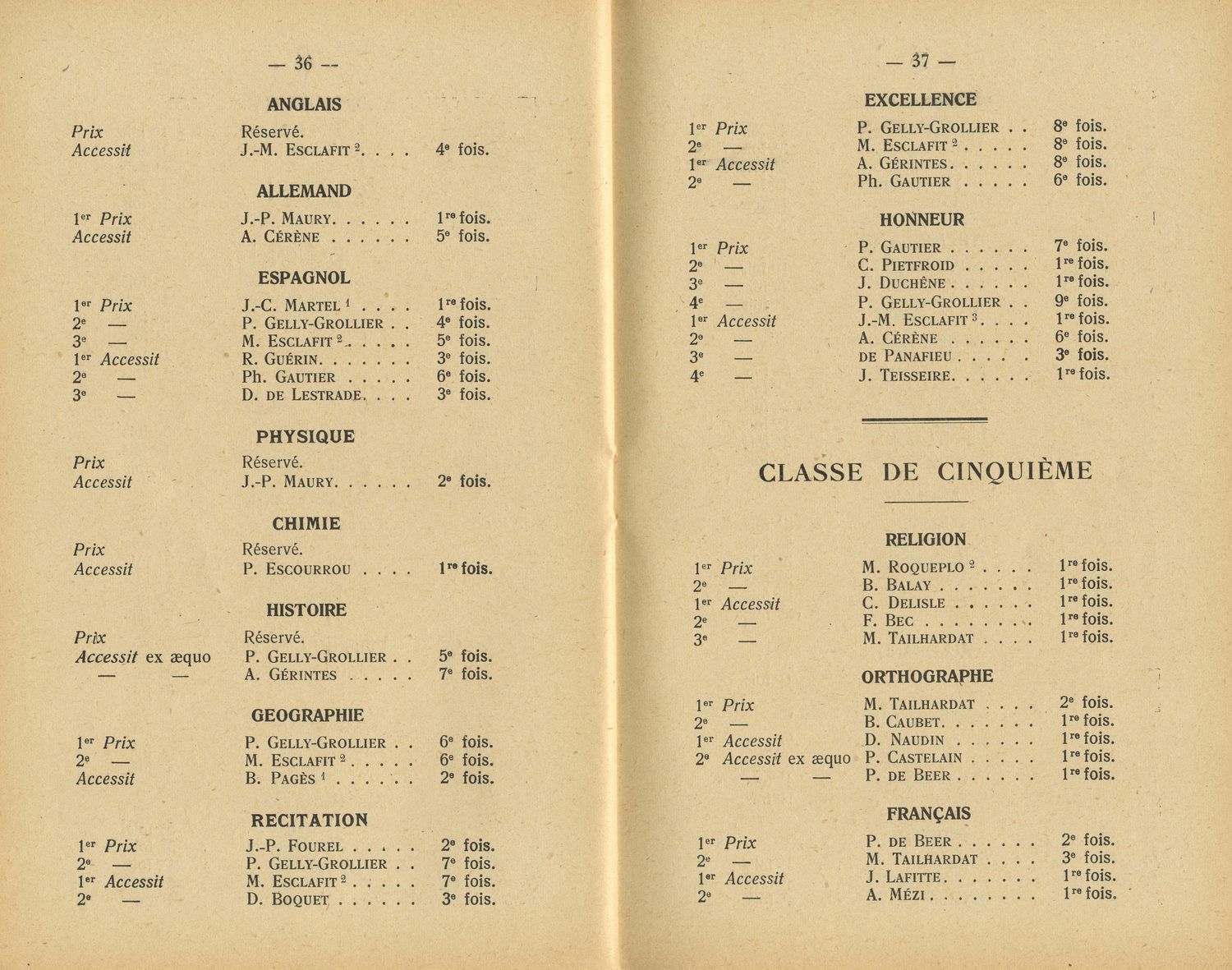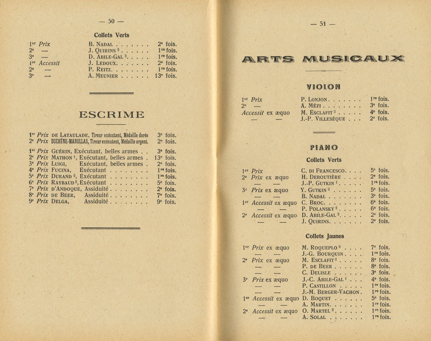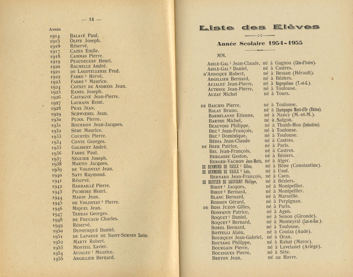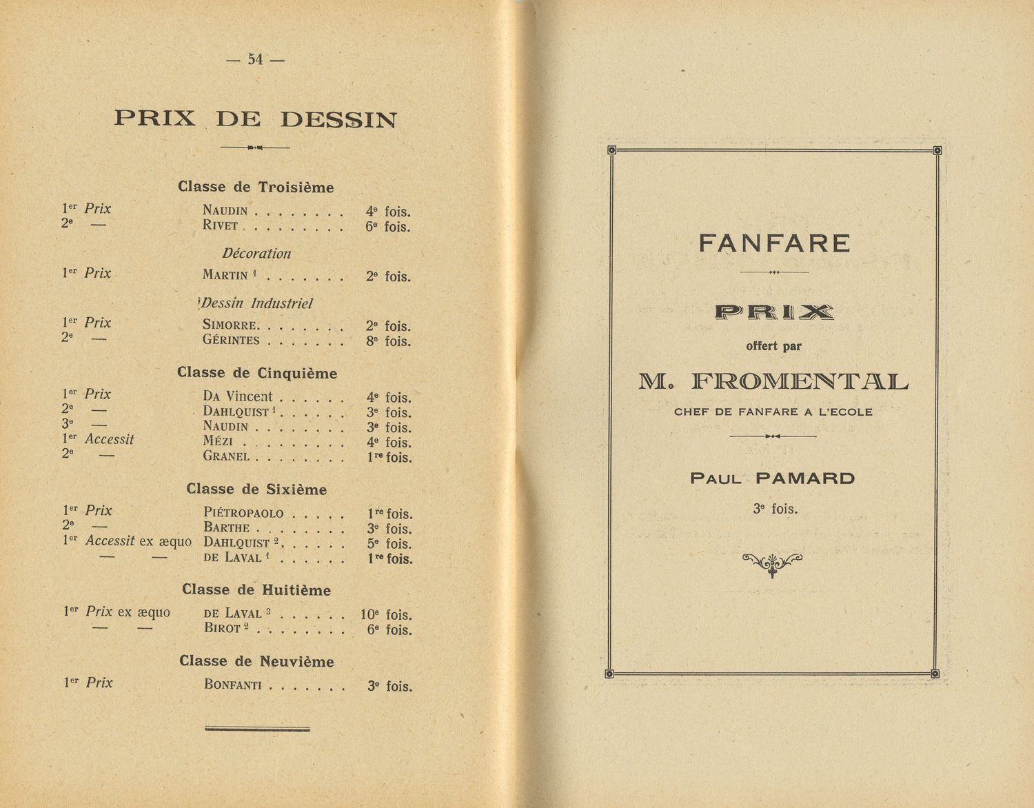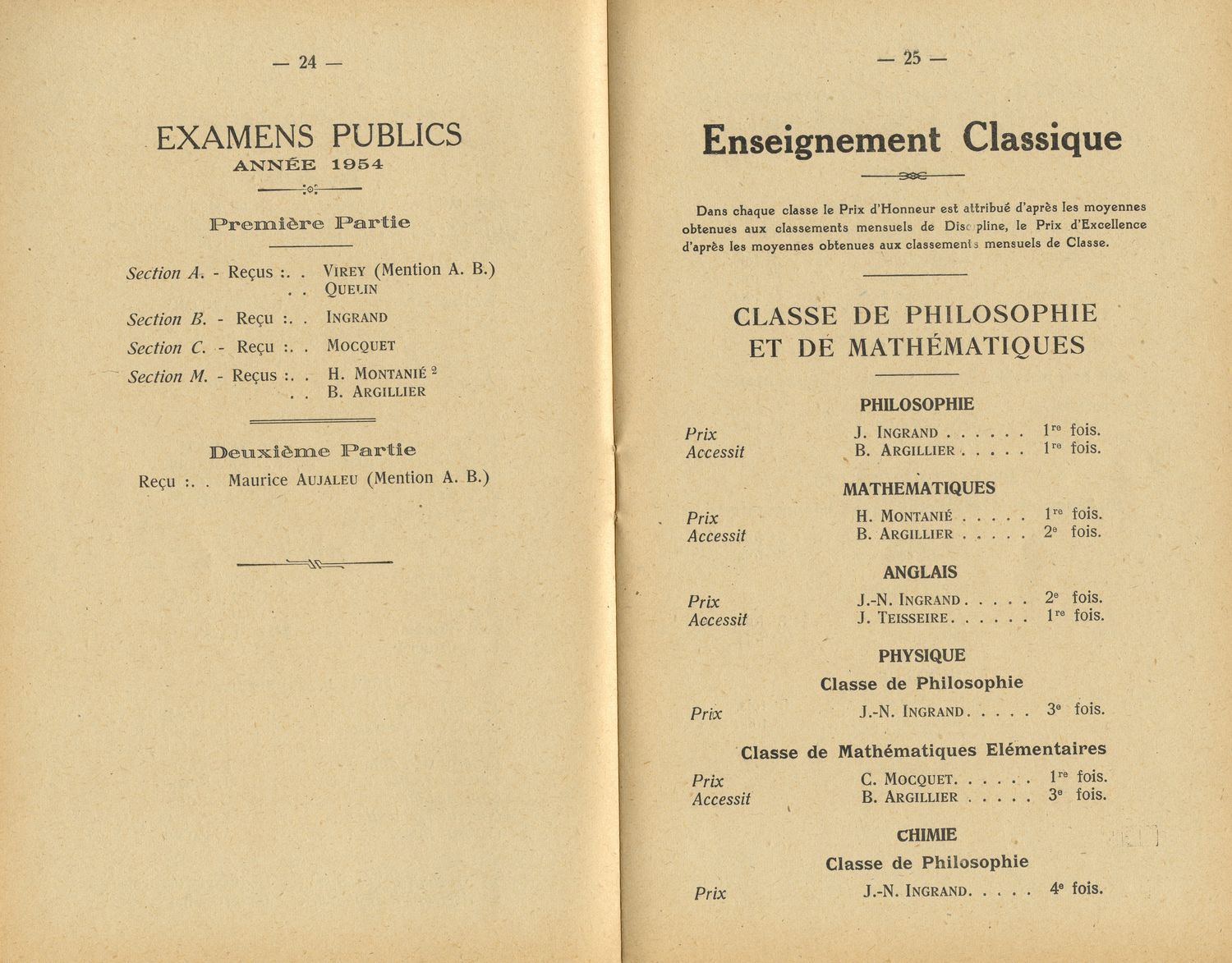 Le Palmarès 1954-1955
