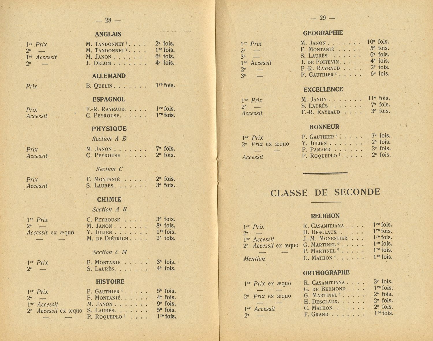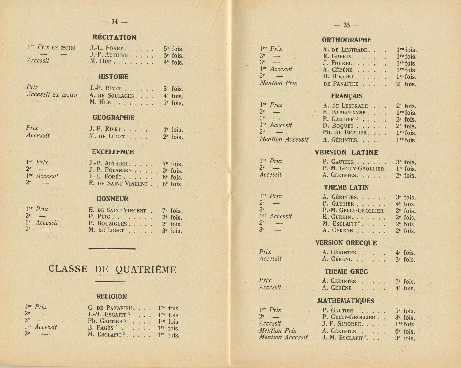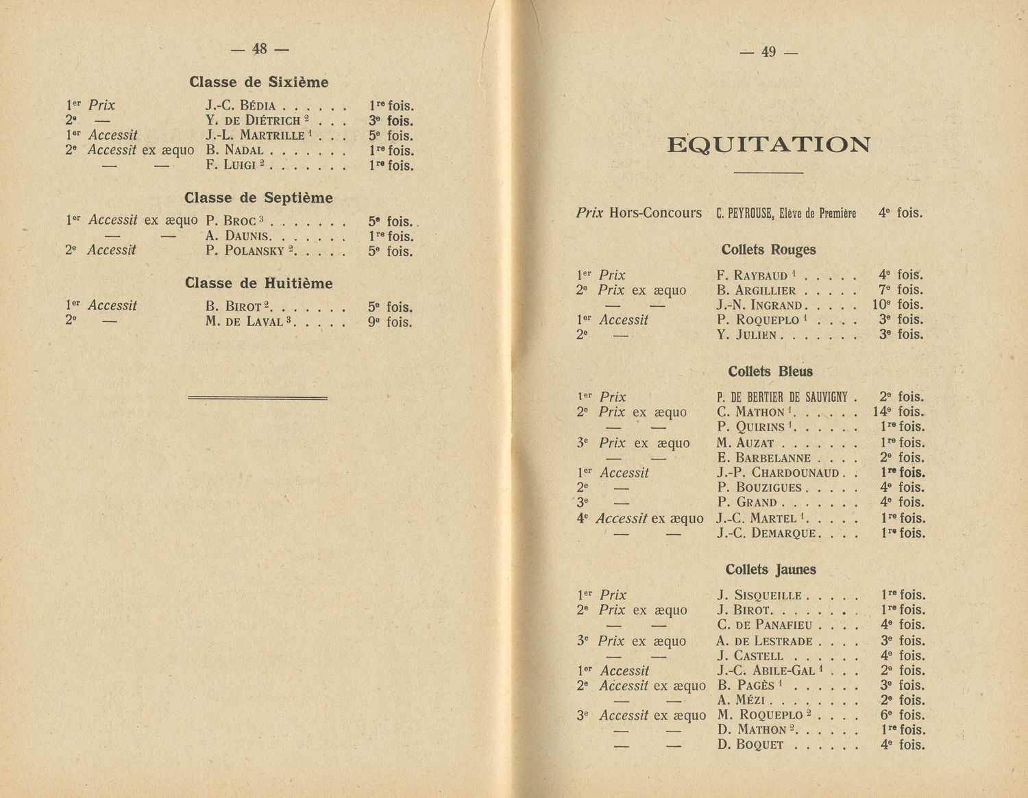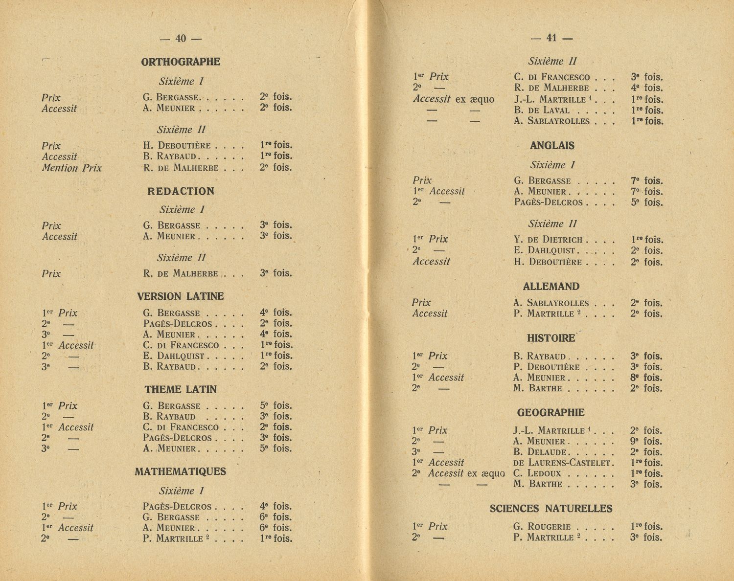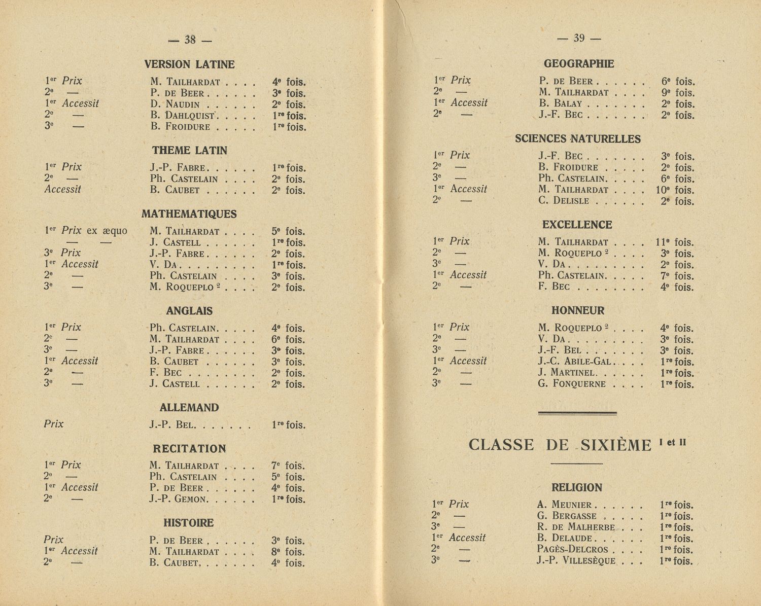Le Palmarès 1954-1955