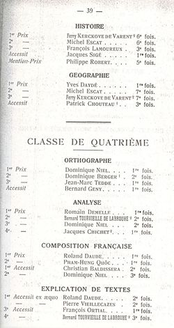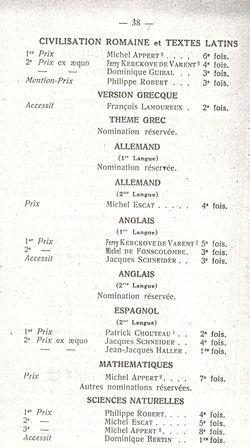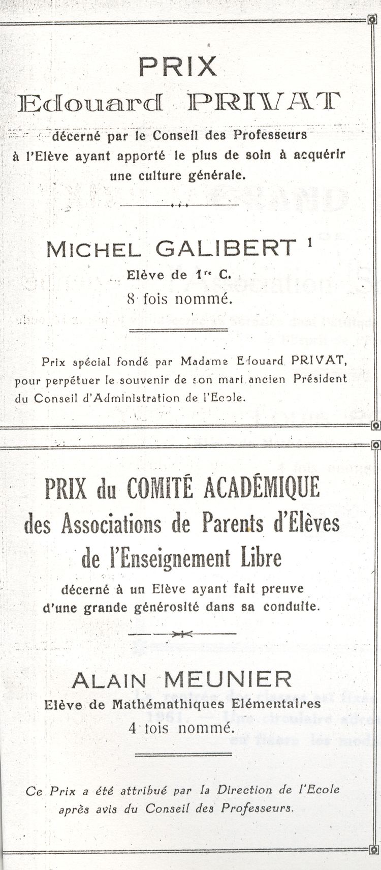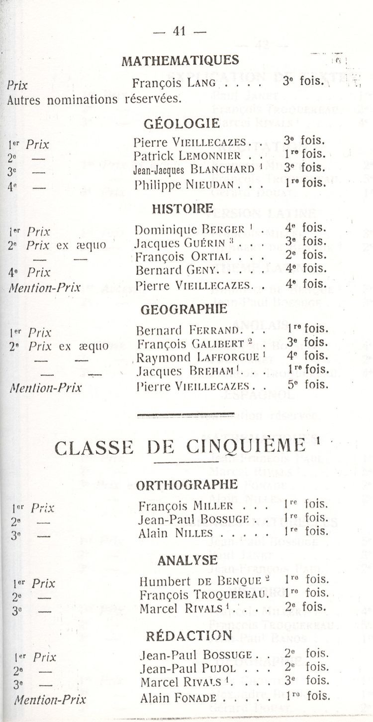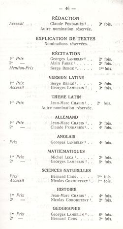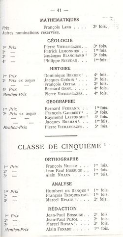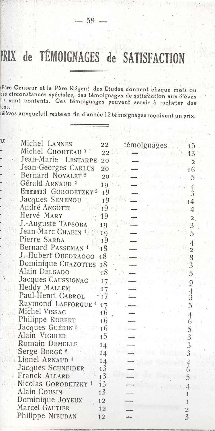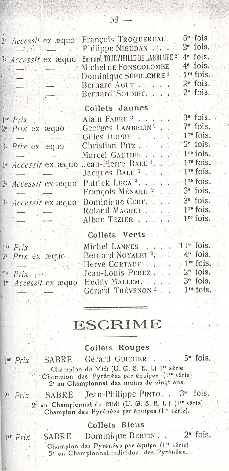 Le Palmarès 1960-1961
