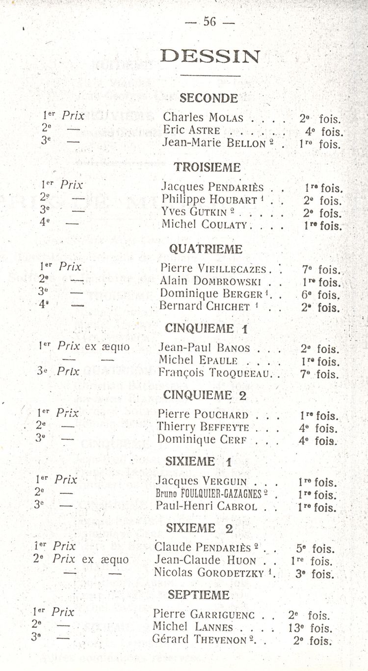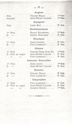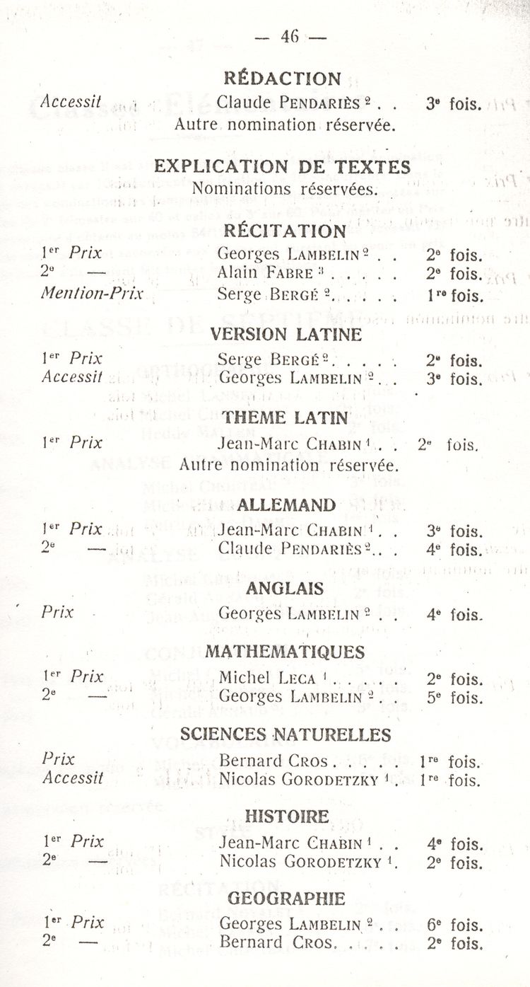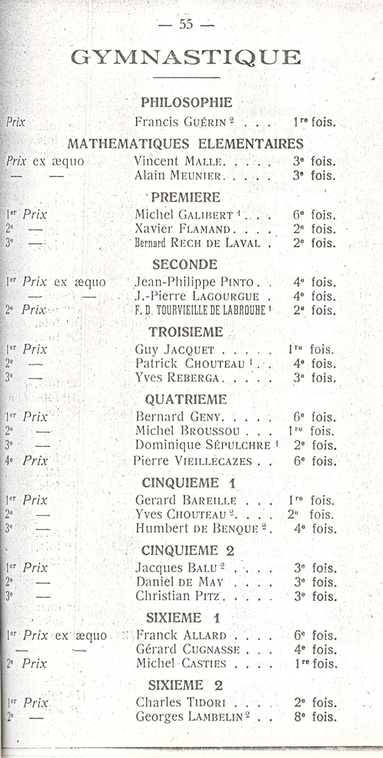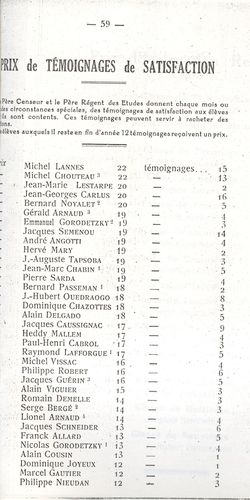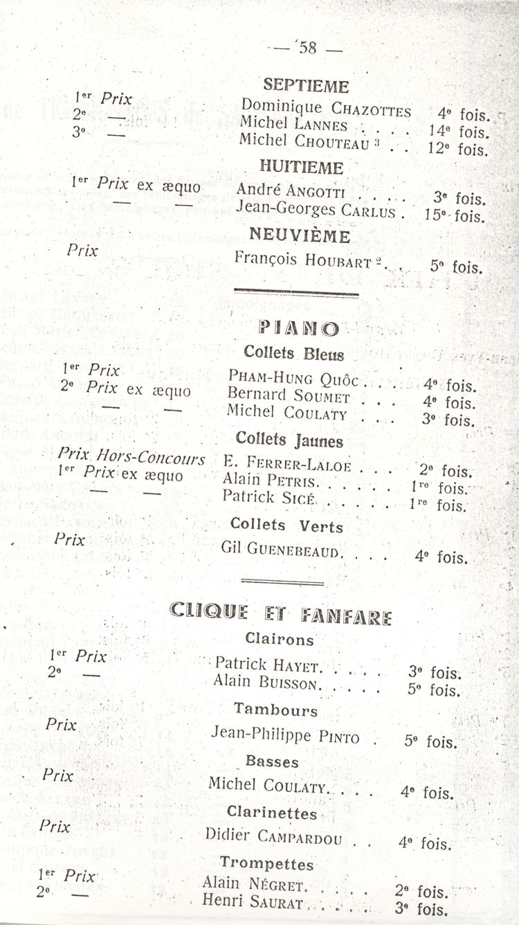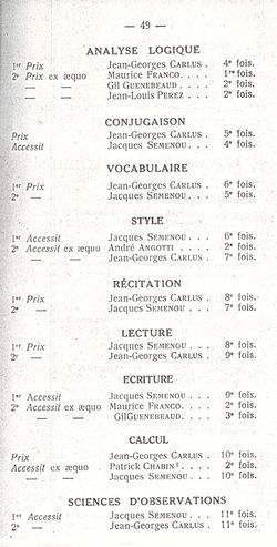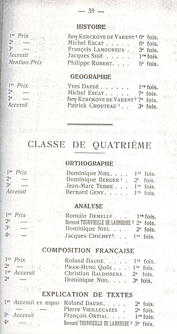 Le Palmarès 1960-1961