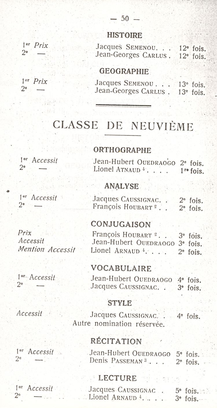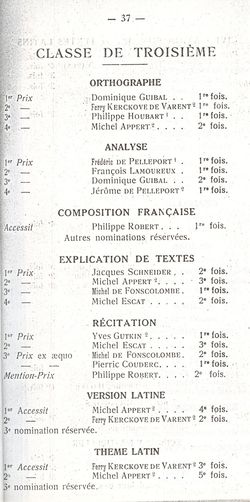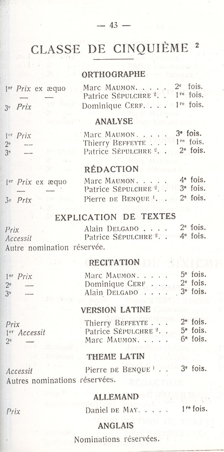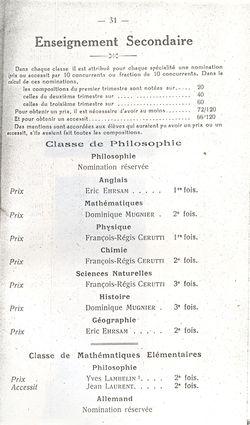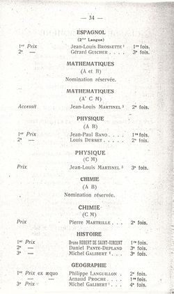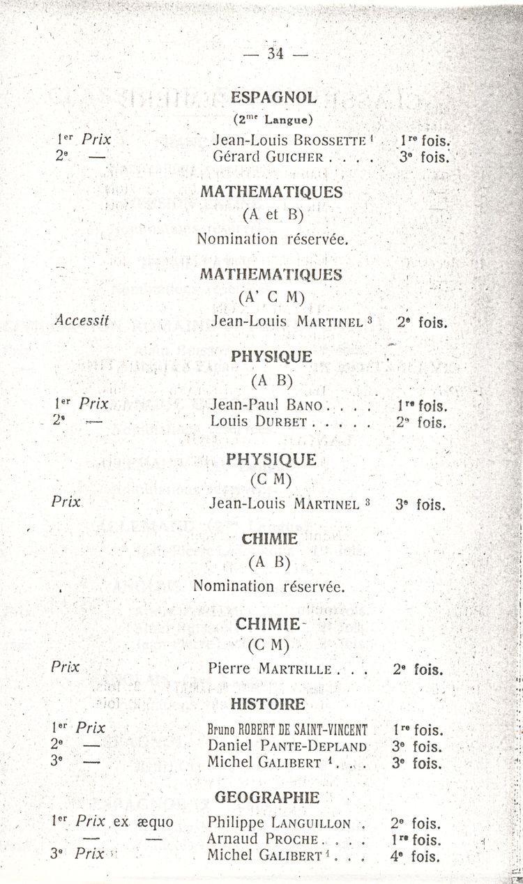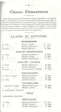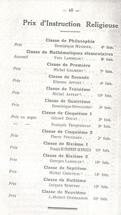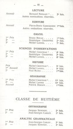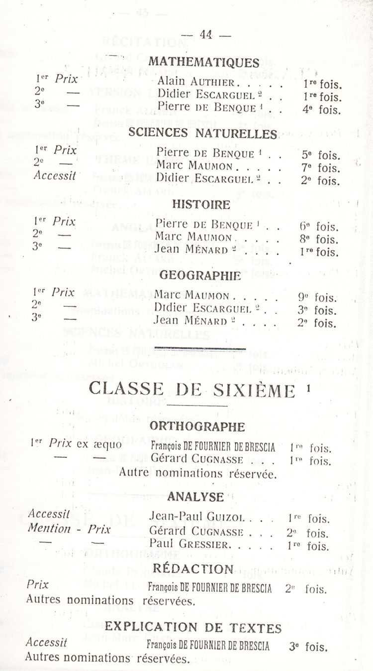 Le Palmarès 1960-1961