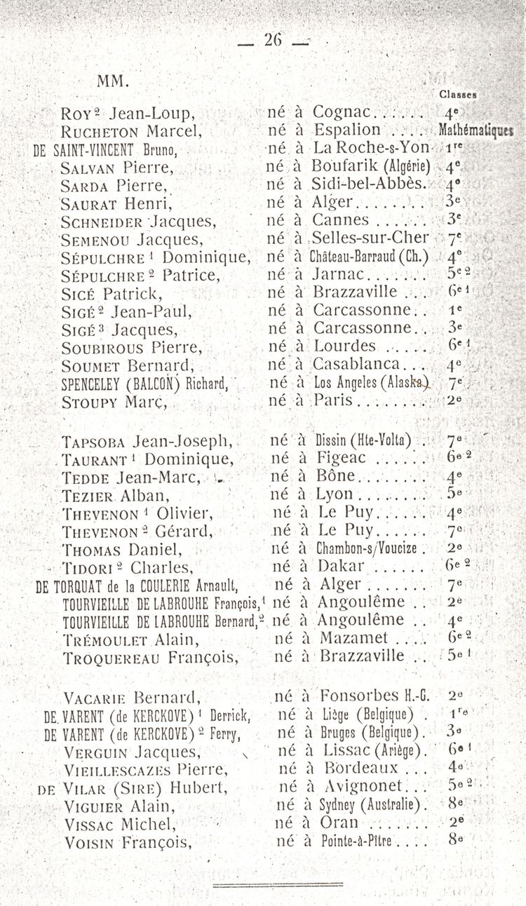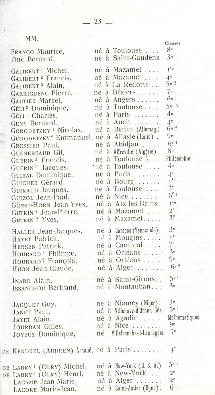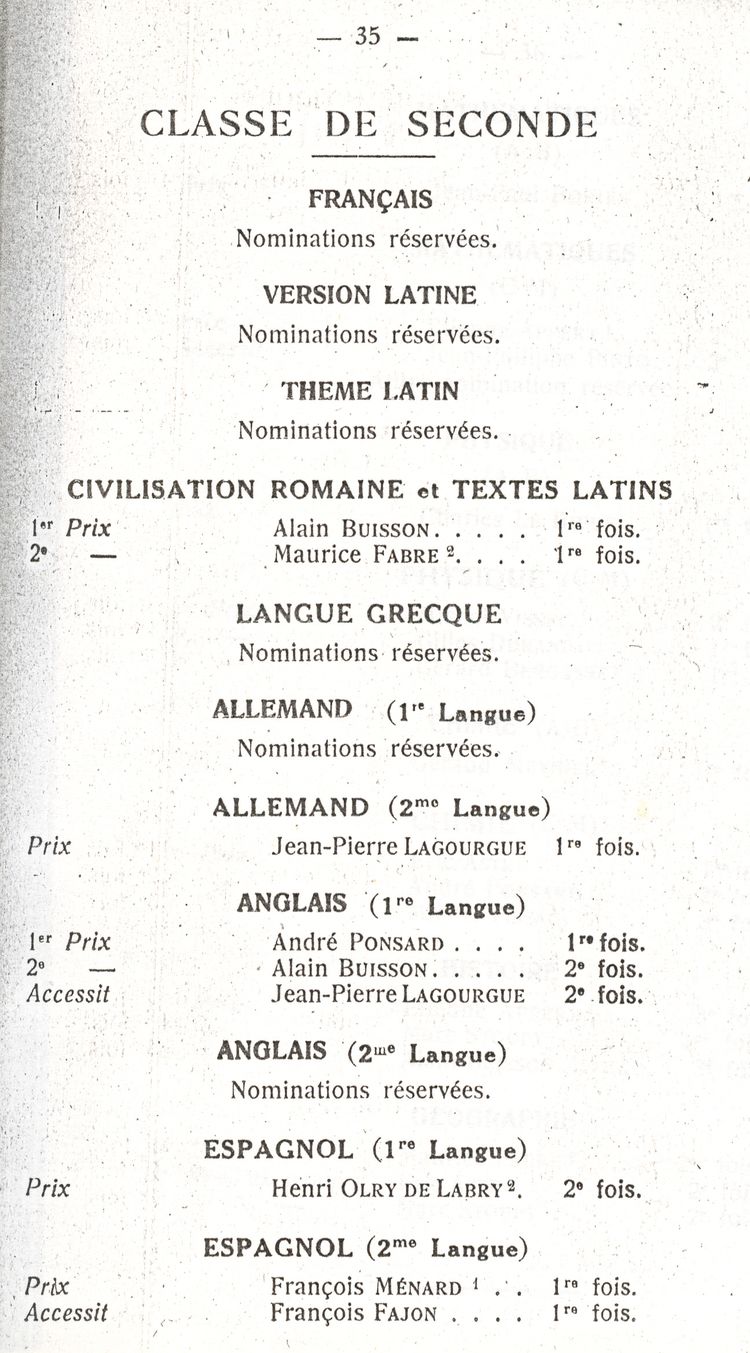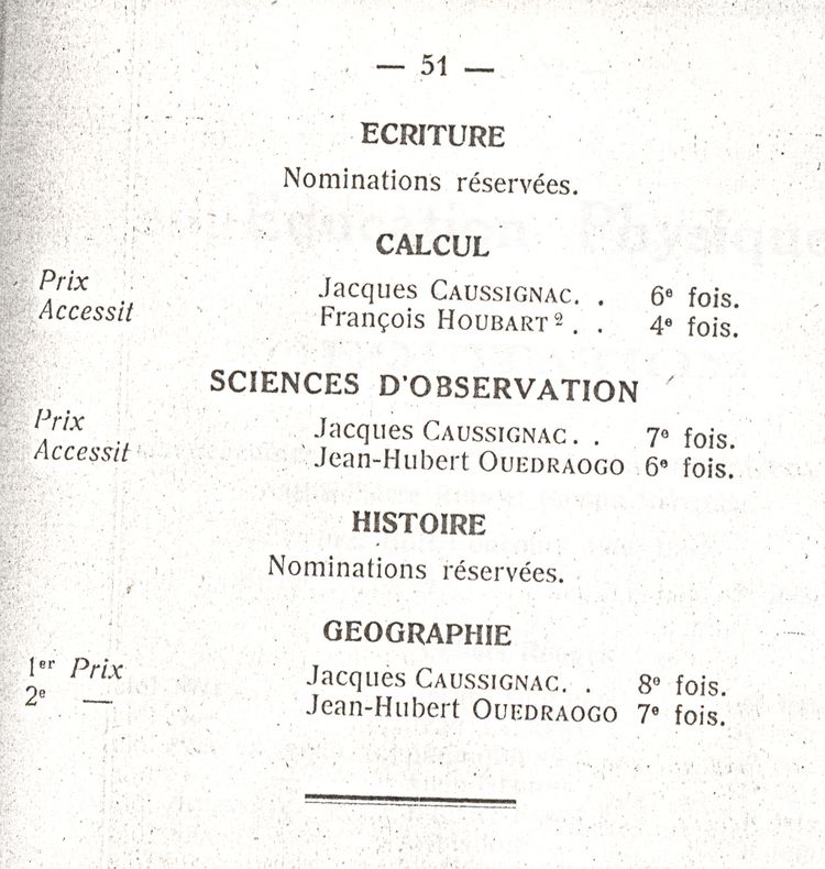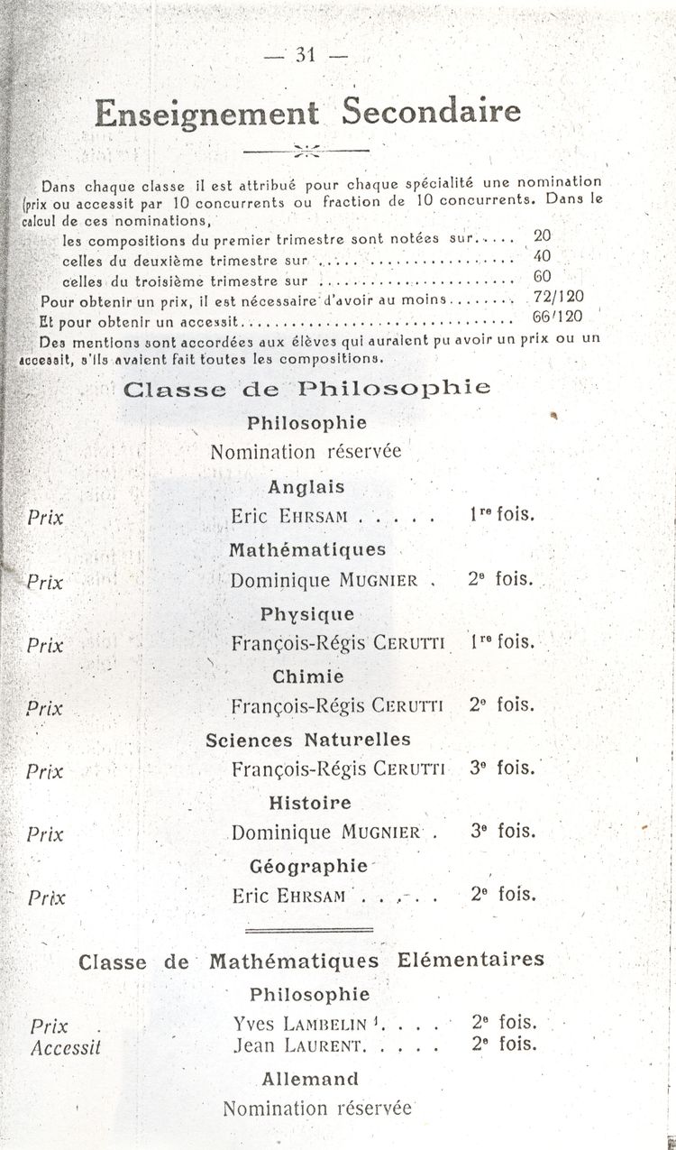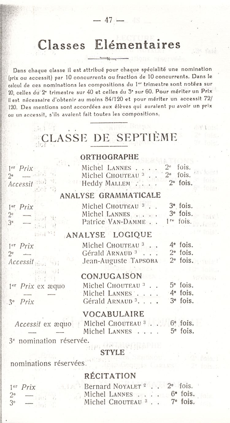 Le Palmarès 1960-1961
