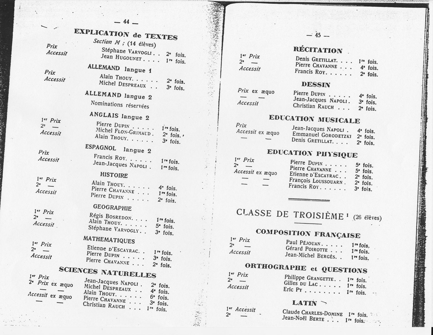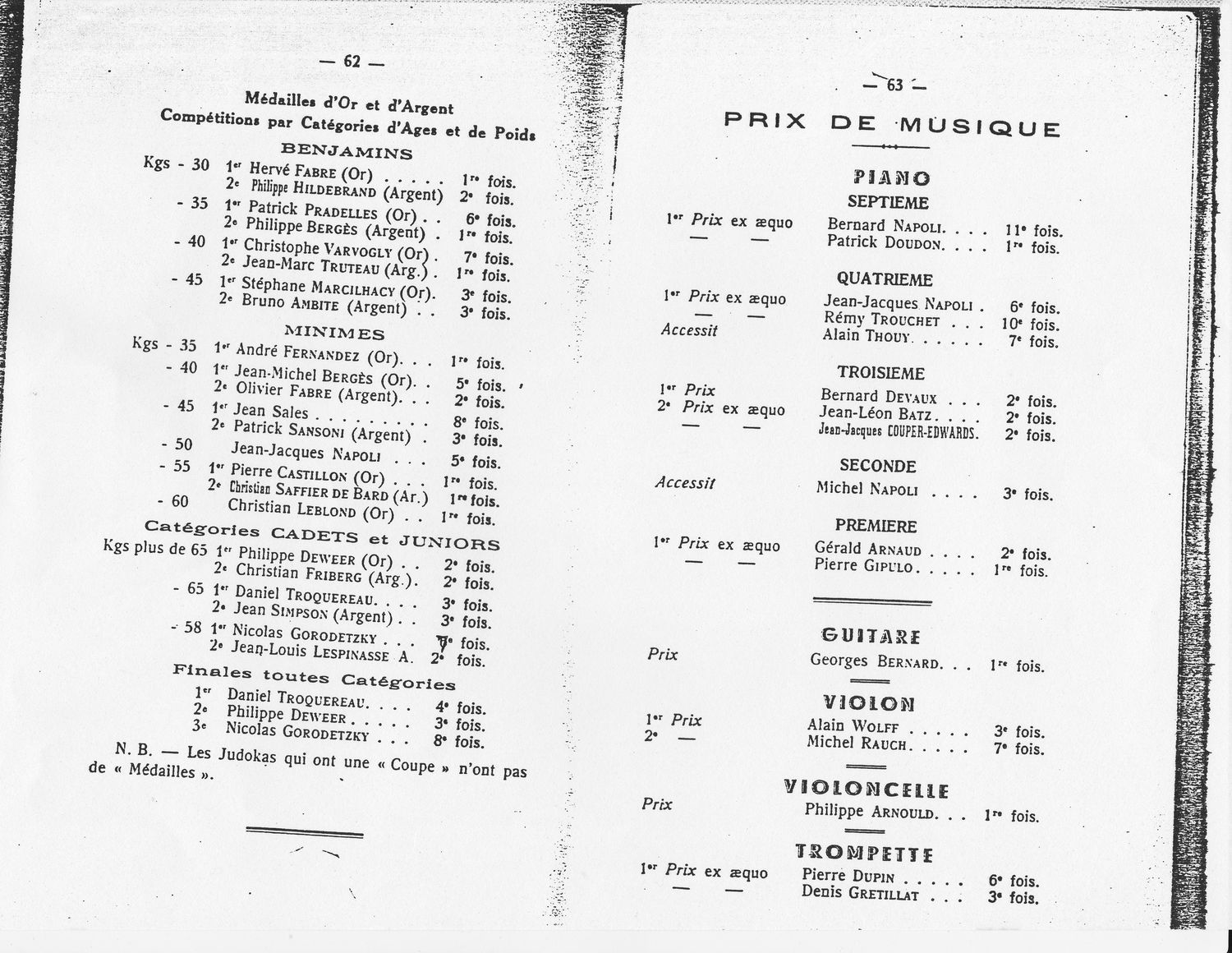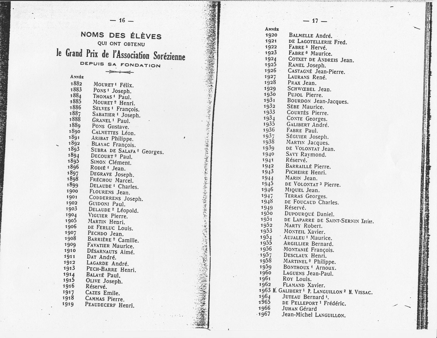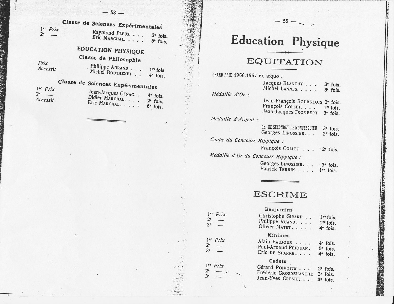 Le Palmarès 1966-1967