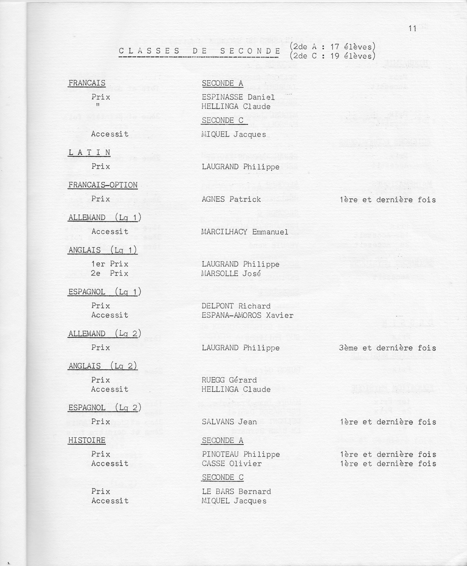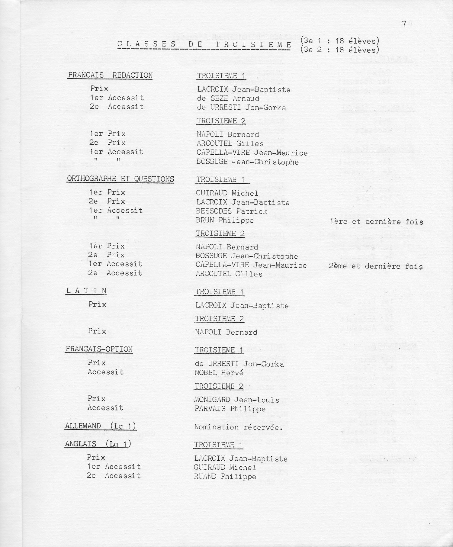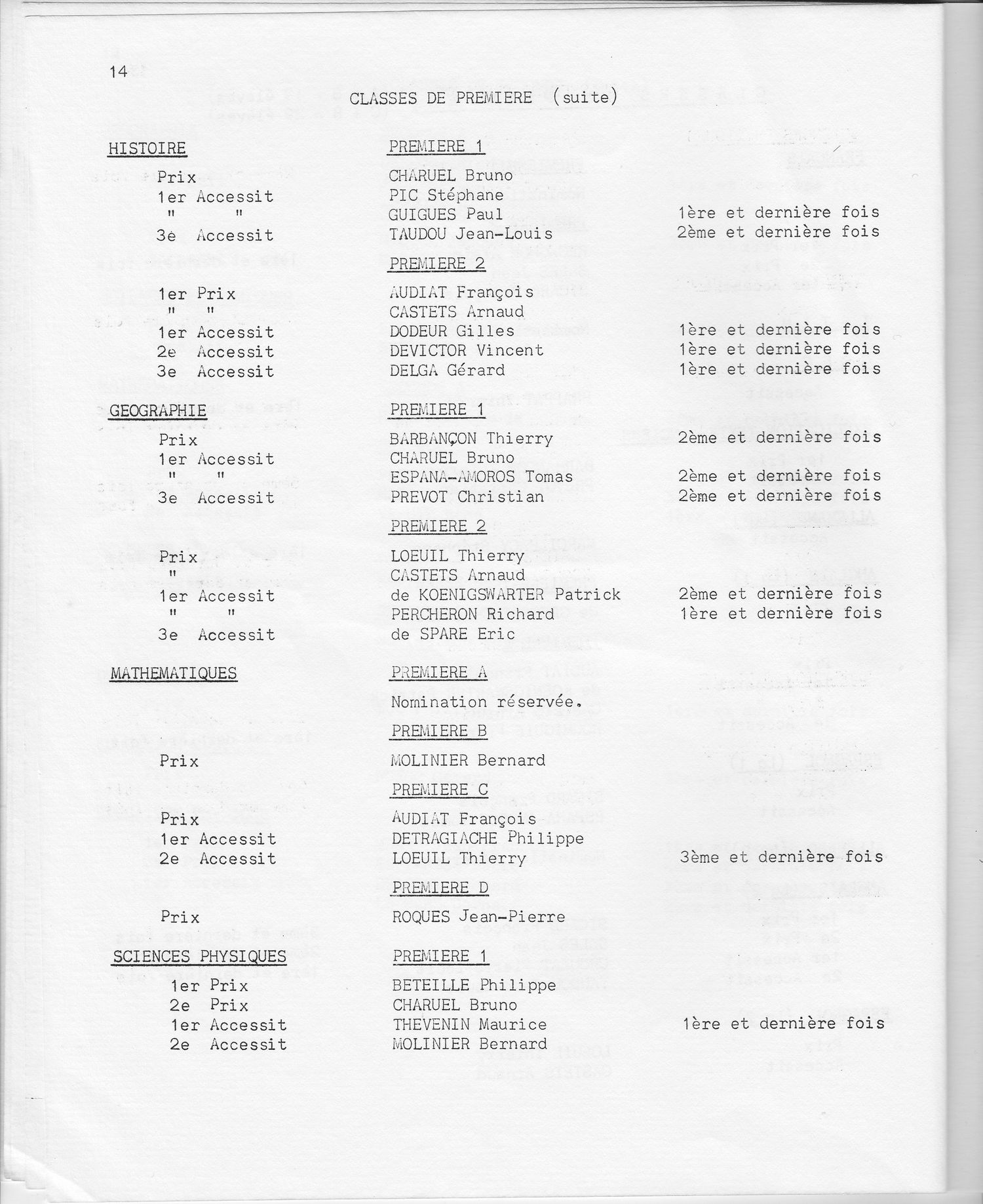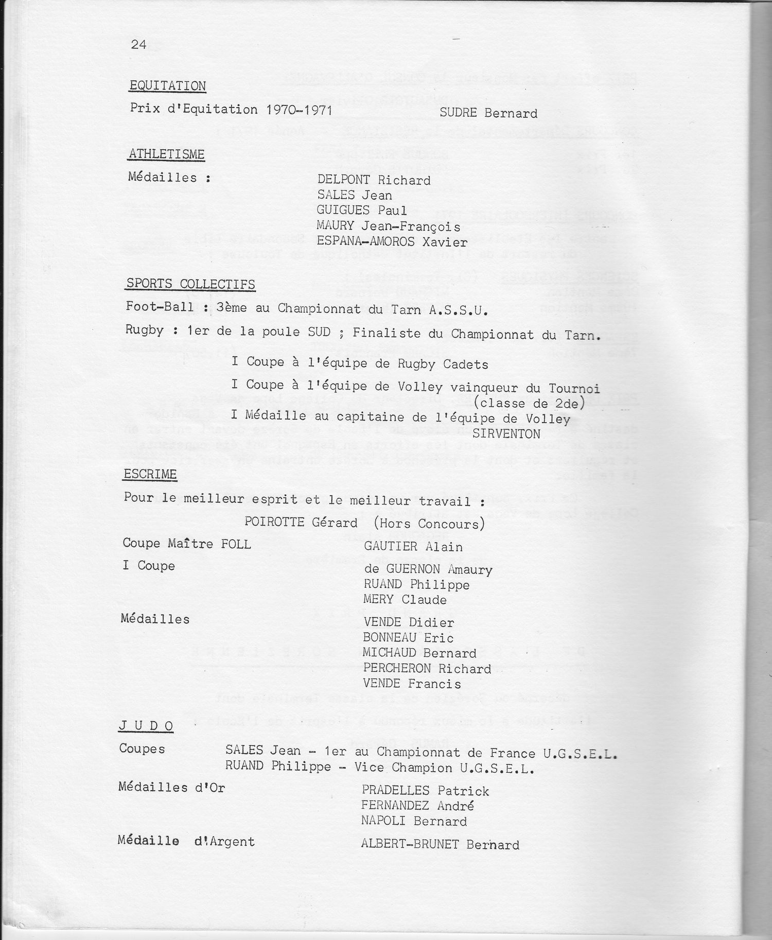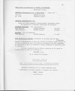 Le Palmarès 1970-1971