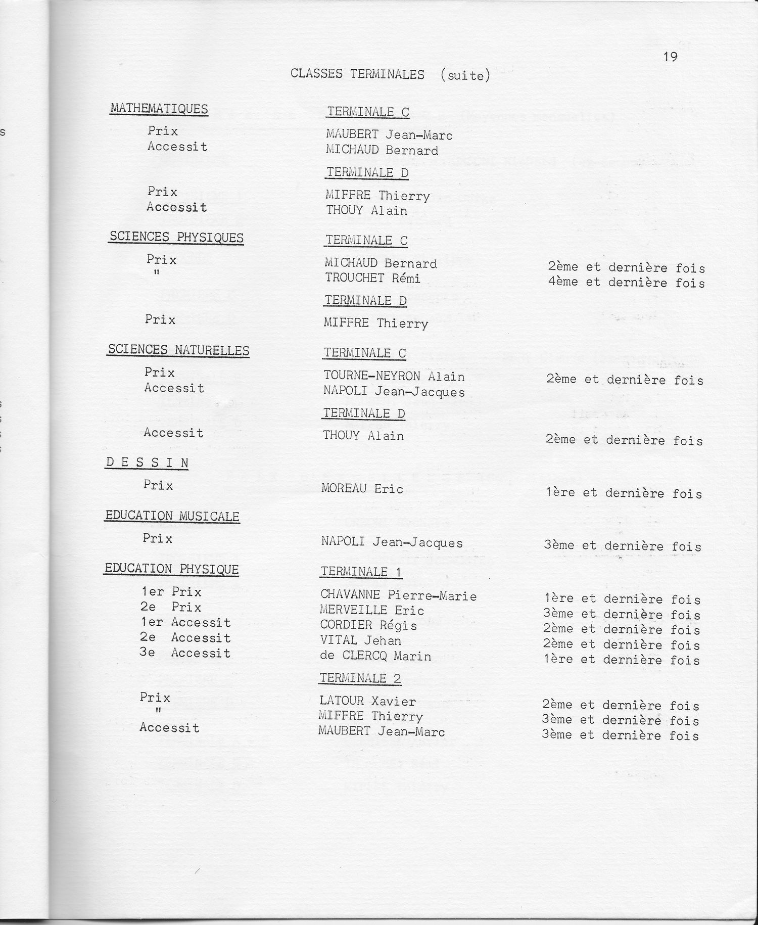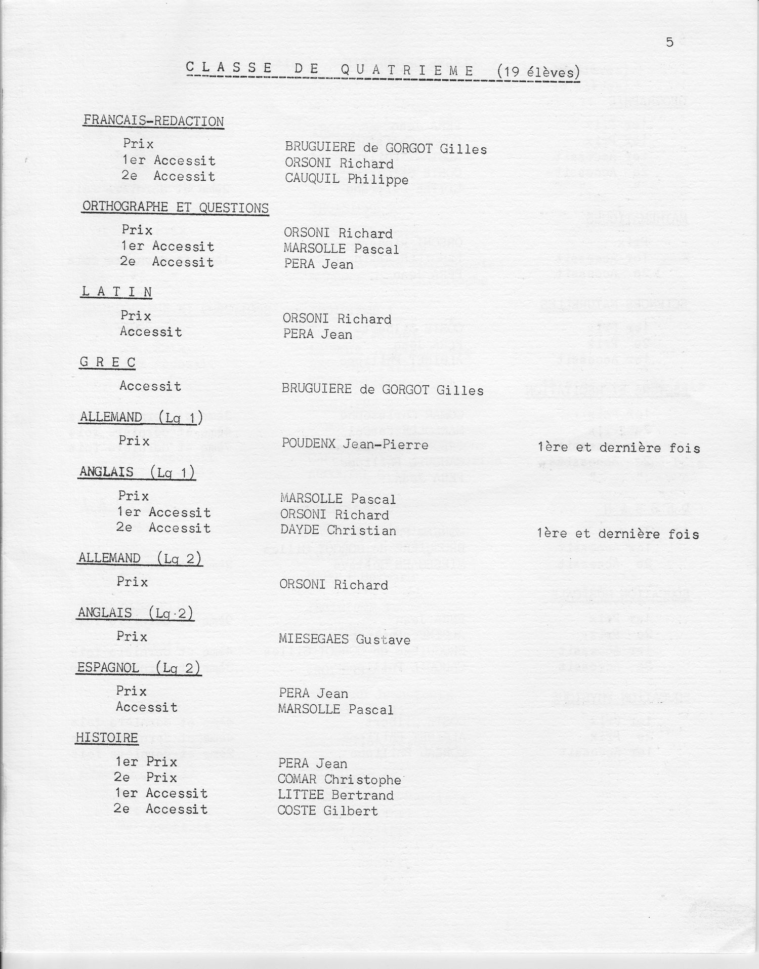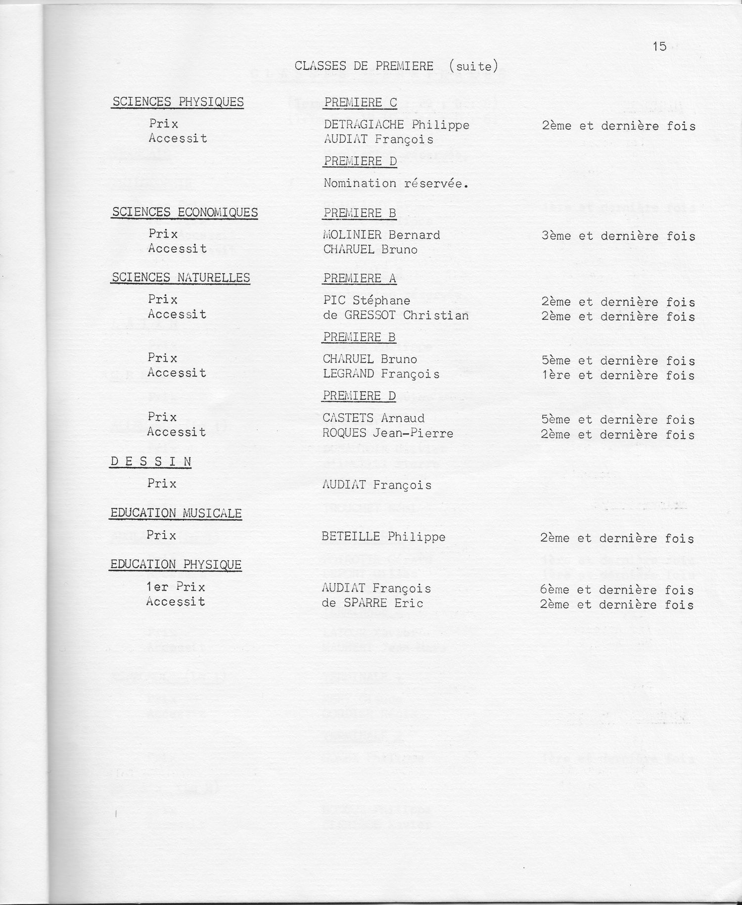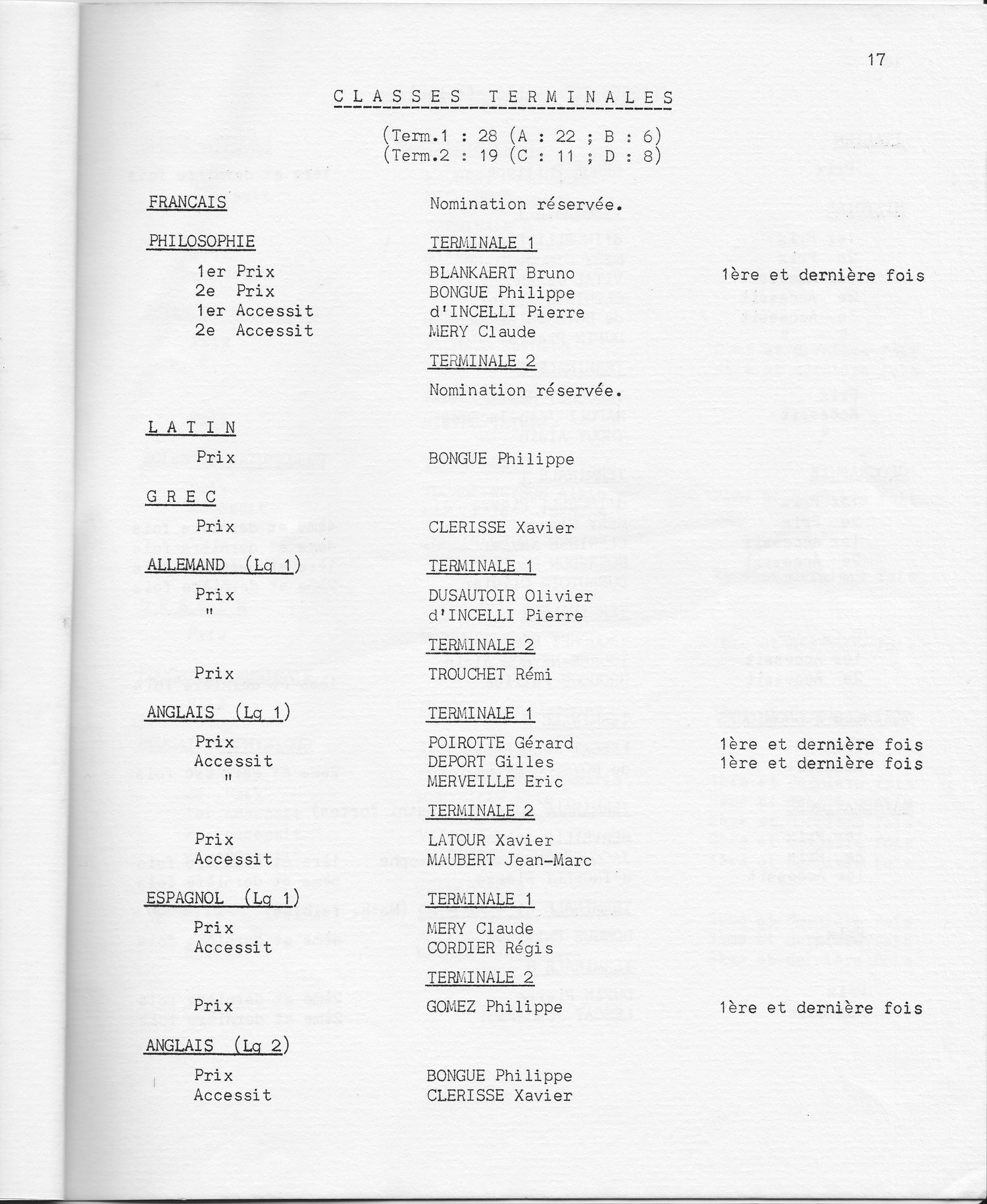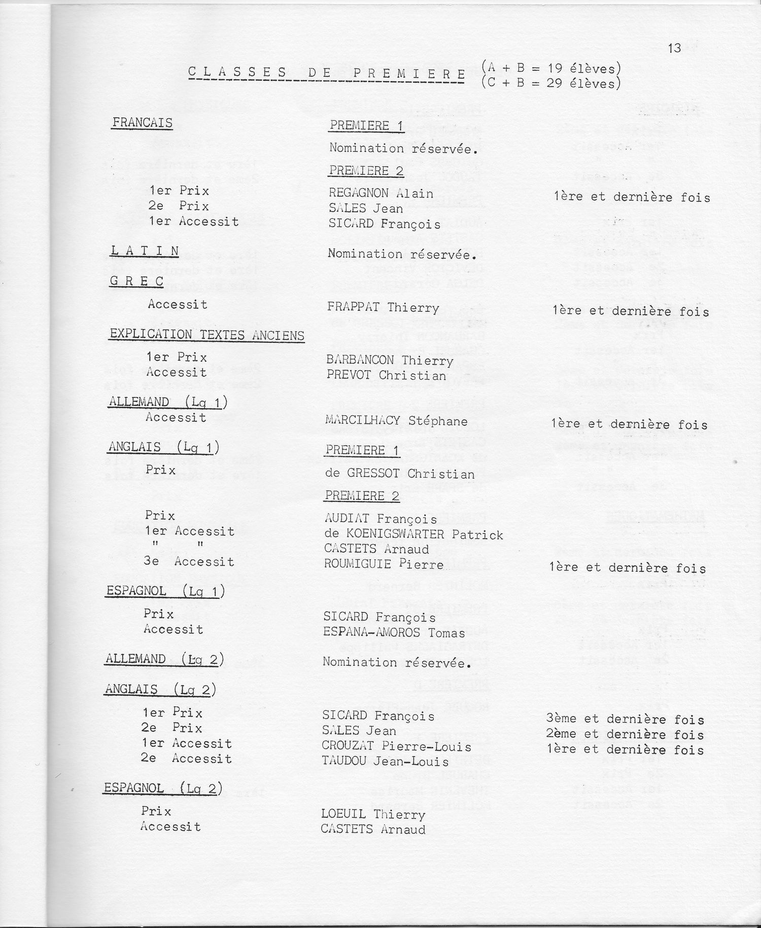 Le Palmarès 1970-1971