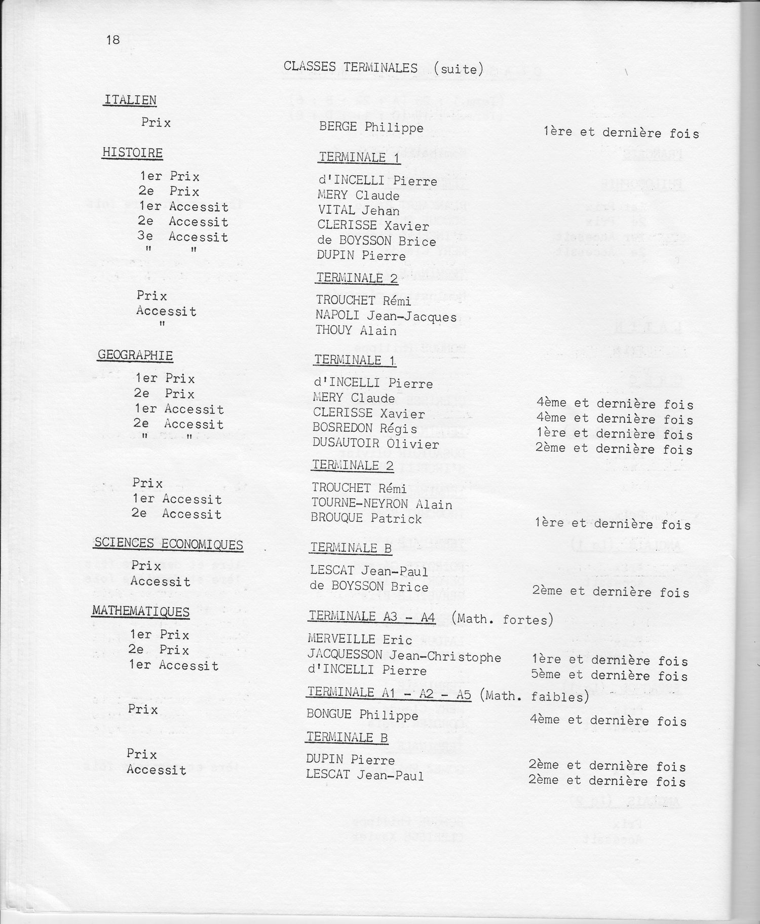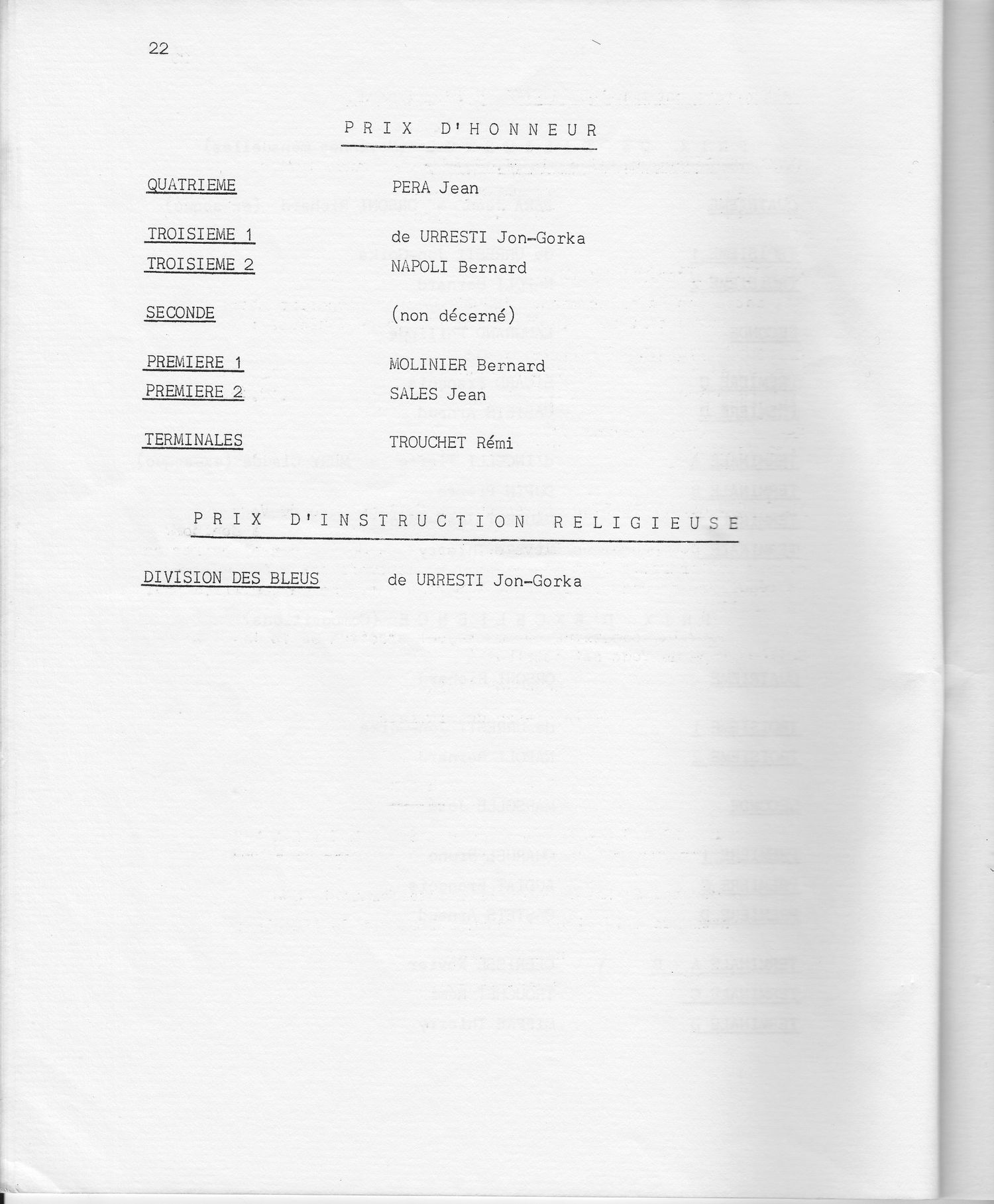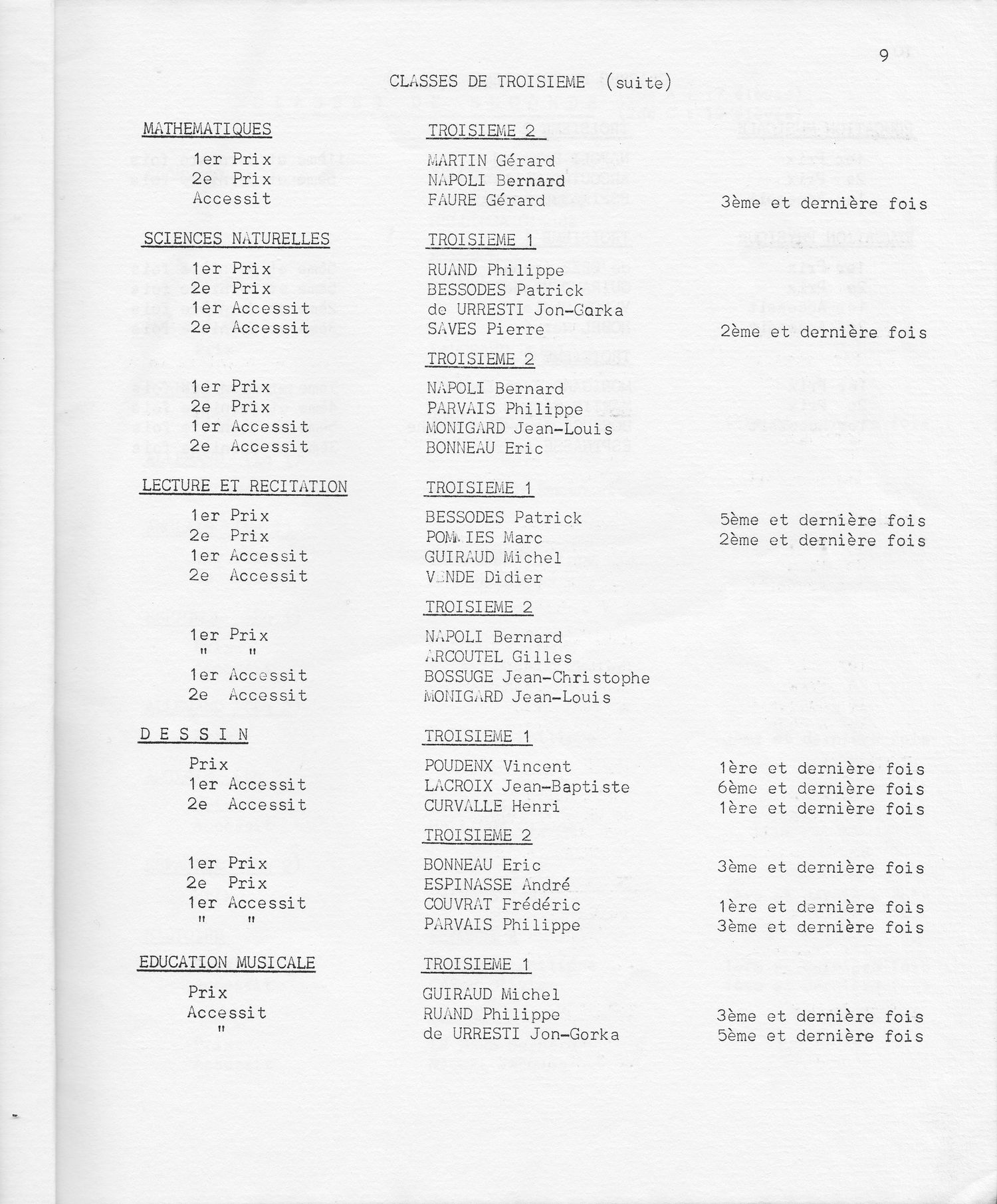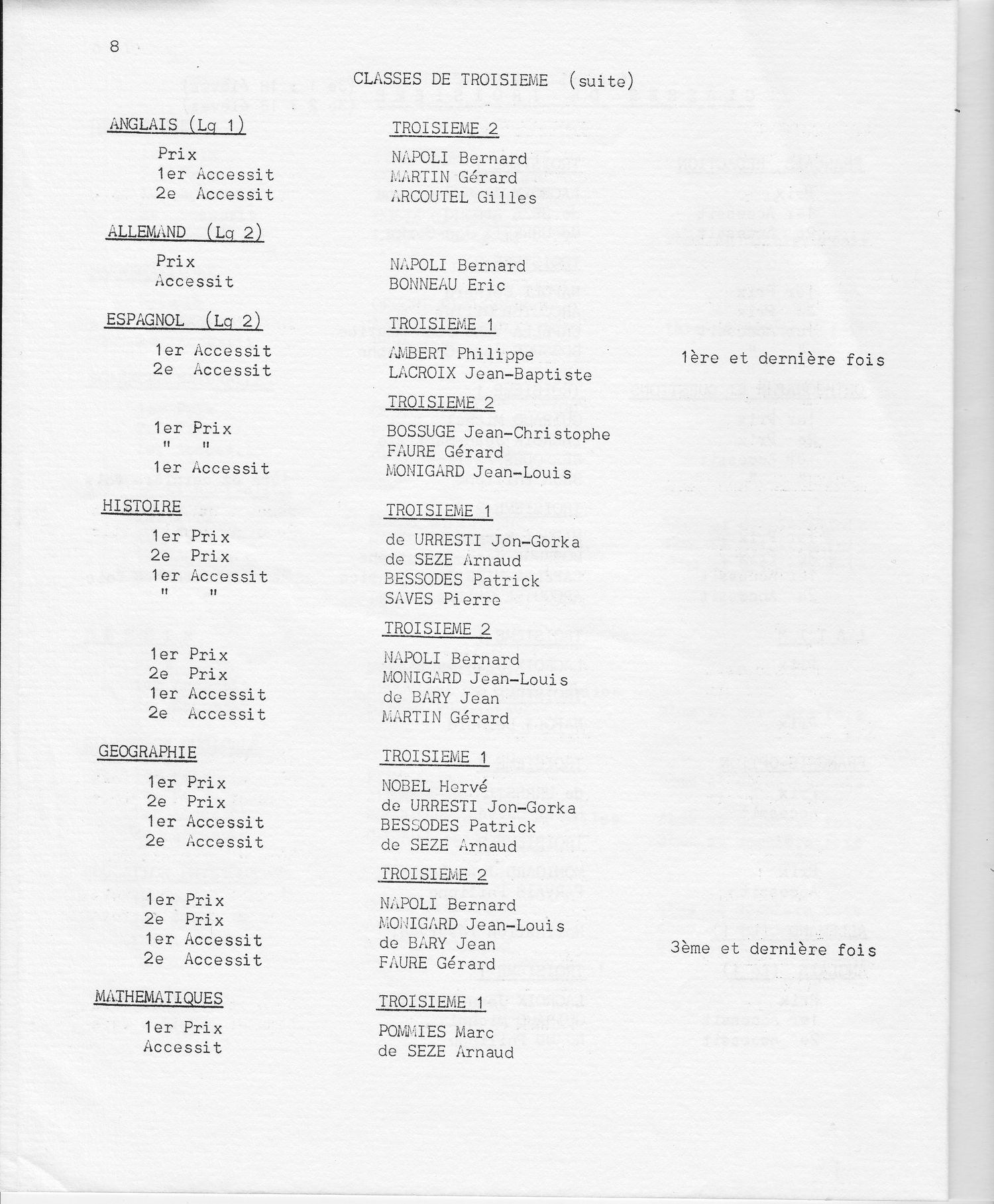 Le Palmarès 1970-1971