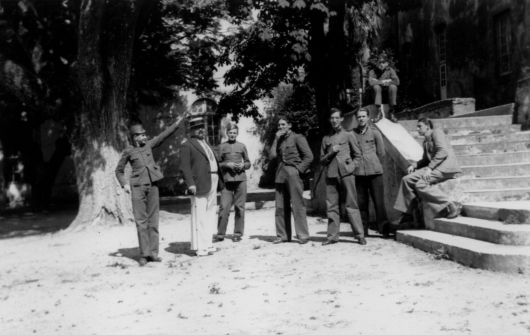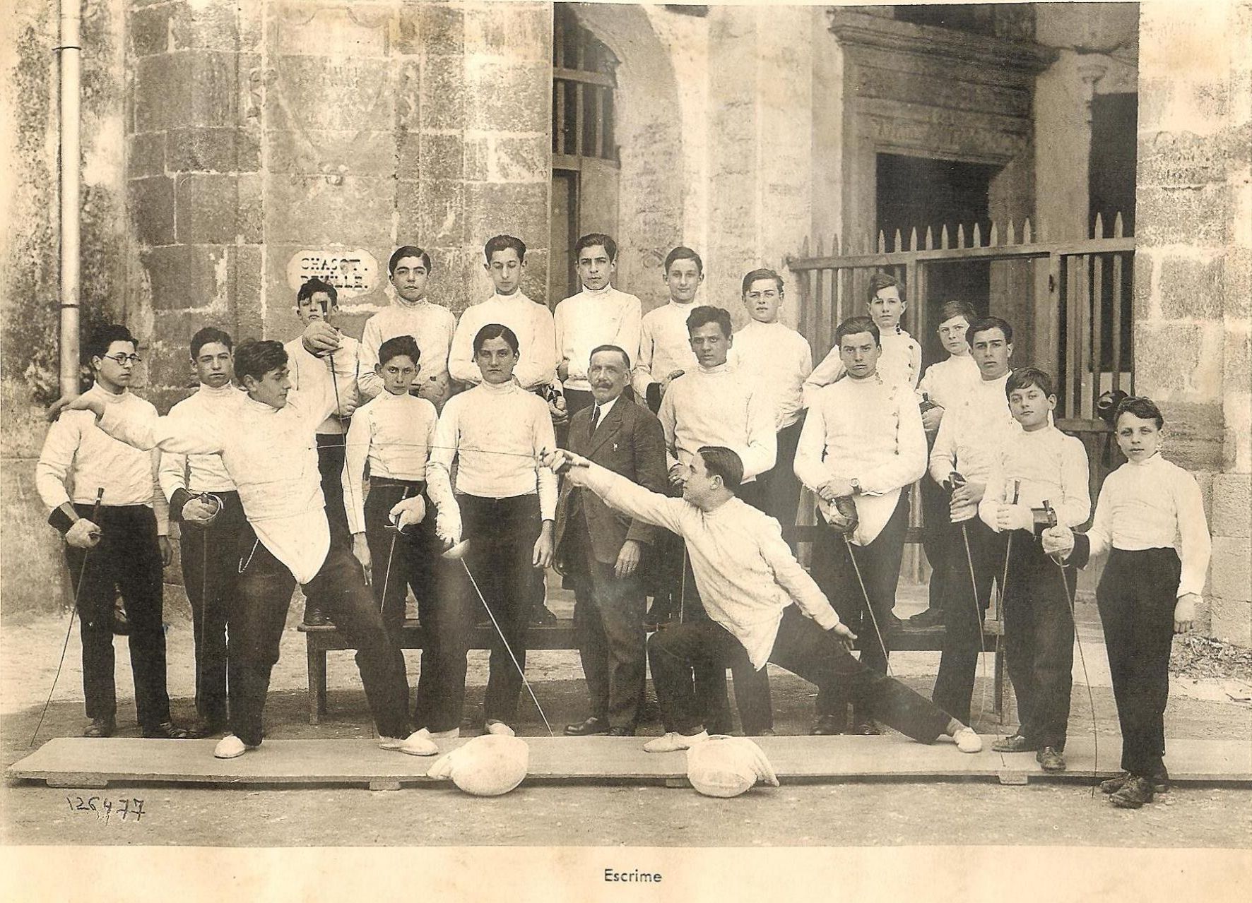 | Yves MARTY, futur maître des cérémonies (3ème) assis : Mr Paul FRAISSÉ prof de maths (5ème), André GALIBERT futur sergent-major (7ème) 3ème | 4ème | 4ème, une autre | 4ème avec les noms | 5ème | 6ème | 7ème et 8ème | La fanfare | L'escrime | ![]() Le maître d'équitation, | Aristide Henri Barberet, Capitaine et ancien membre du Cadre noir de Saumur, écuyer de l’École années 1929-1932 ![]() La carrière