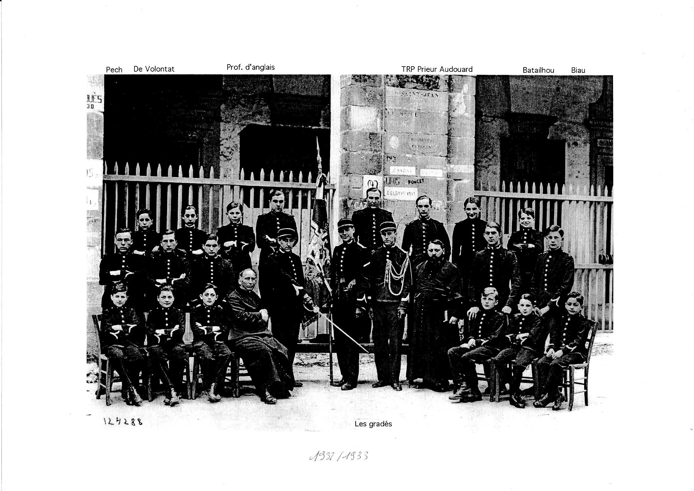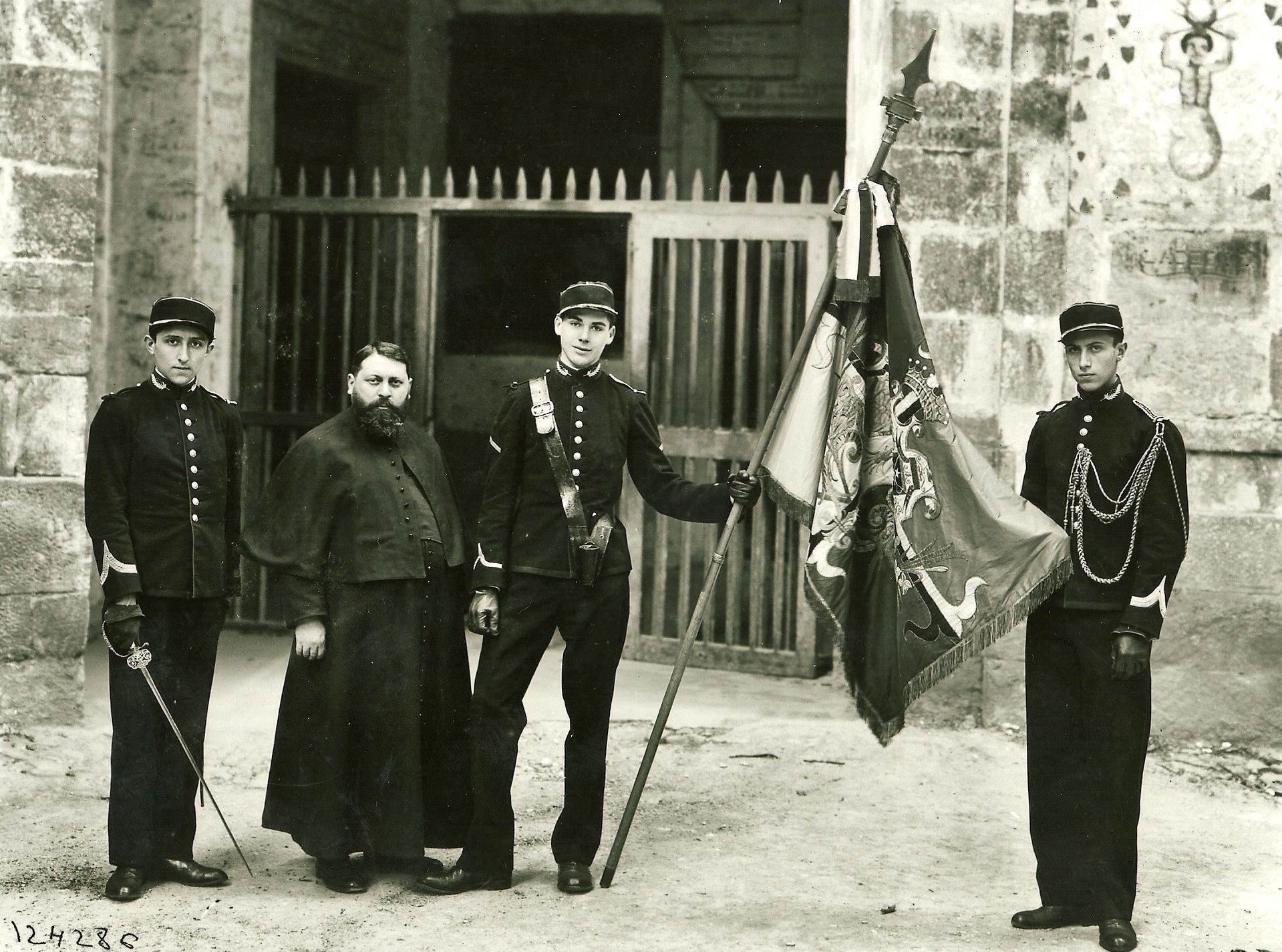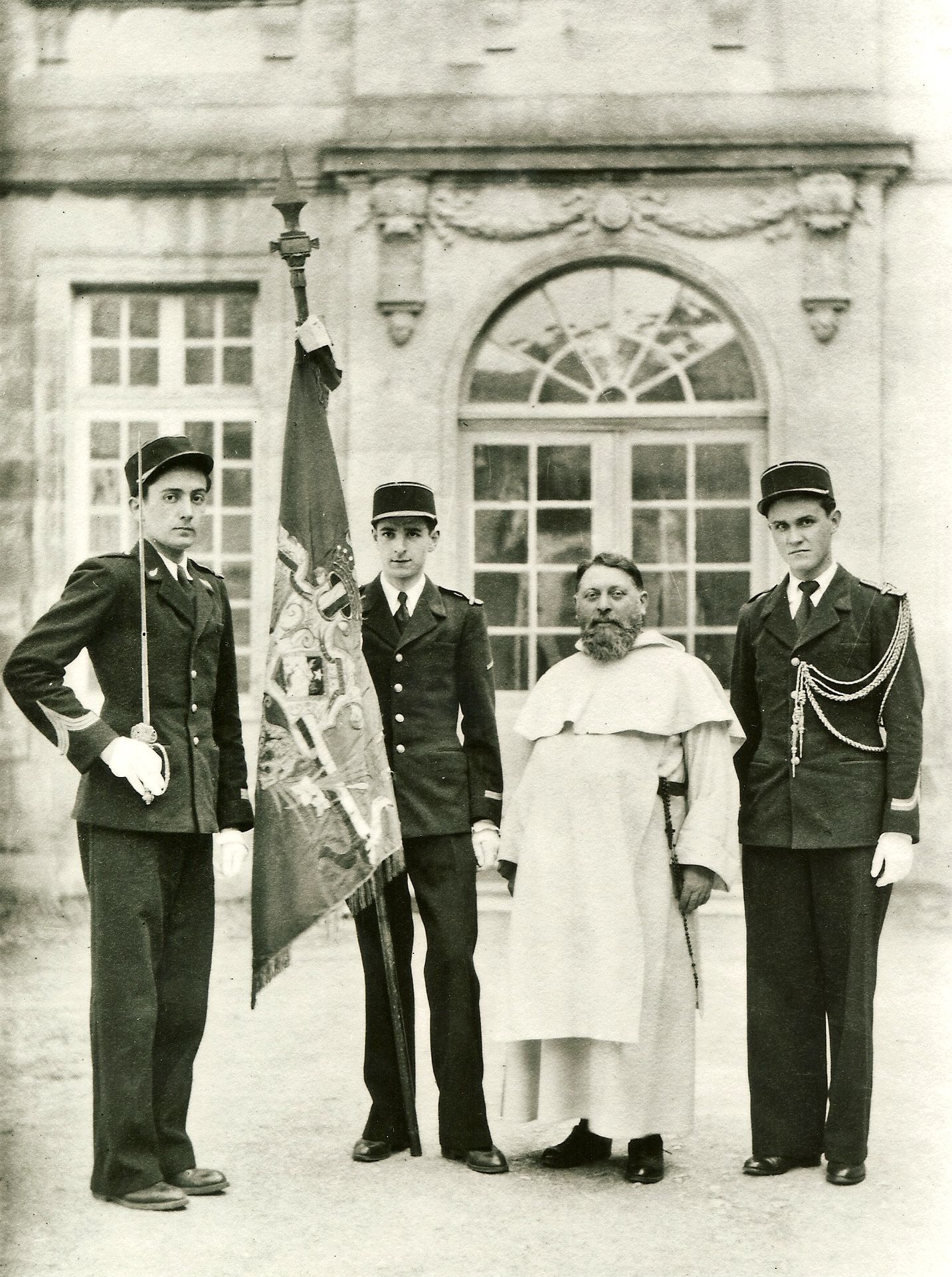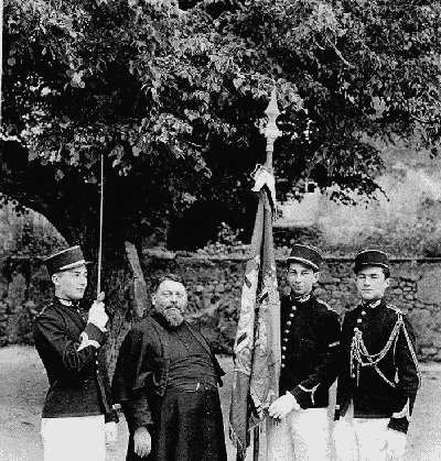 Pierre Courtès, sergent-major, | le Père Audouard, Pierre Terry, Porte-drapeau, Pierre Chaumeil, Maître des cérémonies ![]() les dignitaires | Pierre Courtès, sergent-major, Le corps professoral |