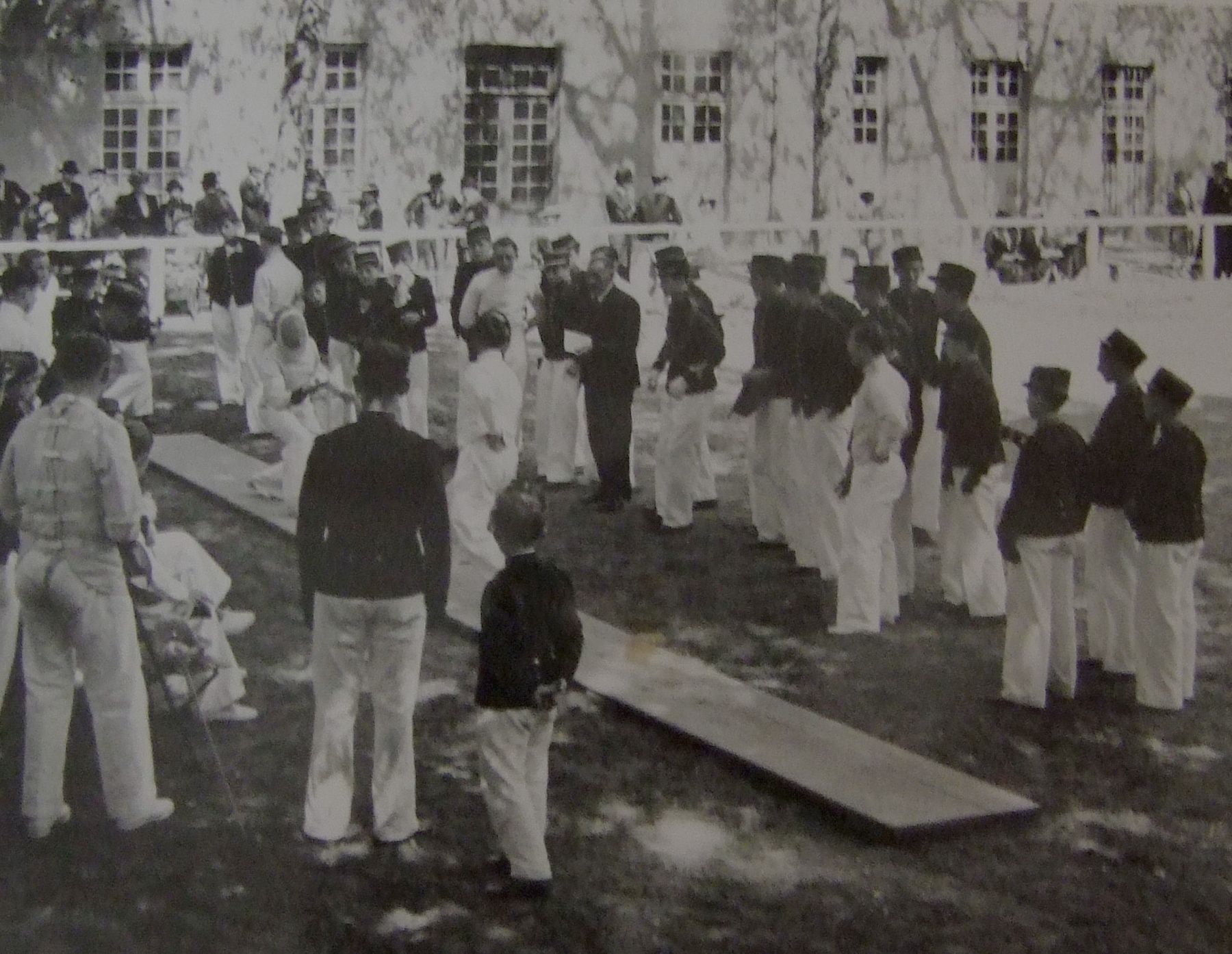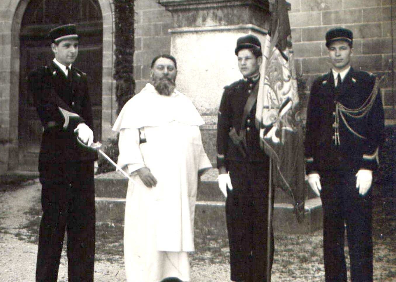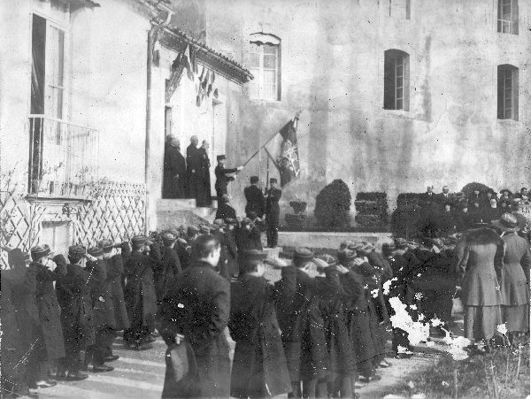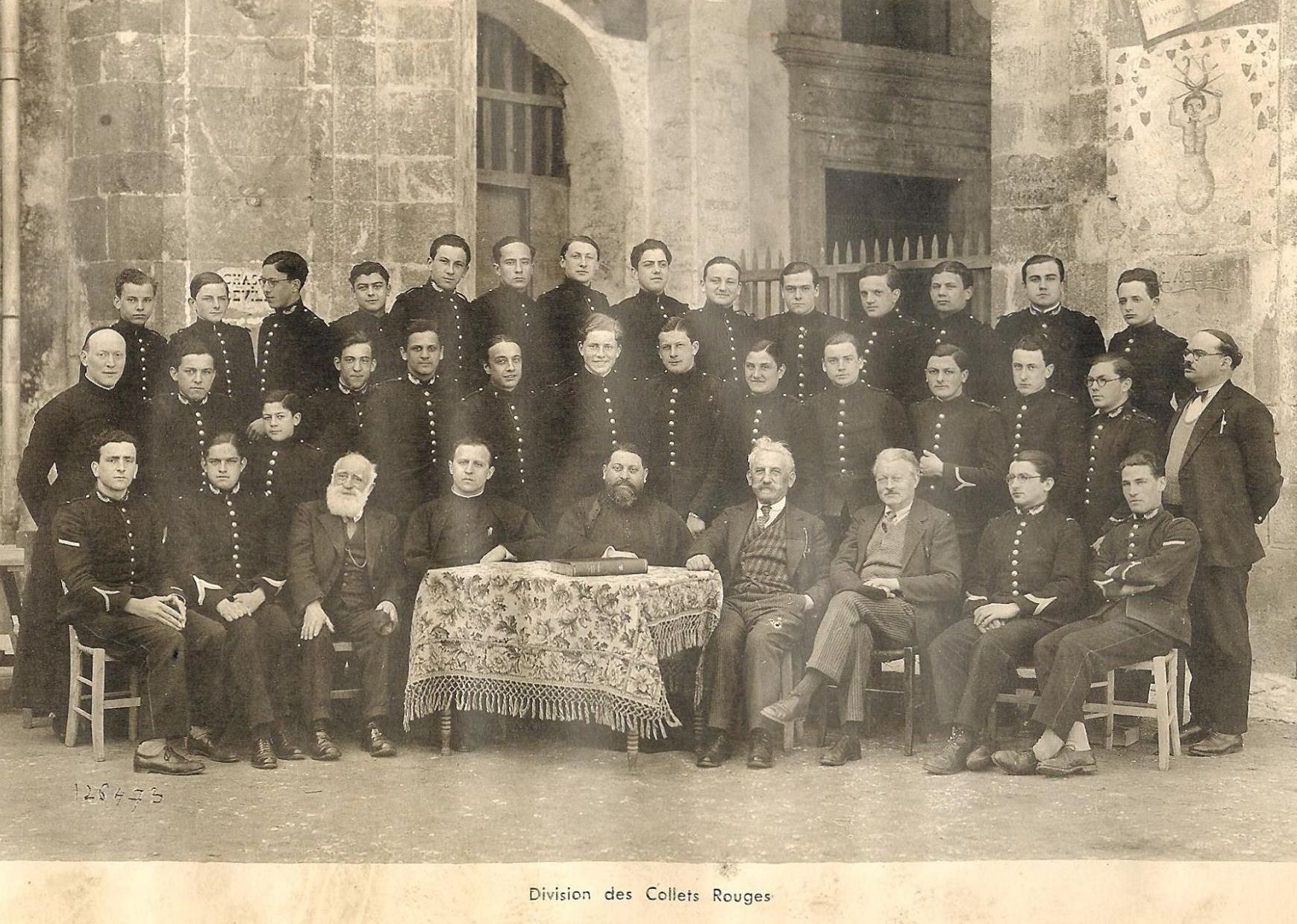 Pierre Courtès, sergent-major, | le Père Audouard, Pierre Terry, Porte-drapeau, Pierre Chaumeil, Maître des cérémonies ![]() les dignitaires | Pierre Courtès, sergent-major, Le corps professoral |
