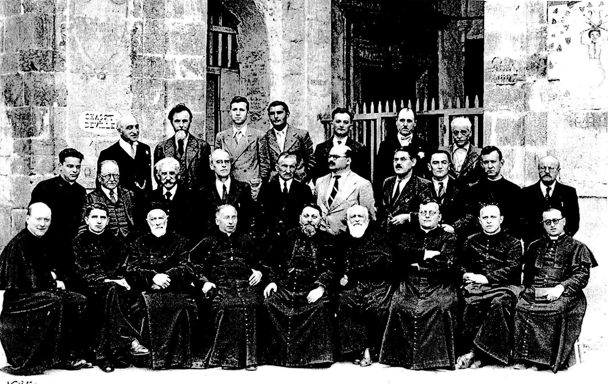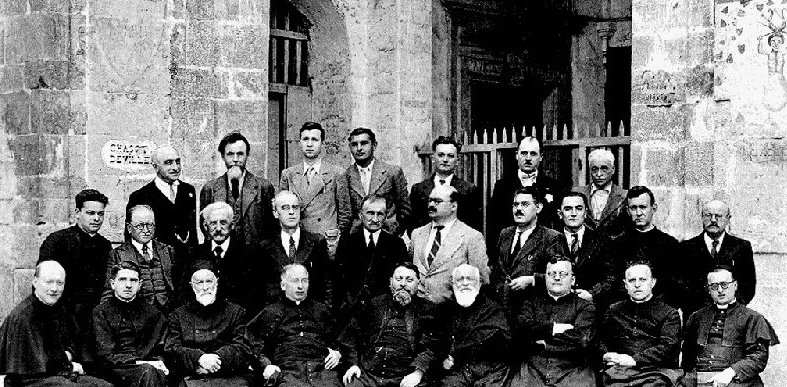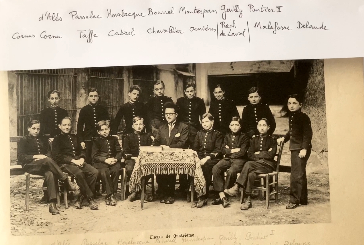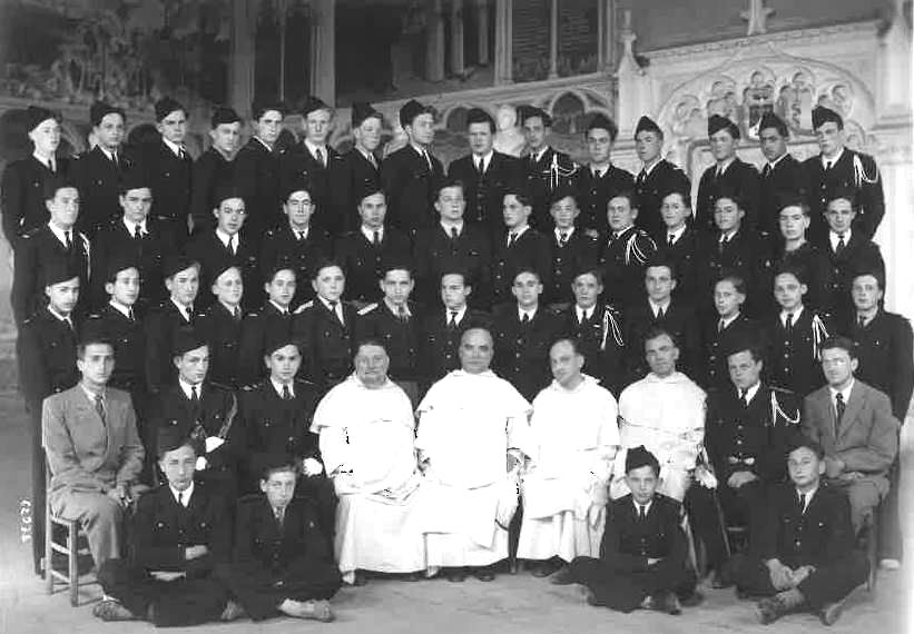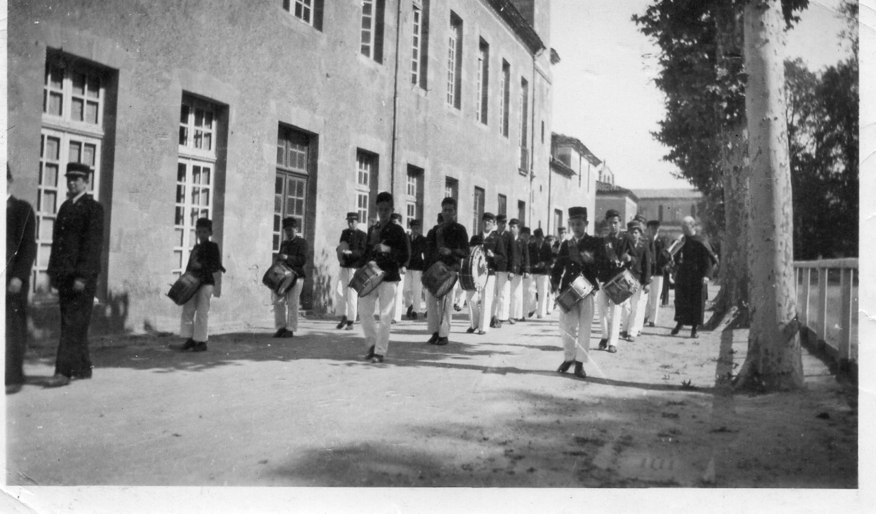 | 1er rang à partir de la gauche : Le Père CAZES (2ème) Le père AUDOUARD (5ème) Monsieur CAMMAS économe (8ème) 2ème rang à partir de la gauche : Monsieur FRAISSÉ prof de maths (6ème) Monsieur AUSSAGUEL économe (8ème) 3ème rang à partir de la gauche : Monsieur BARRIERE (2ème), Monsieur DAUNIS prof de français (5ème), Monsieur LESTARPE sous-censeur et concierge (6ème). ![]() Une autre du corps professoral | La remise du drapeau | Pierre Terry et le père Audouard | Philo-Maths | 1ère | 1ère avec les noms | 2onde | debout