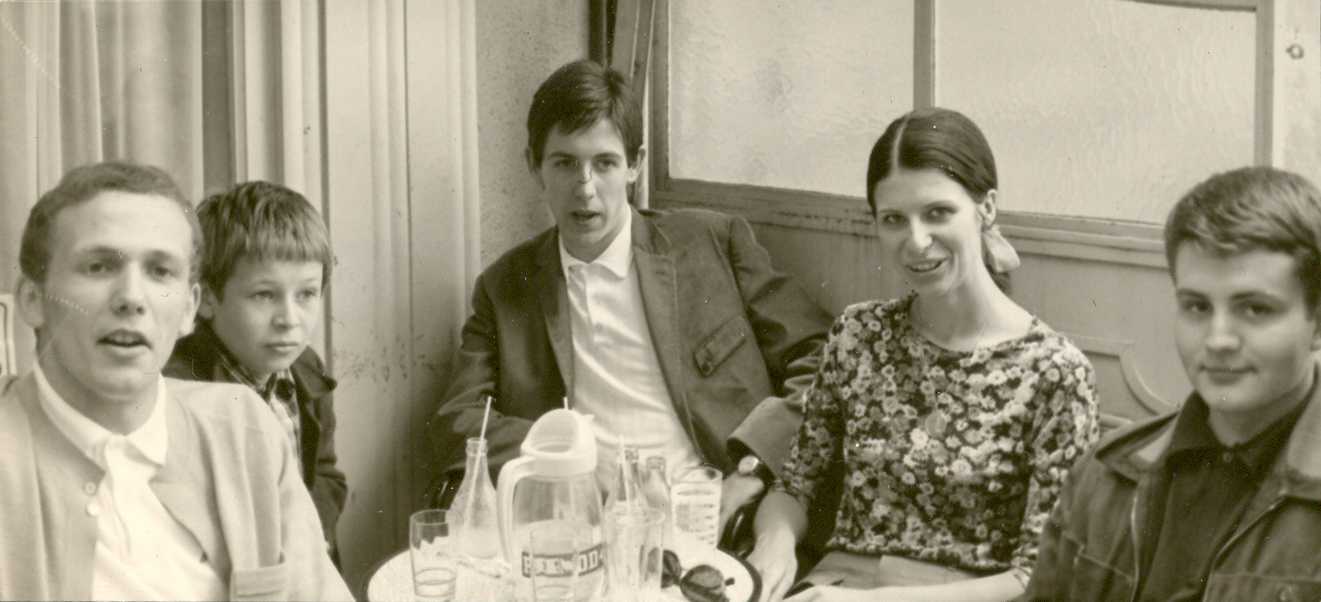 | 17 juin 1966, Castres, baccalauréat Au café d'en face le lycée : Joëm, les 3 Guiziou (Marc, Jean et Maryvonne), Gérard Juhan