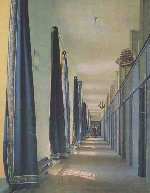 | Vue du dortoir des Rouges sur la Rue St Martin : les villageois tuent le cochon