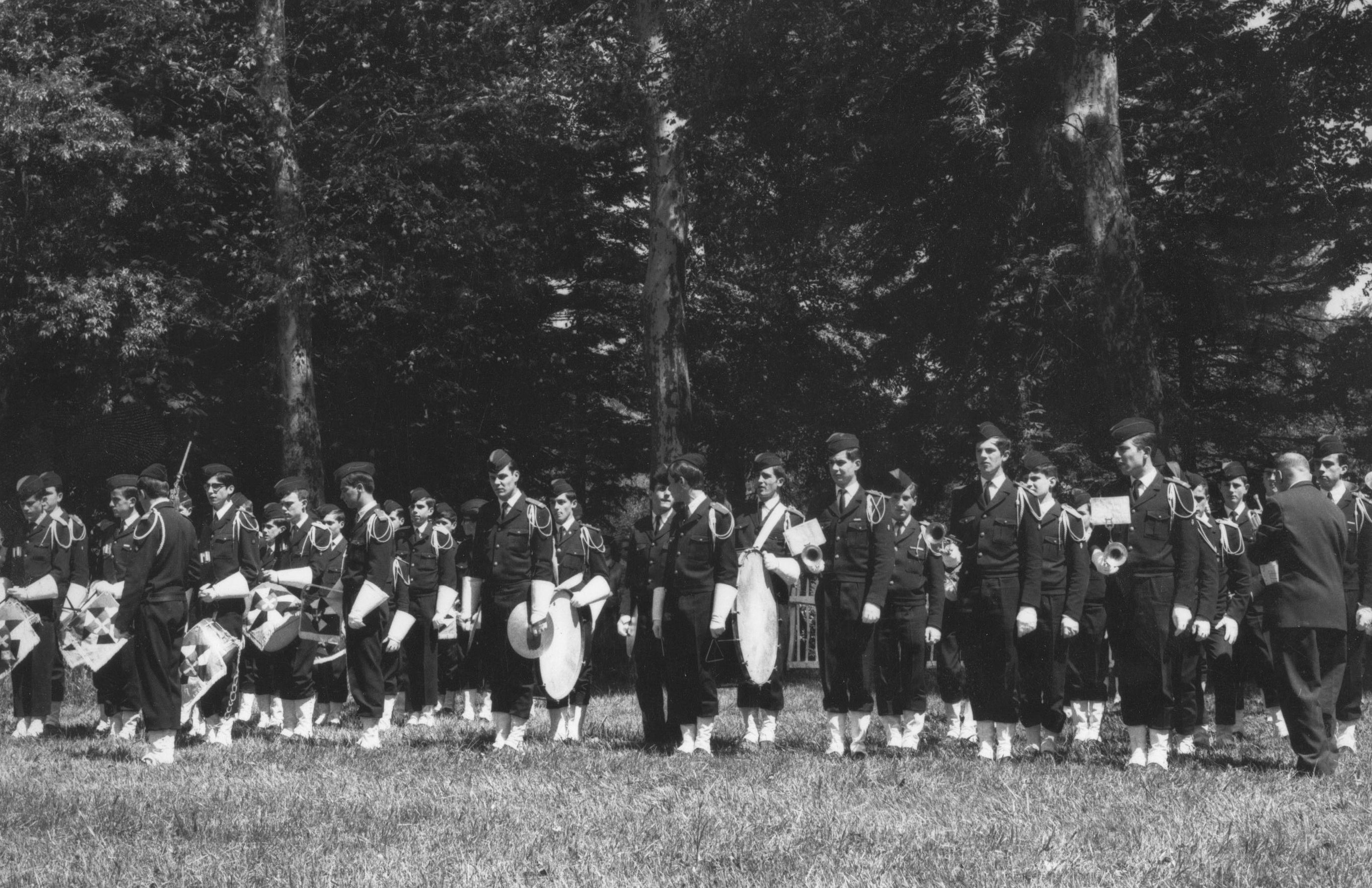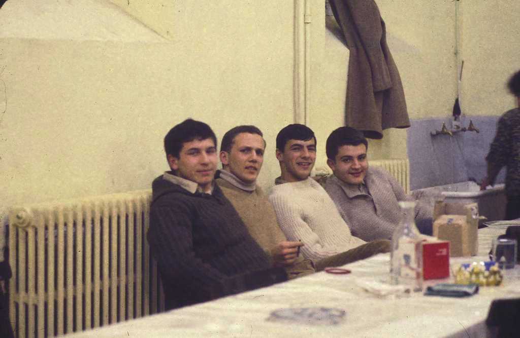 | Pentecôte 66, 28 et 29 mai, peloton d'accueil, à gauche : Languillon, Tacot, à droite : Leblond et Soumet