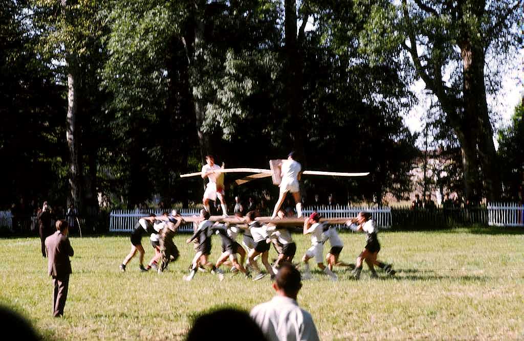 | Rugby Pentecôte 66 De gauche à droite : Bossuge JP, X, X, Soumet, Tarrat J., Juhan, Azema, Danoy, Marchal J., De Noblet, Monnet de Lorbeau, Marchal D., Escarguel D., Picquot, Lang, Tarrat G.