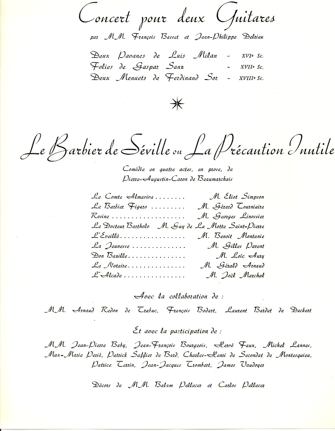 | Théatre le samedi soir, on reconnait à droite Gérard Tourniaire en Figaro
