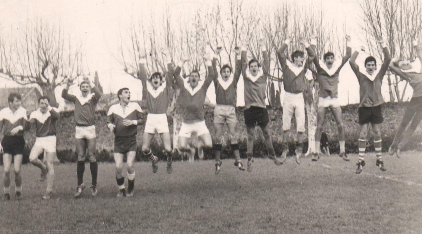 |  | De droite à gauche : Jean-Paul Bossuge, Bernard Soumet, Guy De La Motte, Escarguel, et derrière : Salvetat et Georges Tarrat. Plus loin, Danoy en blanc l'arbitre, Didier Marchal, au loin la dégaine de Lang