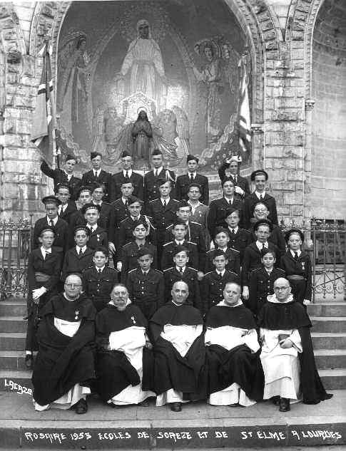 En bas, RP X, RP Milleret, RP Bernard Dastarac, Mr Fraissé, RP Mayrand, RP Lamolle, RP X, RP X, Frère Dominique