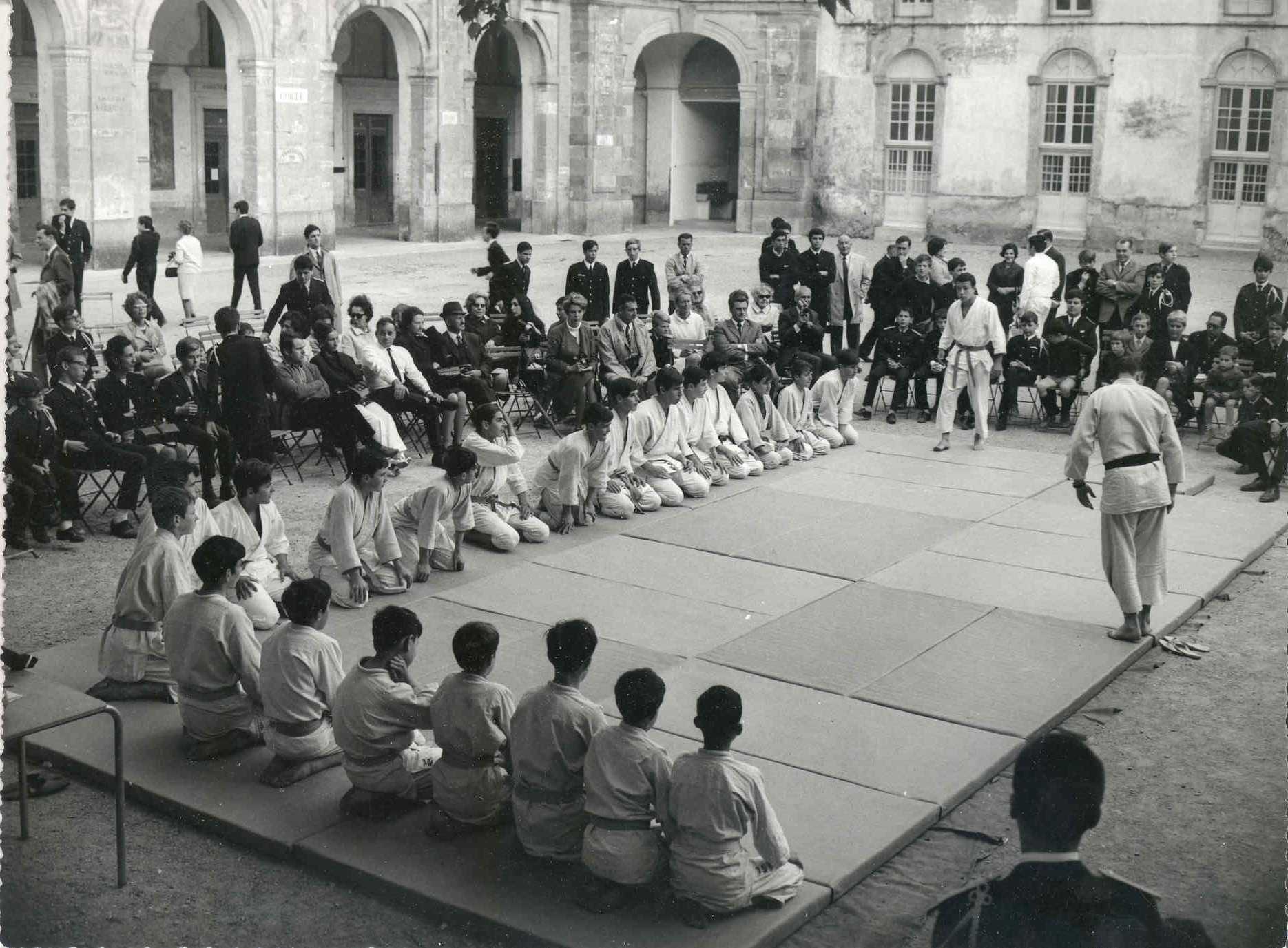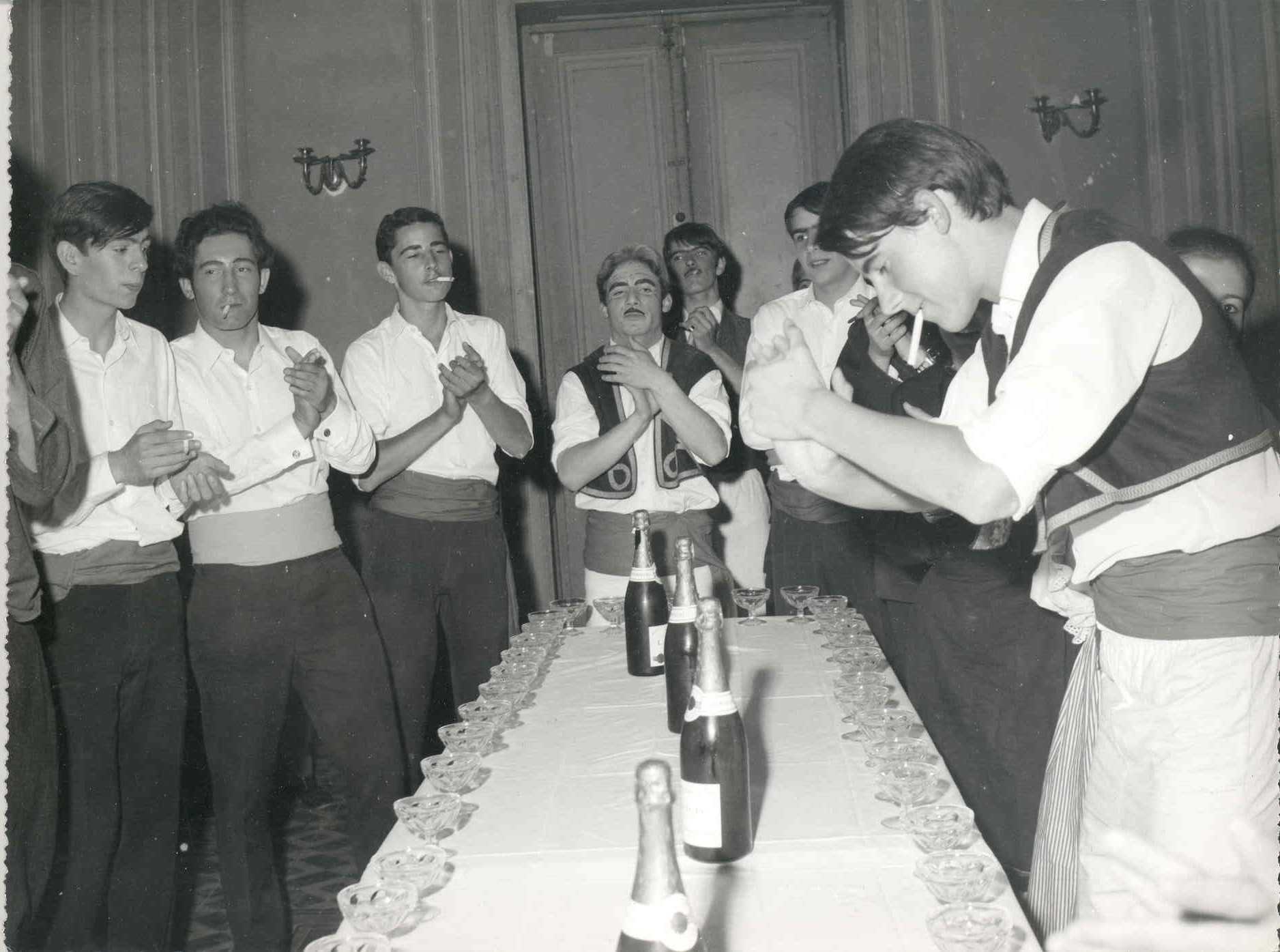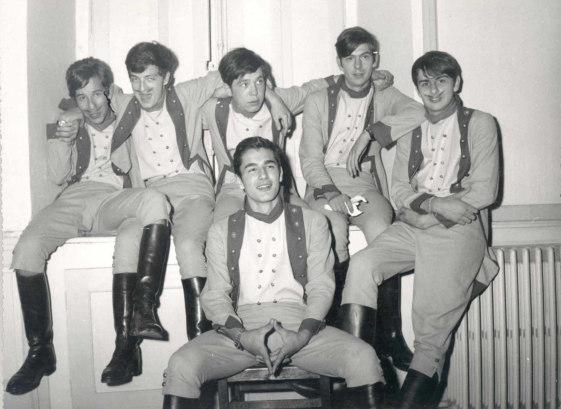 Derrière Leblond, Mr Zwahlen. En décalé à gauche, le prof de musique, et Bruno Charuel.