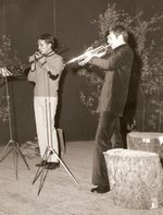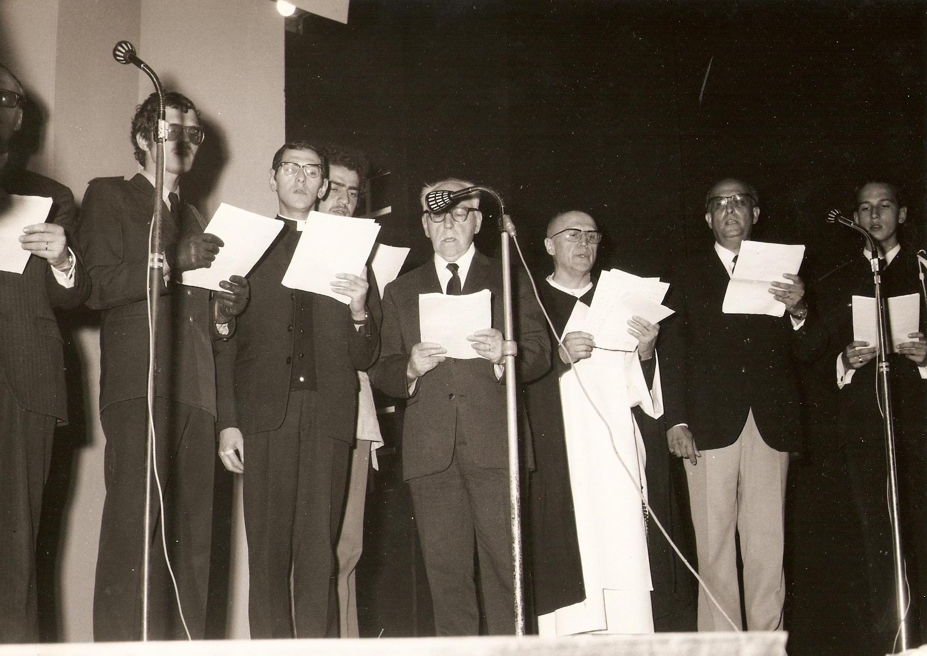 | 1972, Ste Cécile, on reconnaît Mr Fasse, prof d'allemand et le père Lamolle, ancien professeur d'espagnol lors d'un chant en espagnol