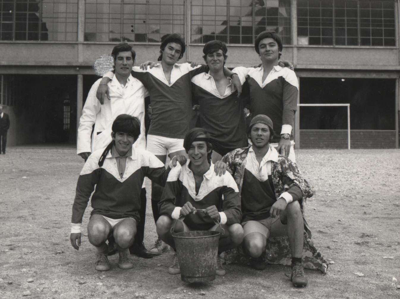 | ![]() 1971 Grand-parc, rugby ligne avant, SALES Jean-Edmond, MOLINIER Guy, Pierre-Louis CROUZAT
