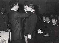 | ![]() 1972 FELDO Notre Vénérable Maître en lévitation extrême, opérant sur une table de nuit du dortoir des Rouges. Chapeau c'était mémorable