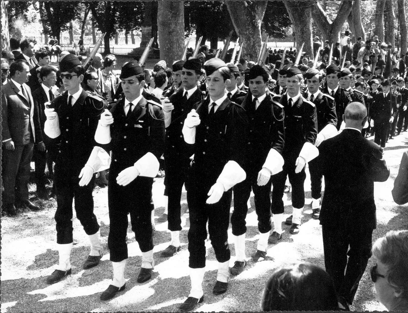 | Au centre, Jean-Paul LAFFITTE, porte drapeau, à sa droite, Philippe Aurand, à sa gauche Emmanuel Mercier, à l'extrême droite du 1er rang : Petitcollin
