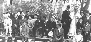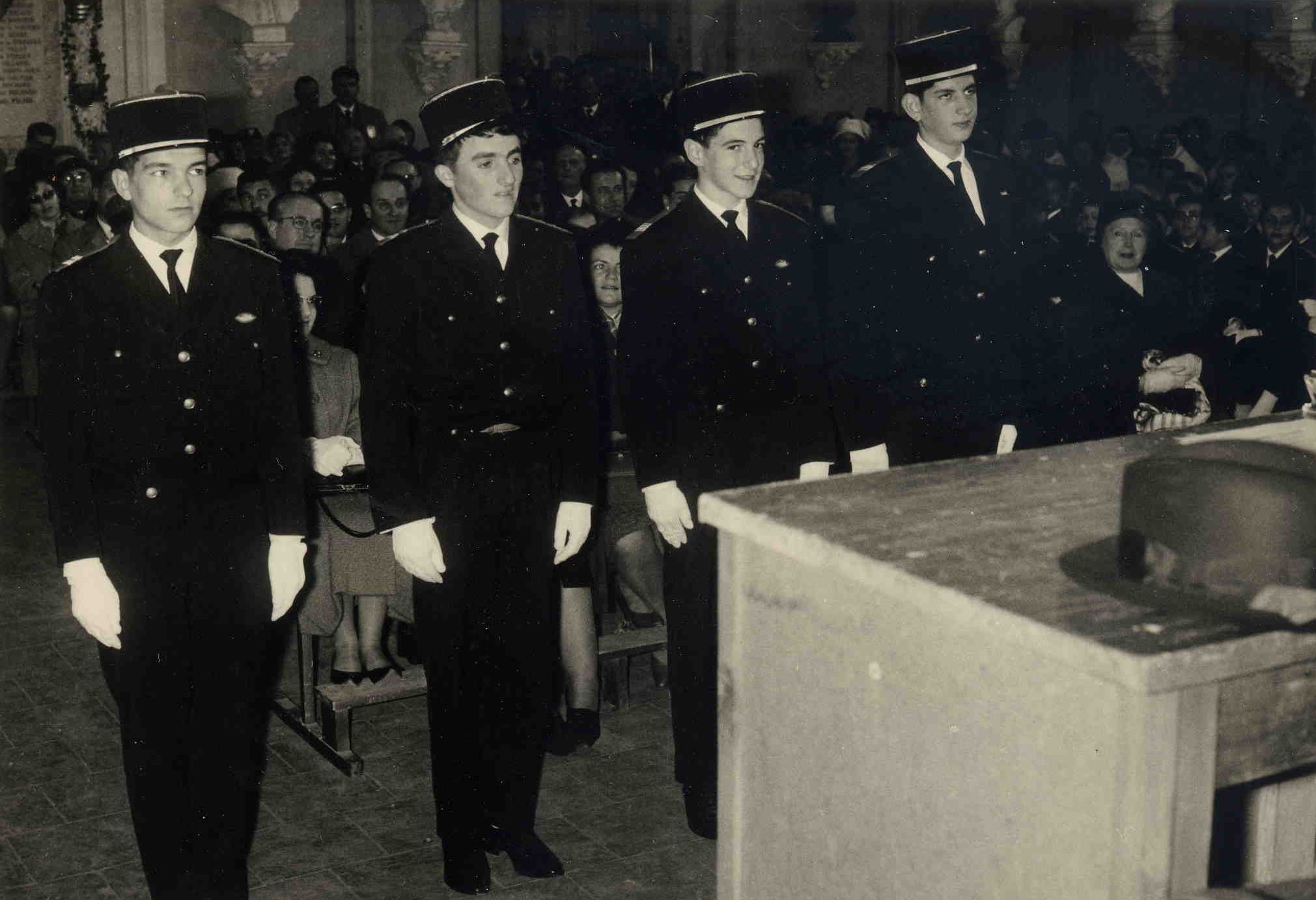 | ![]() Sainte Cécile 1960, | Dominique Mugnier, Gaston Bergasse, Jean Laurent, Louis Roy ![]() Sainte Cécile 1960 (20 novembre), | Gaston reçoit le drapeau des mains de son père et du père Montserret ![]() Gaston Bergasse avec son frère Gérard (photo rare)