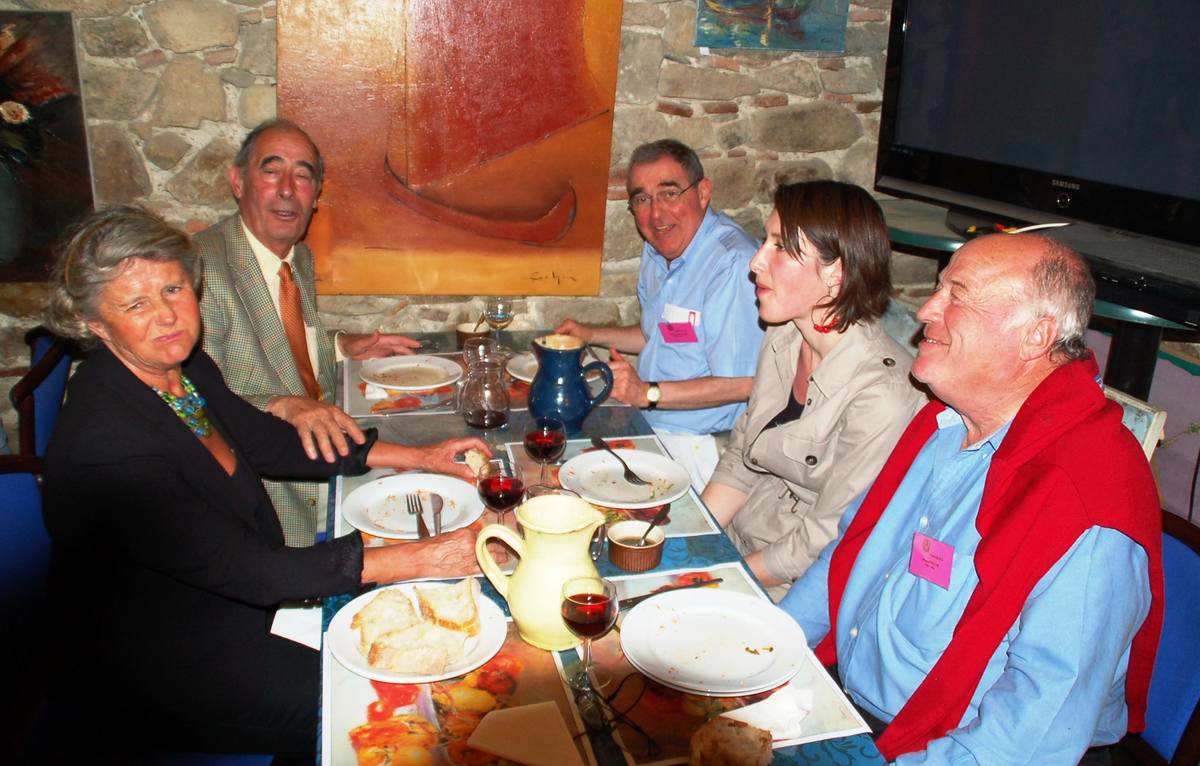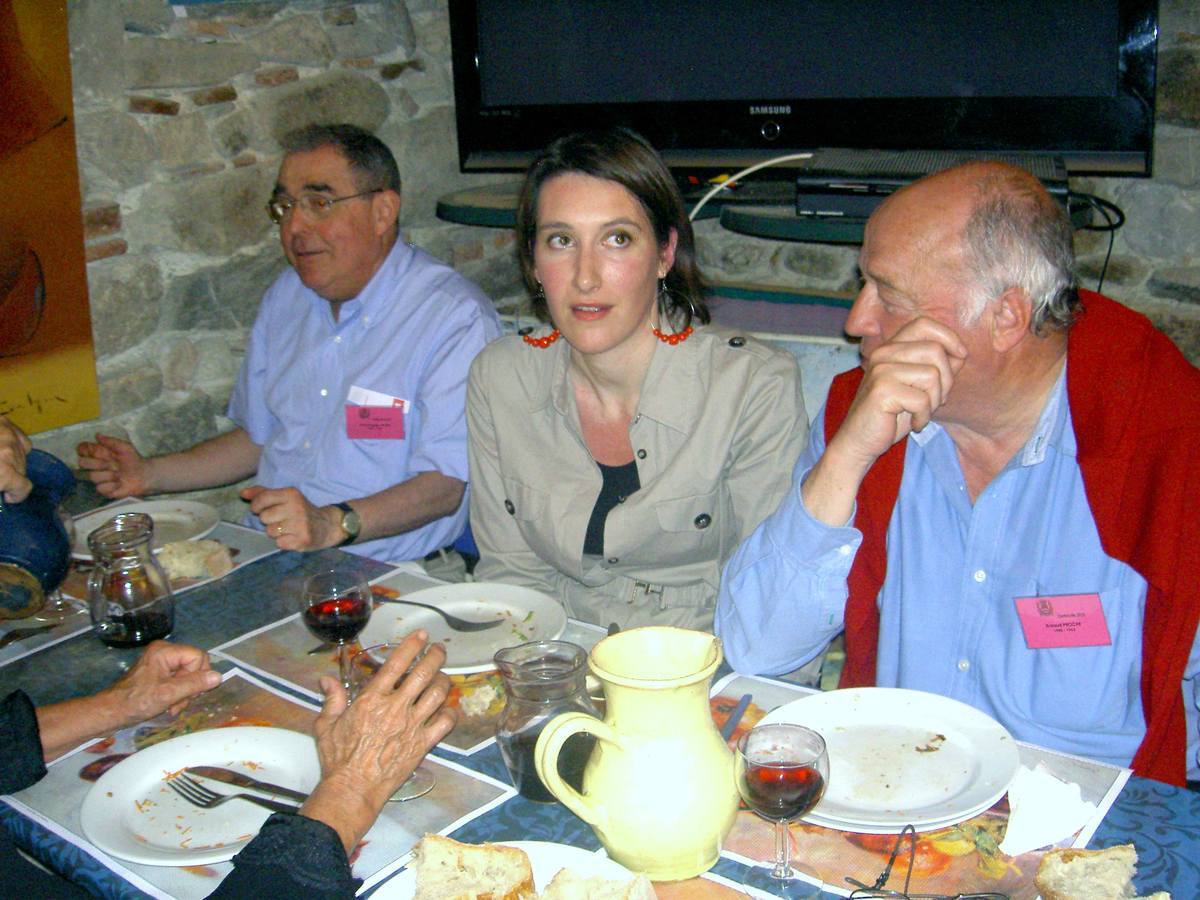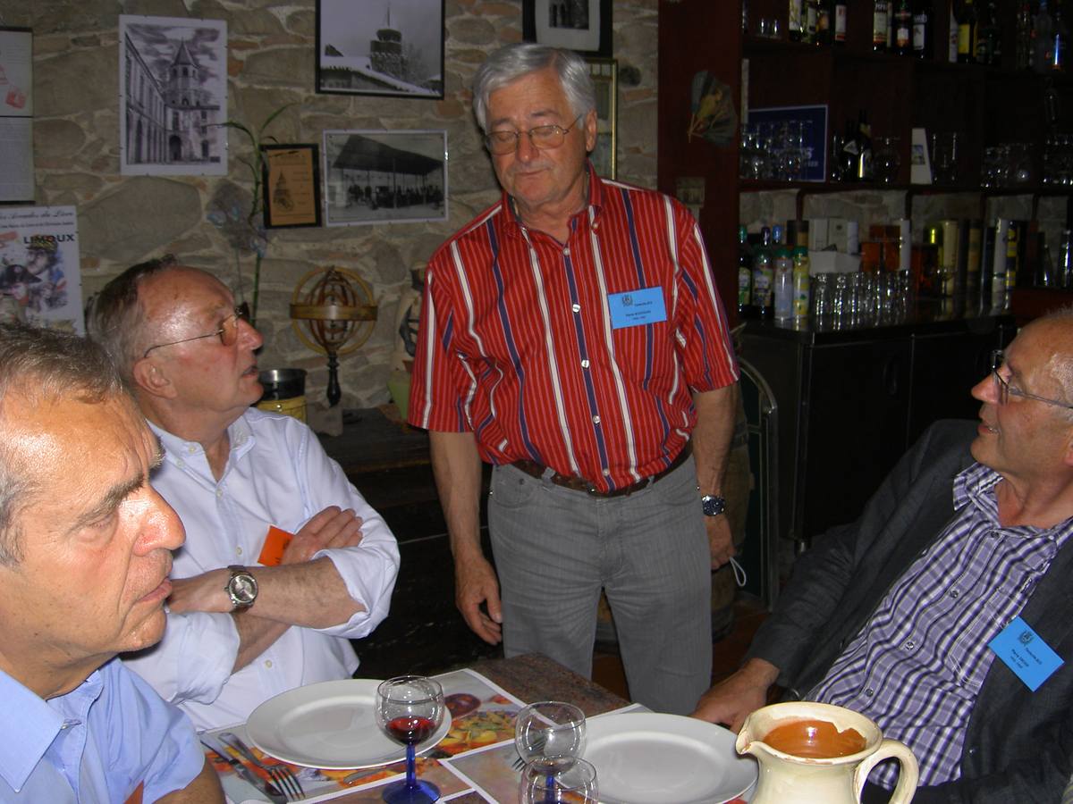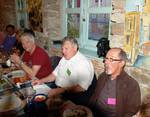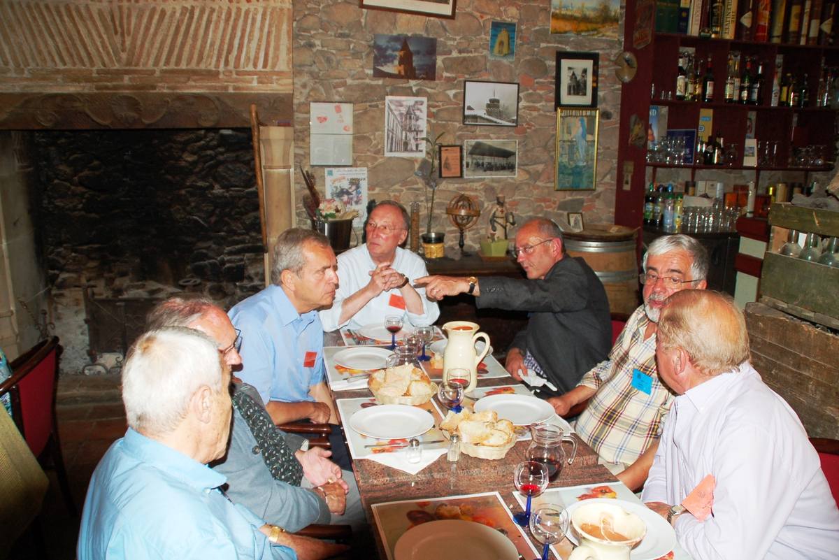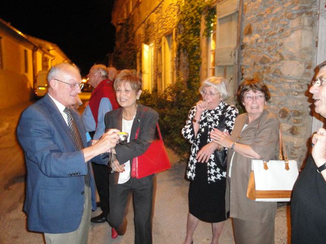 | Christian Vialle, Arnaud Proche, Hervé Gaudibert et Albert Mamy écoutent l'histoire de Sorèze