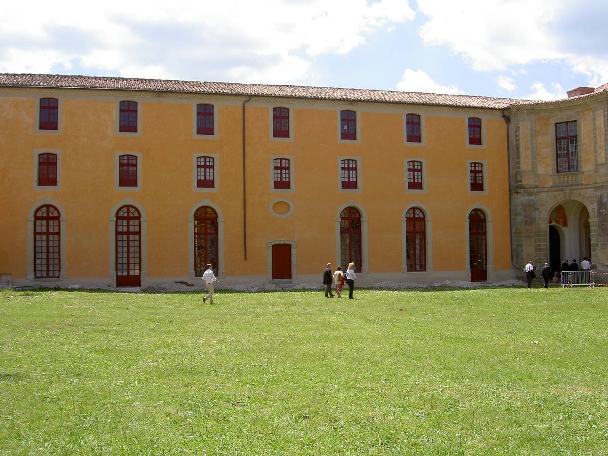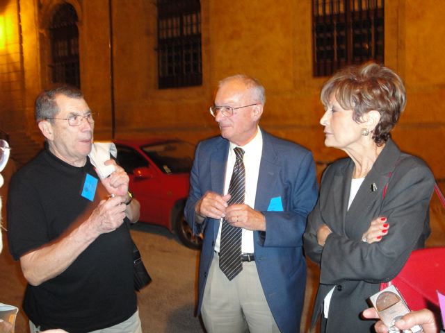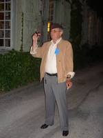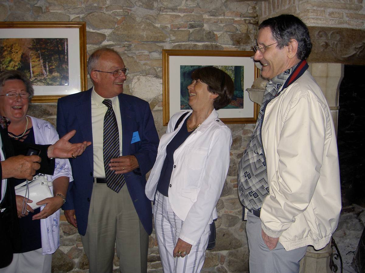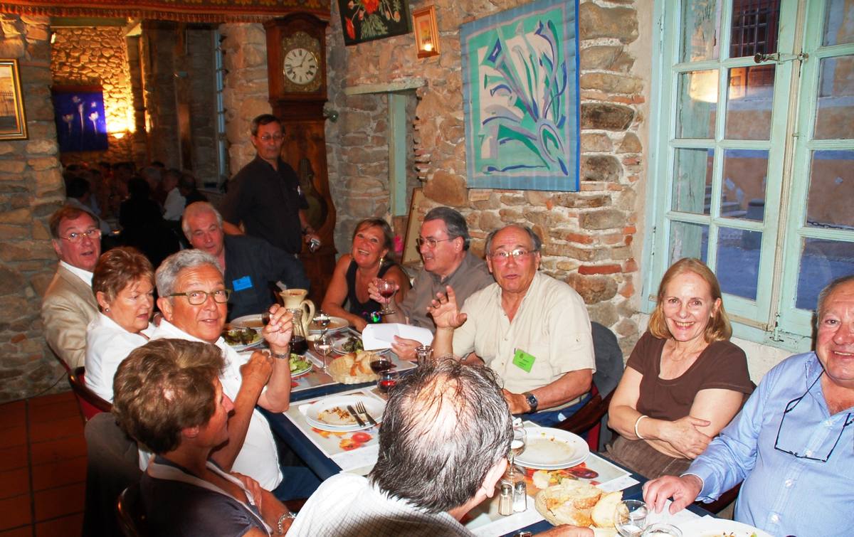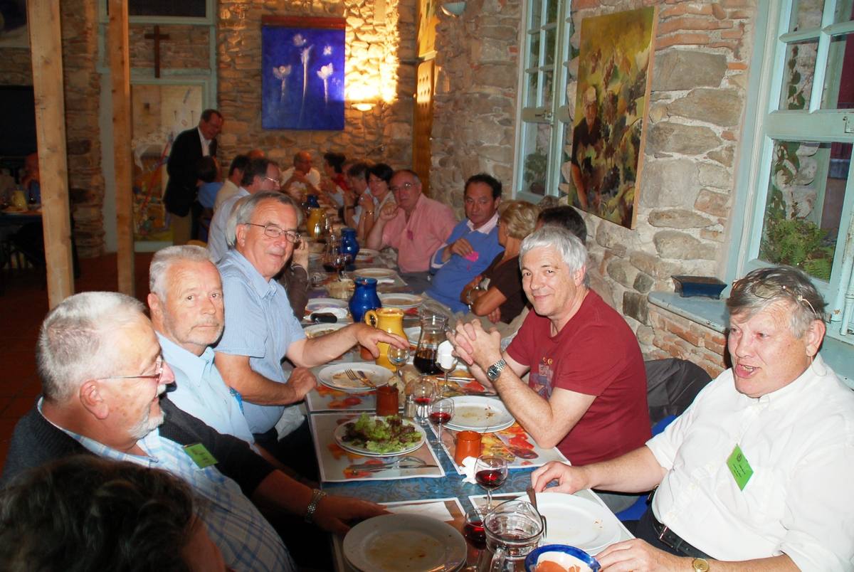 | Christian Vialle, Arnaud Proche, Hervé Gaudibert et Albert Mamy écoutent l'histoire de Sorèze