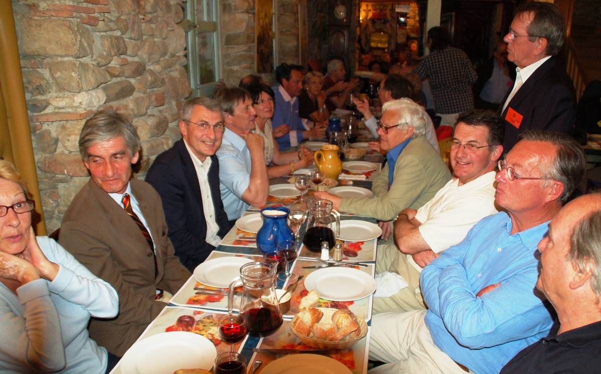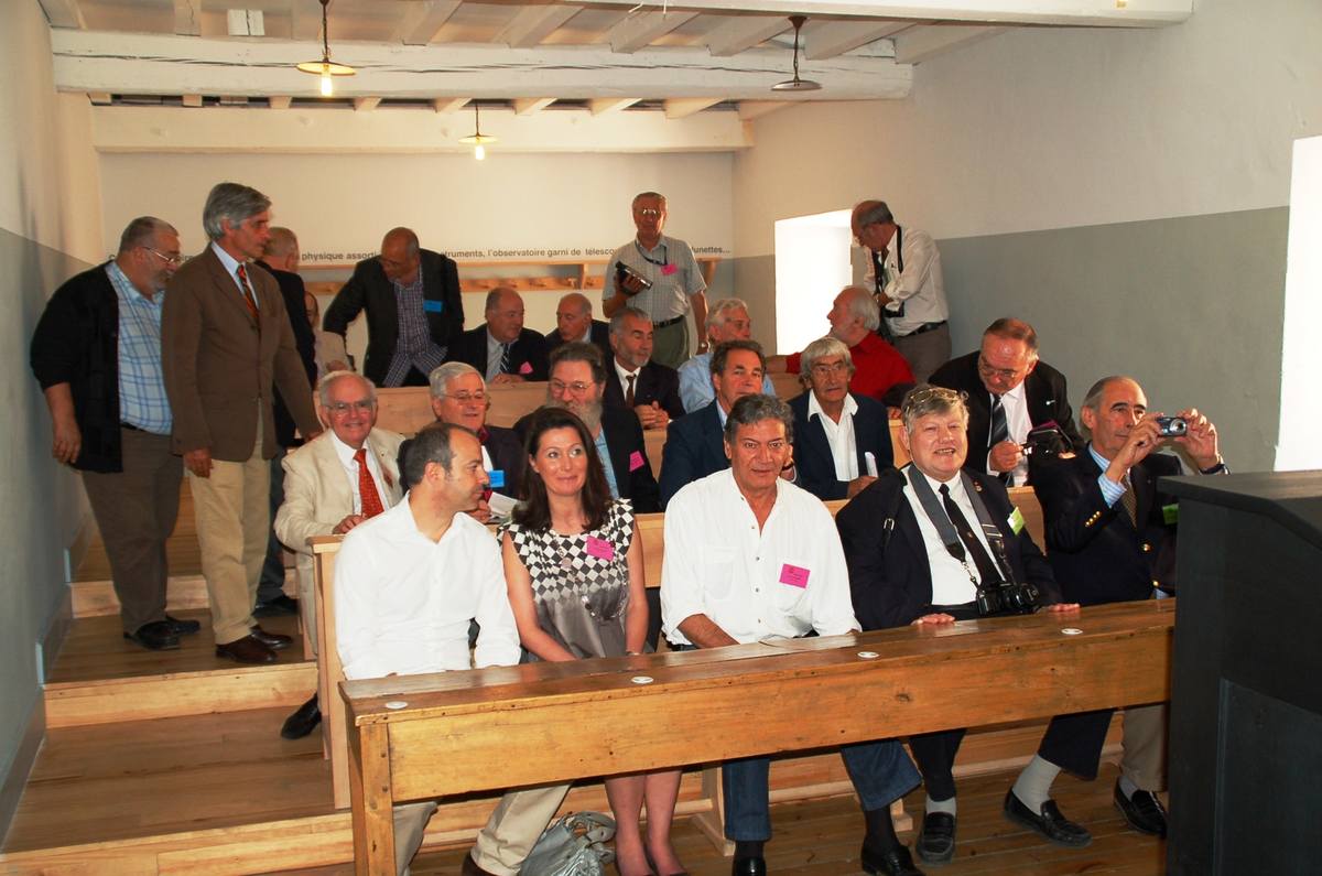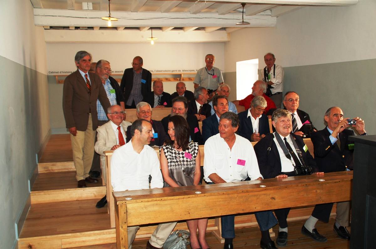 | Dans une salle de classe reconstituée : au 1er rang : ?, Guylaine Gianesini, Hervé Gaudibert, Frédéric De Helly et Dominique De Laurens-Castelet au 2ème : Ramon Casamitjana, Pierre Bouzigues, Jean-Marc Mathieu, Eric Dahlquist, Jean-Louis Martrille, Christian Vialle au 3ème : Paul Roqueplo, Eric Azaïs De Vergeron, Jean-Philippe Rives, ? au 4ème : Jean-François Pinto, Arnaud Proche et Albert Mamy