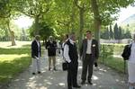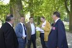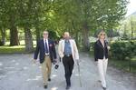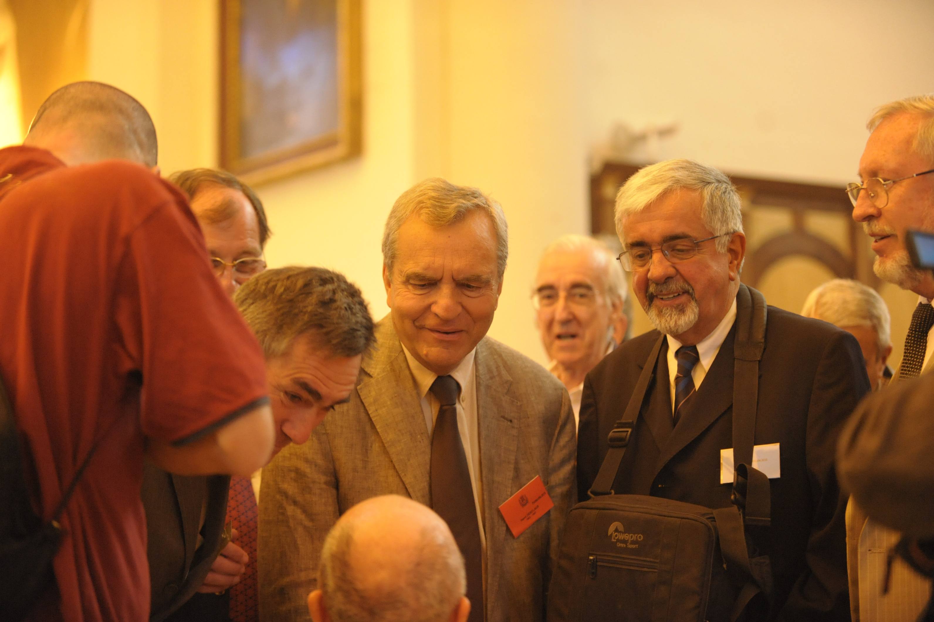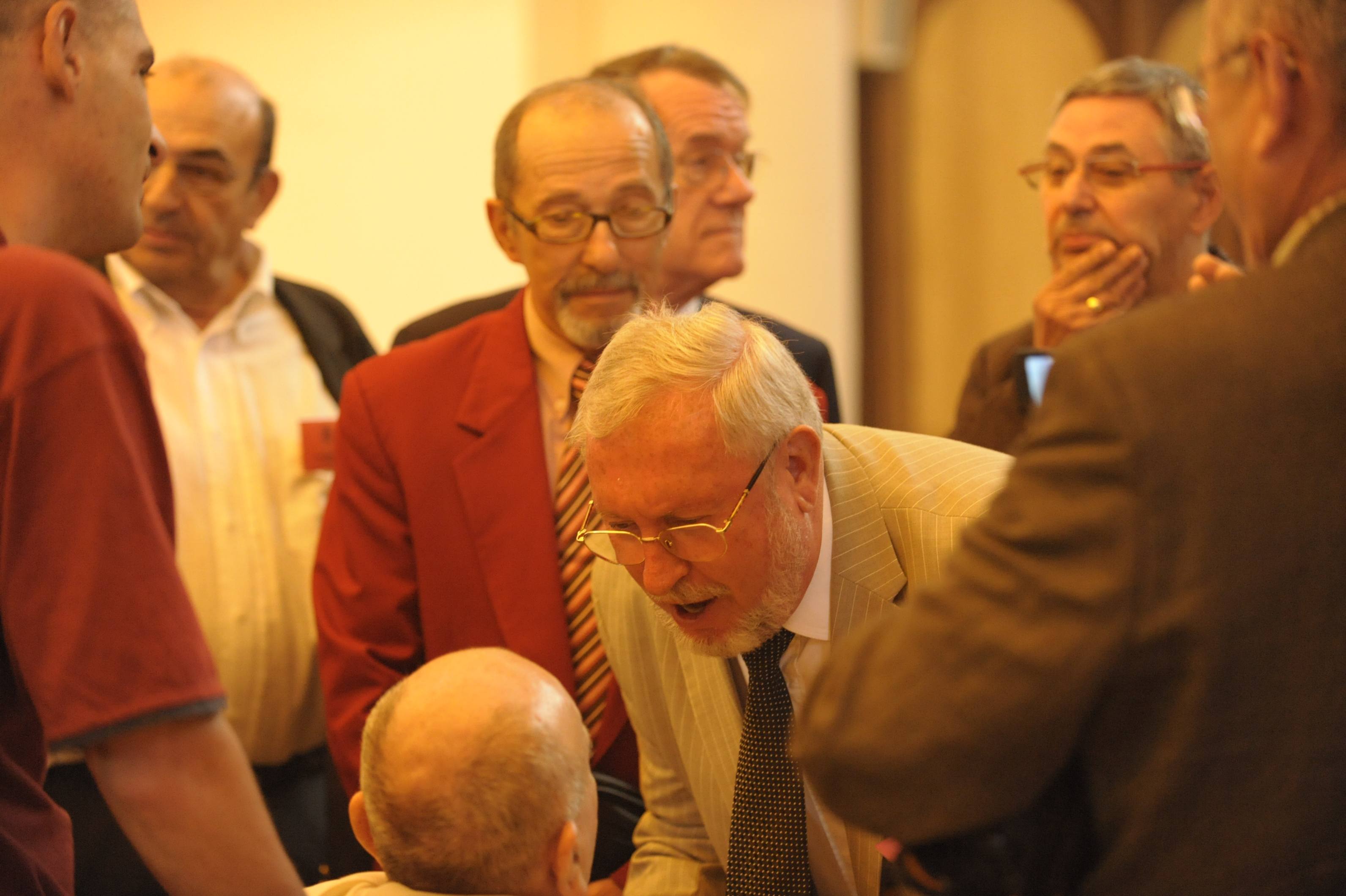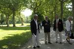 | Michel Broussou parle au père Montserret sous l'oeil de Christian Vialle et Pierre Roigt