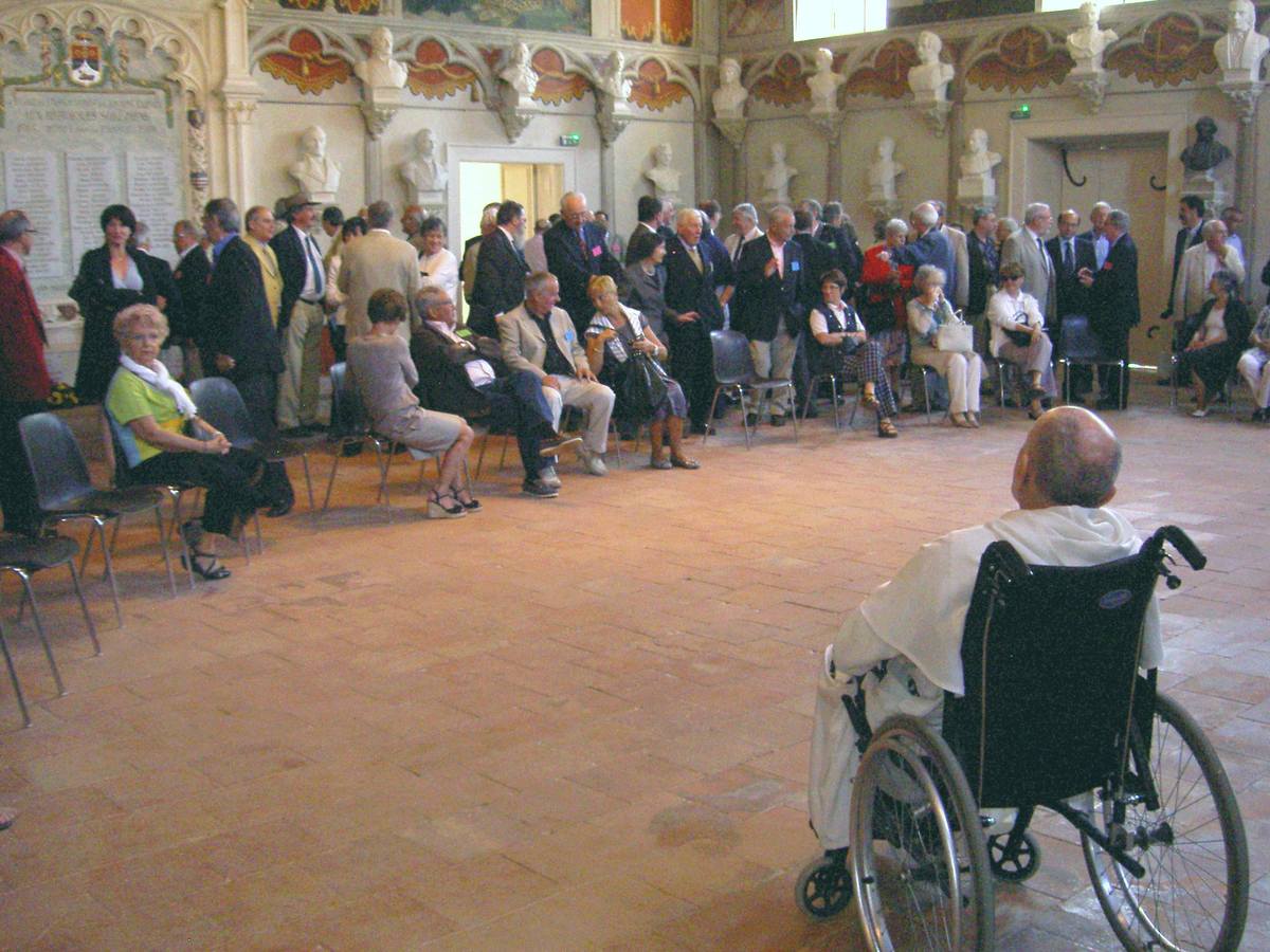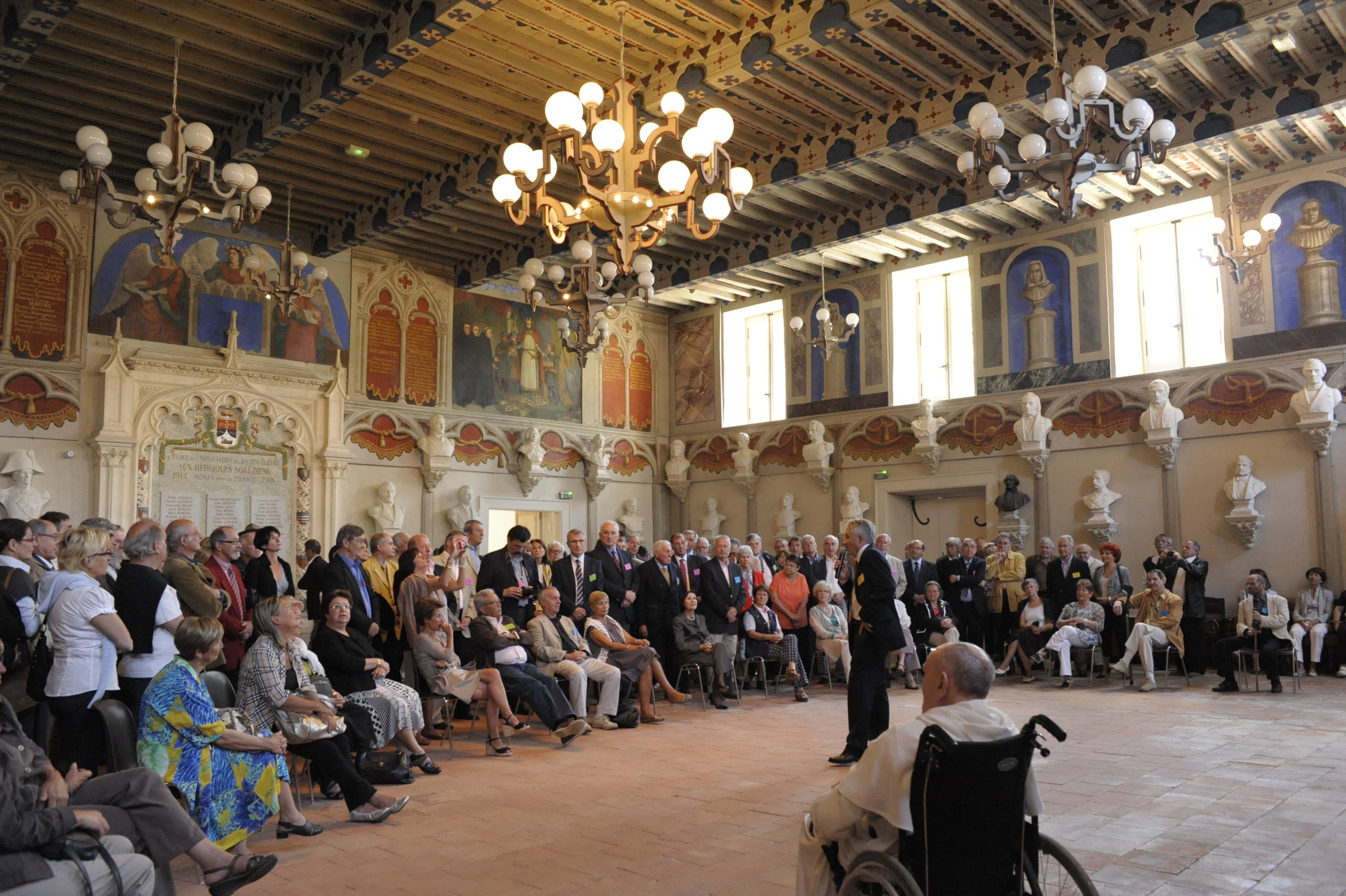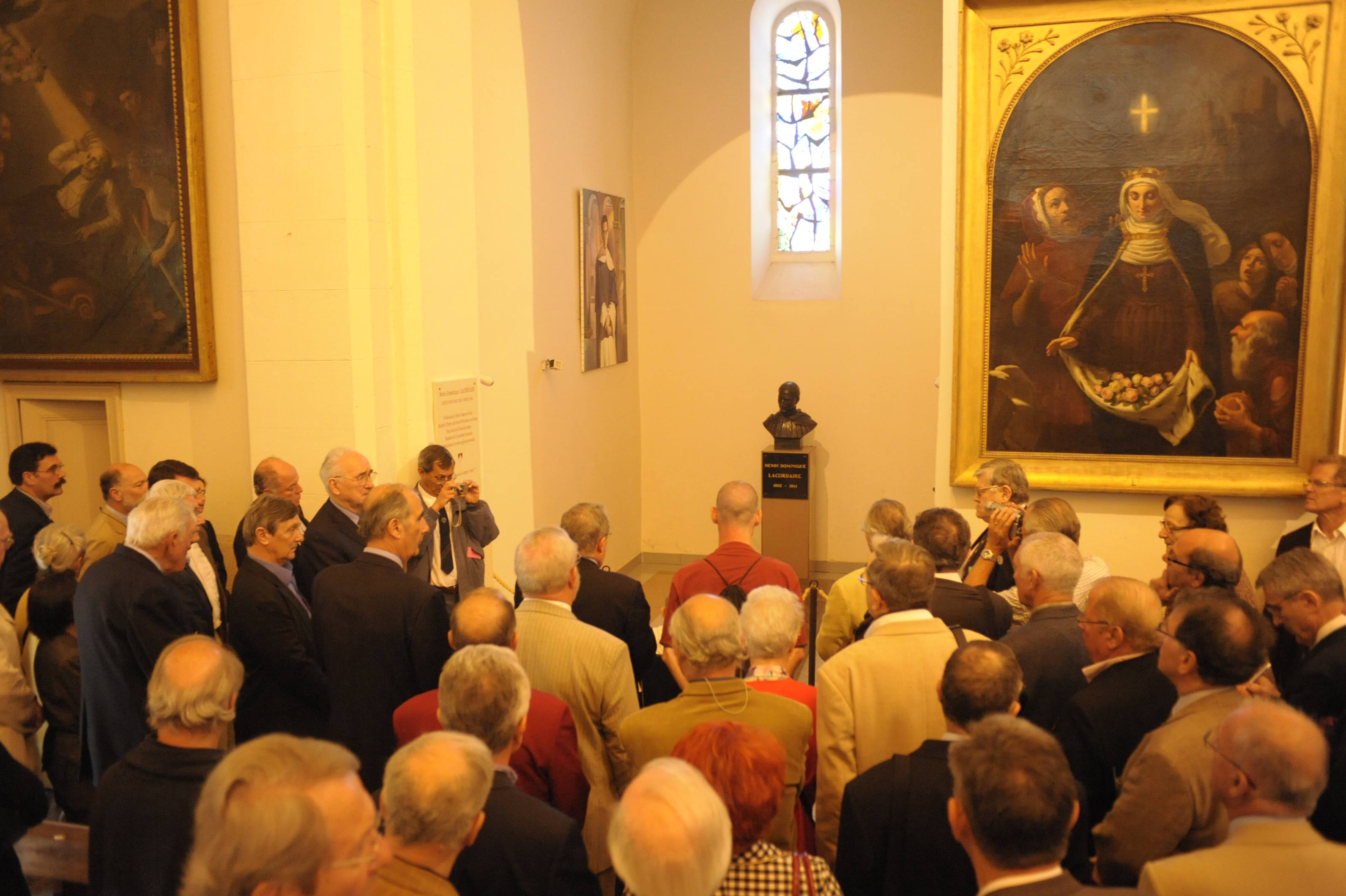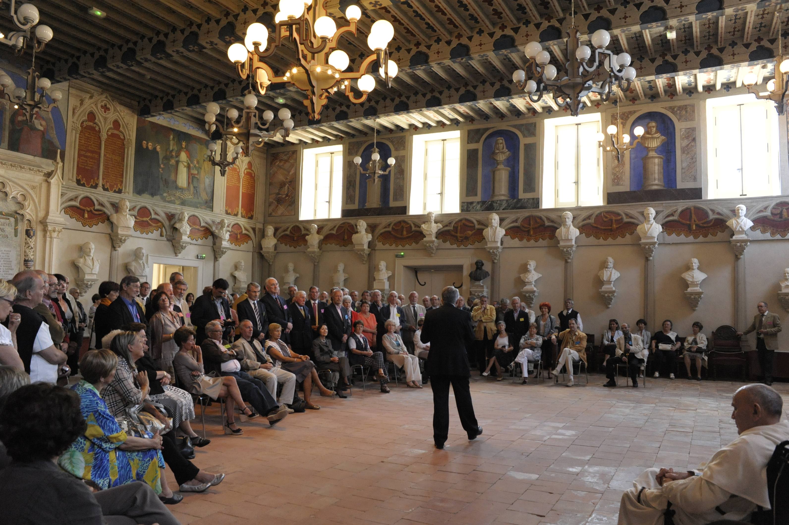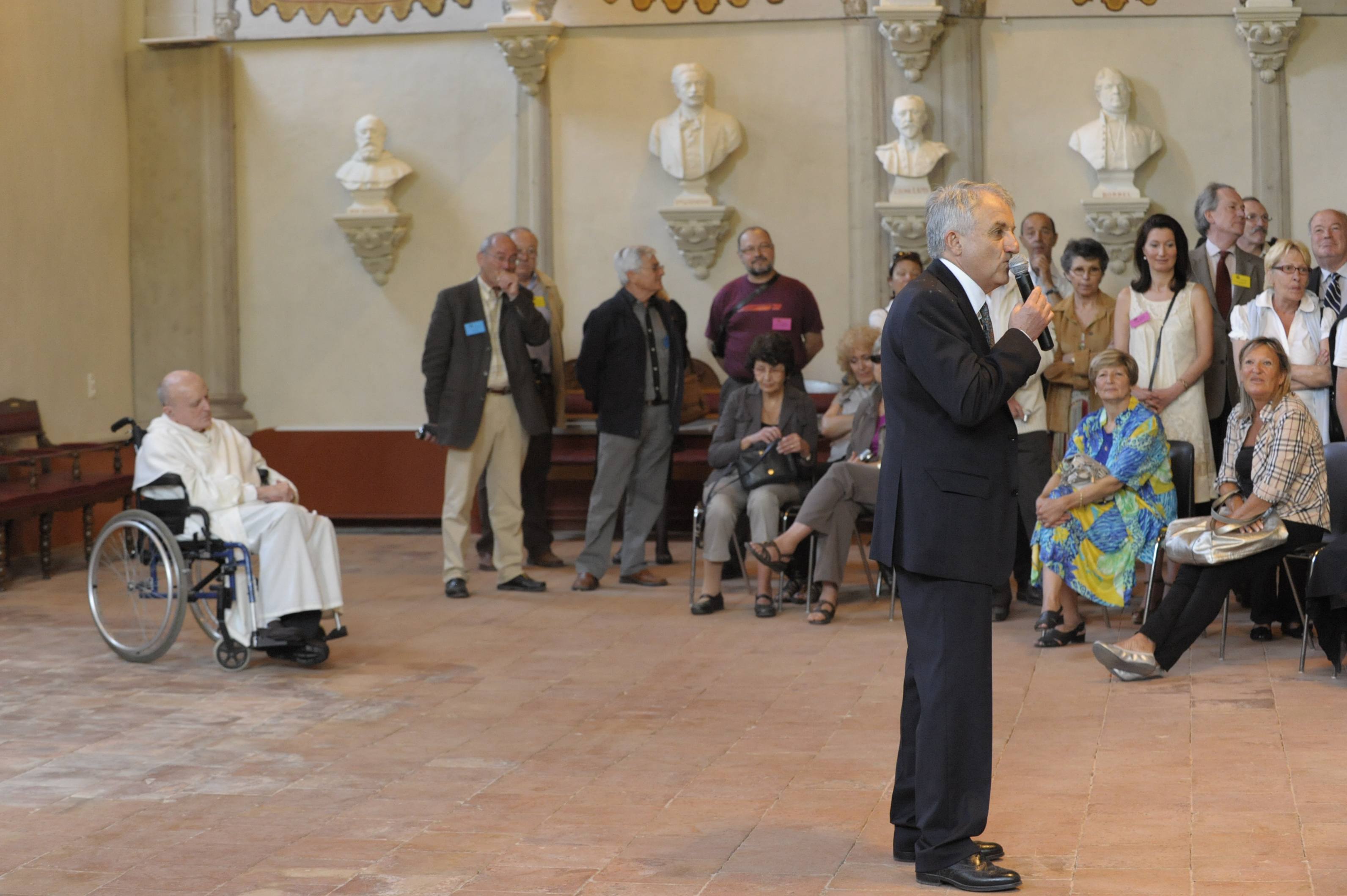 | La salle des Illustres. Le père Montserret sous les bustes de Barral de Baret, Dom Fougeras et Claude Devic