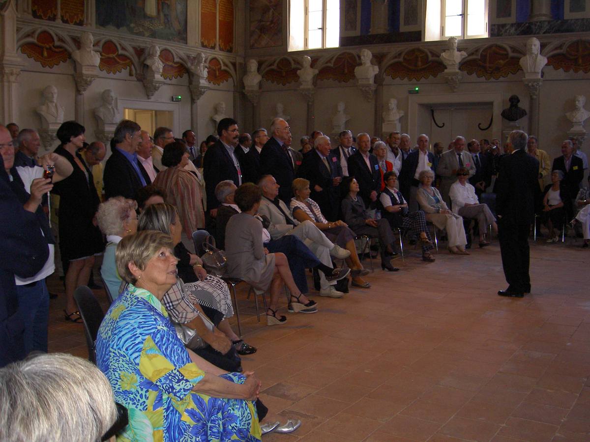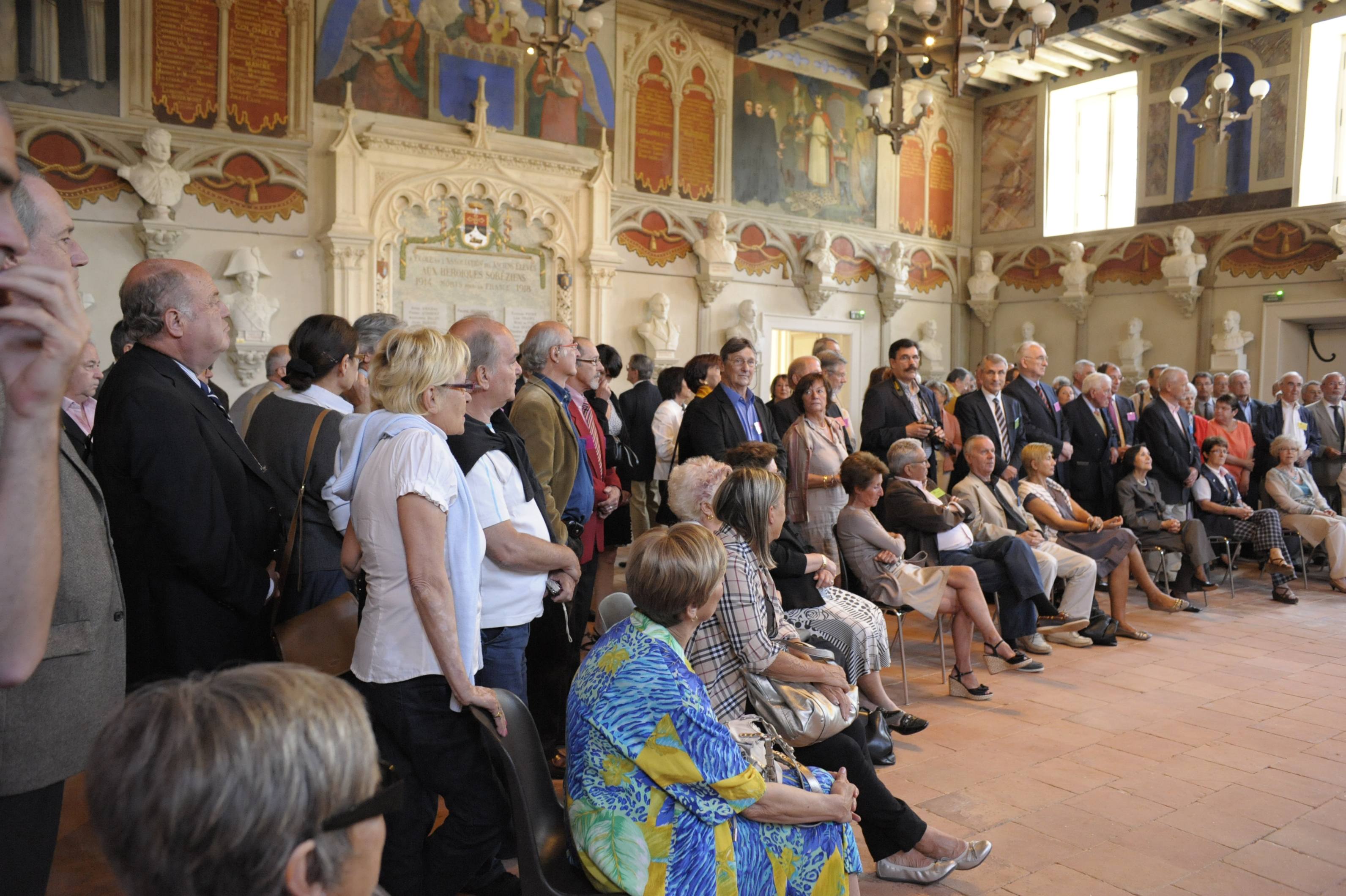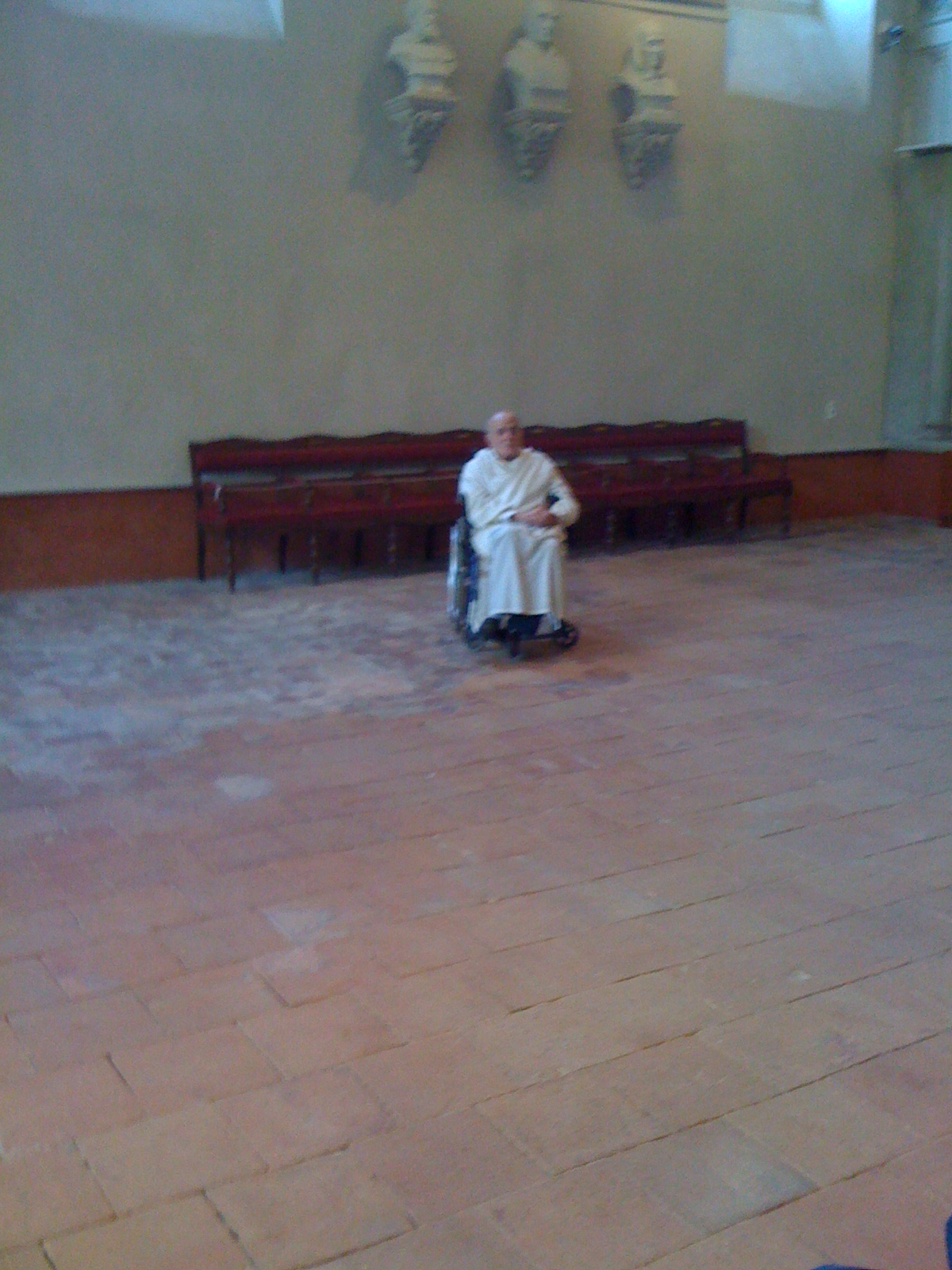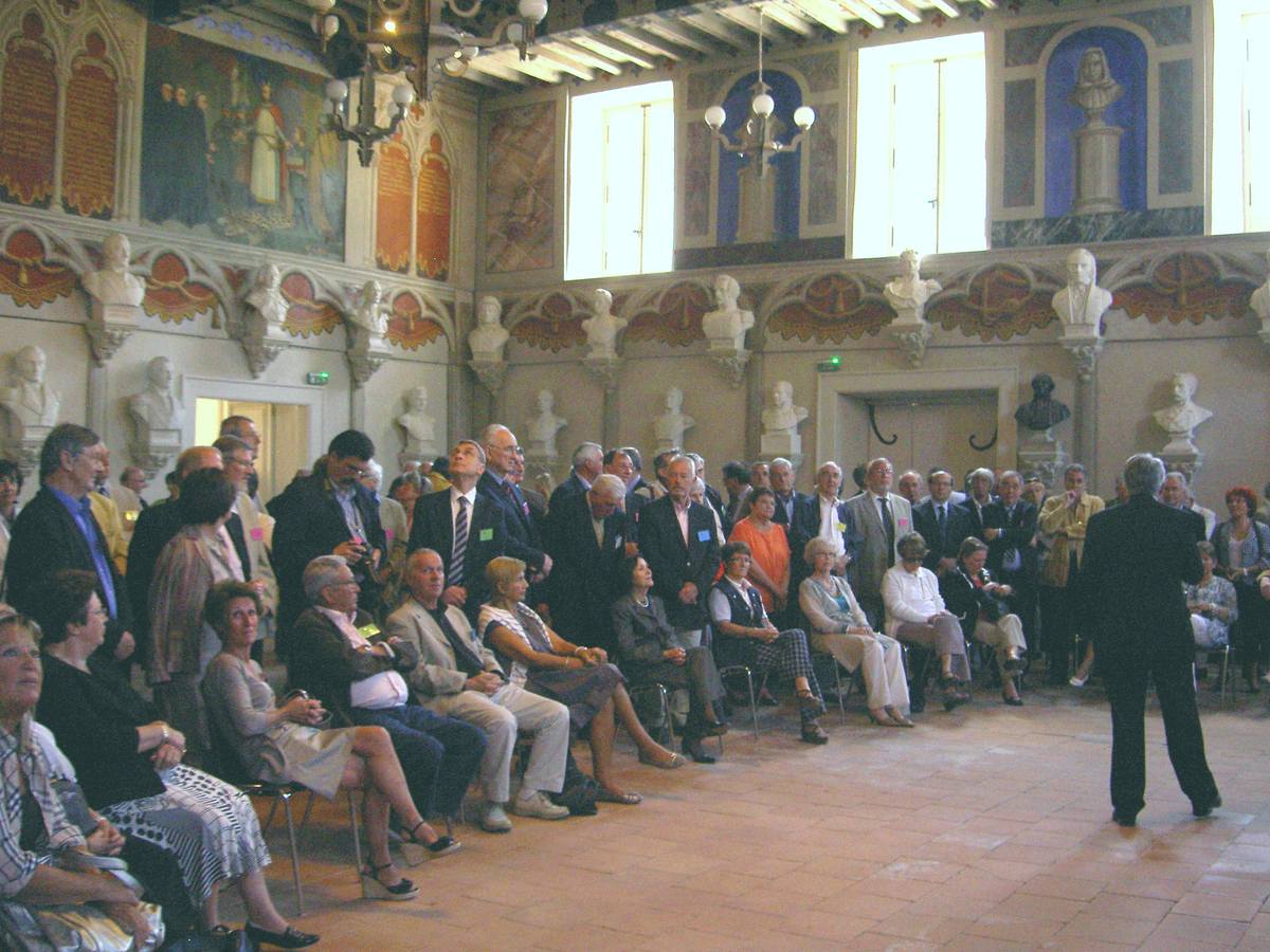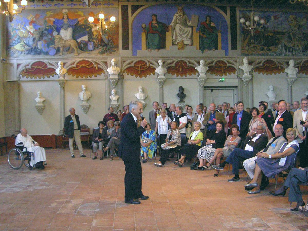 | La salle des Illustres. Le père Montserret sous les bustes de Barral de Baret, Dom Fougeras et Claude Devic