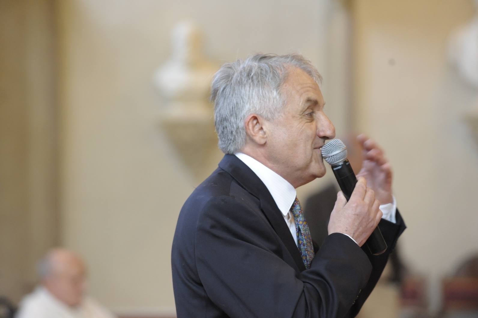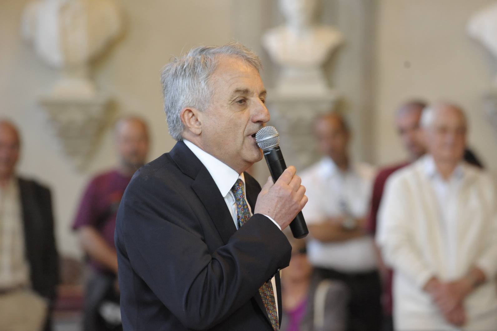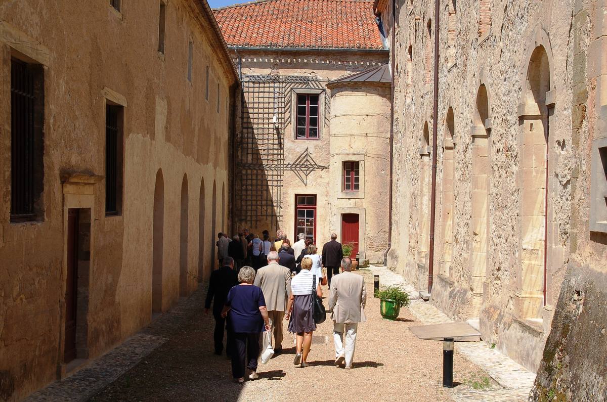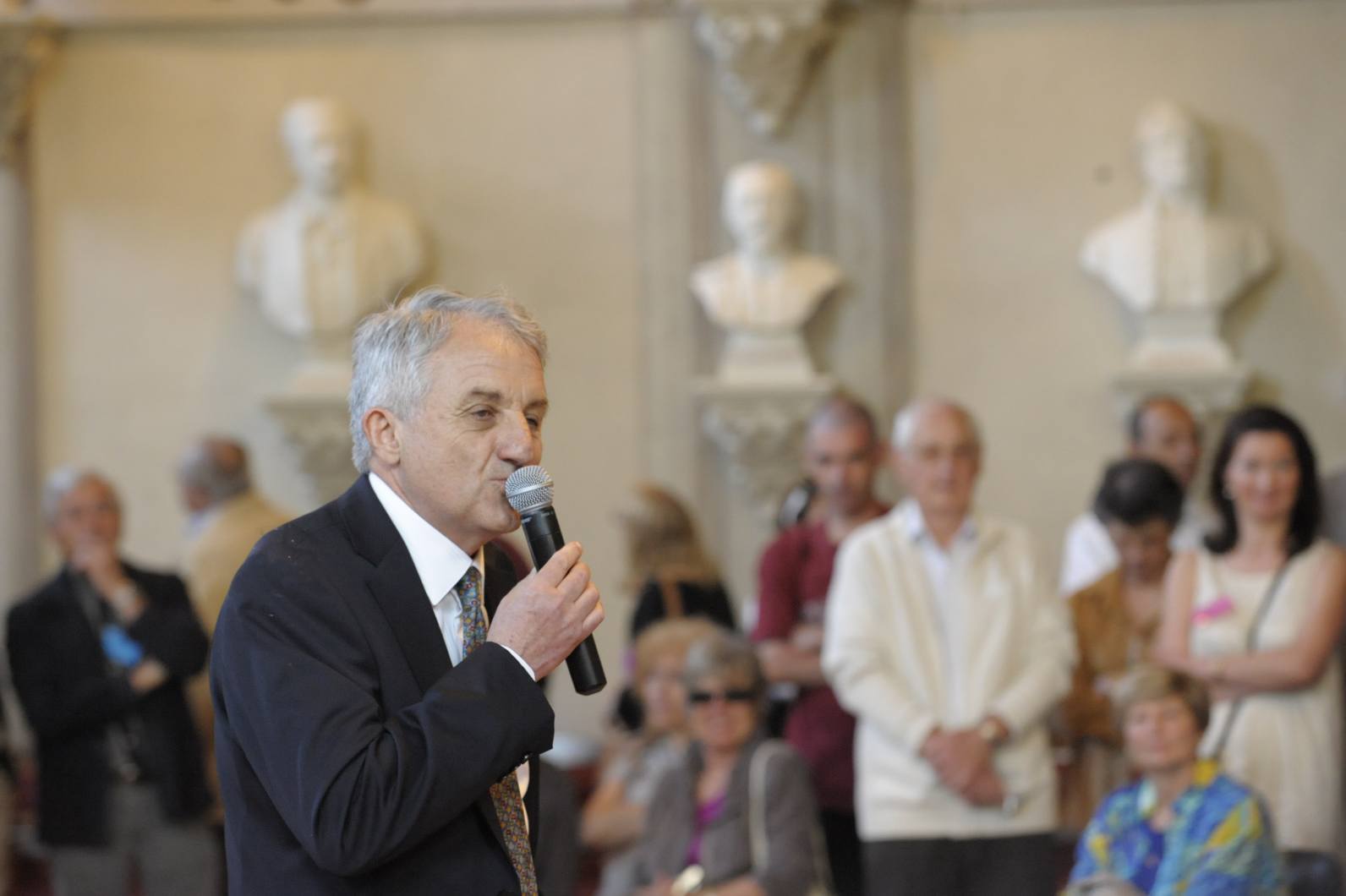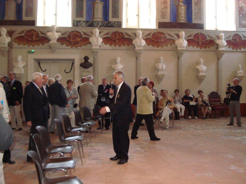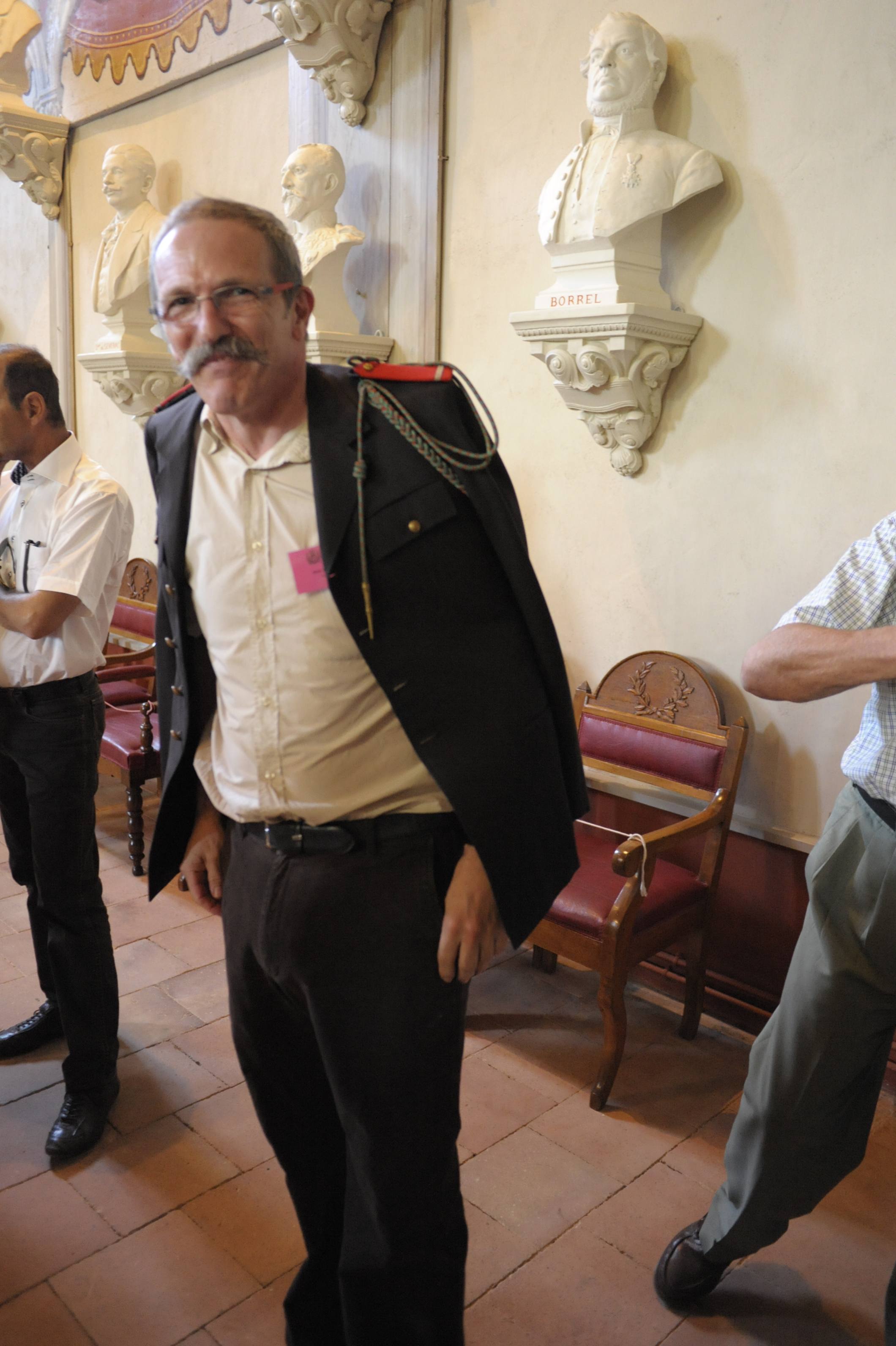 | La salle des Illustres. Le père Montserret sous les bustes de Barral de Baret, Dom Fougeras et Claude Devic