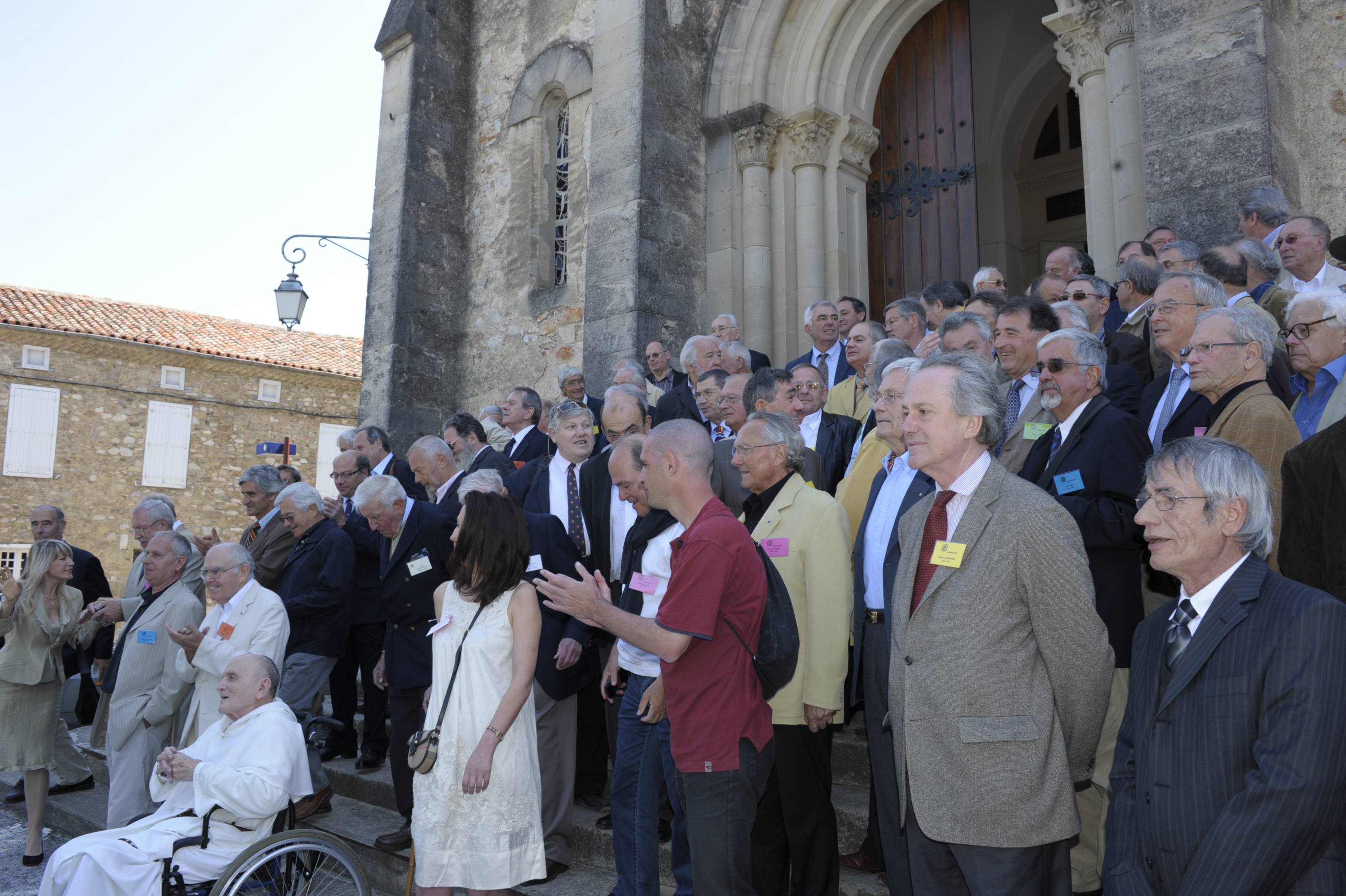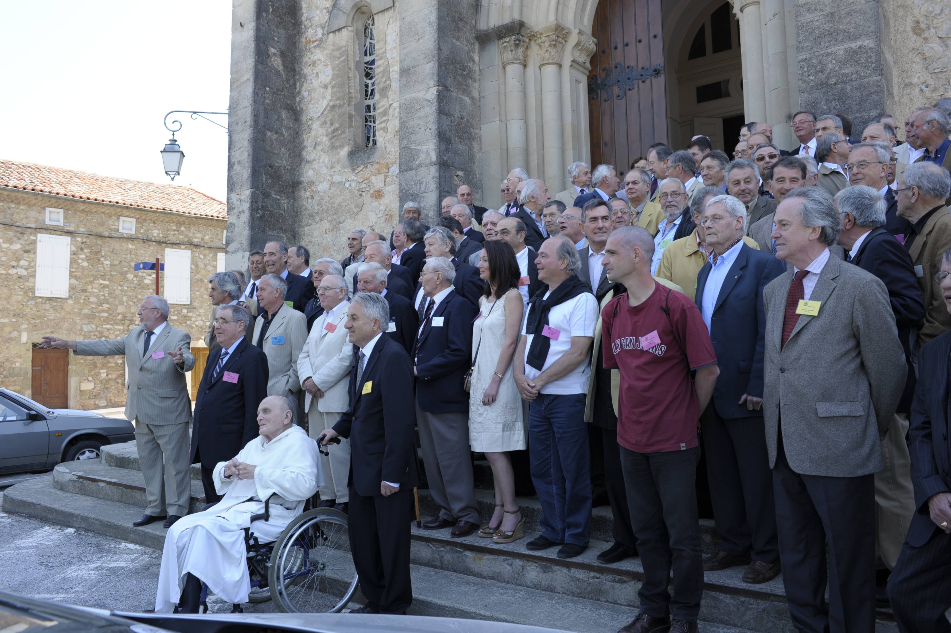| Séance de photos sur les marches de l'église du village