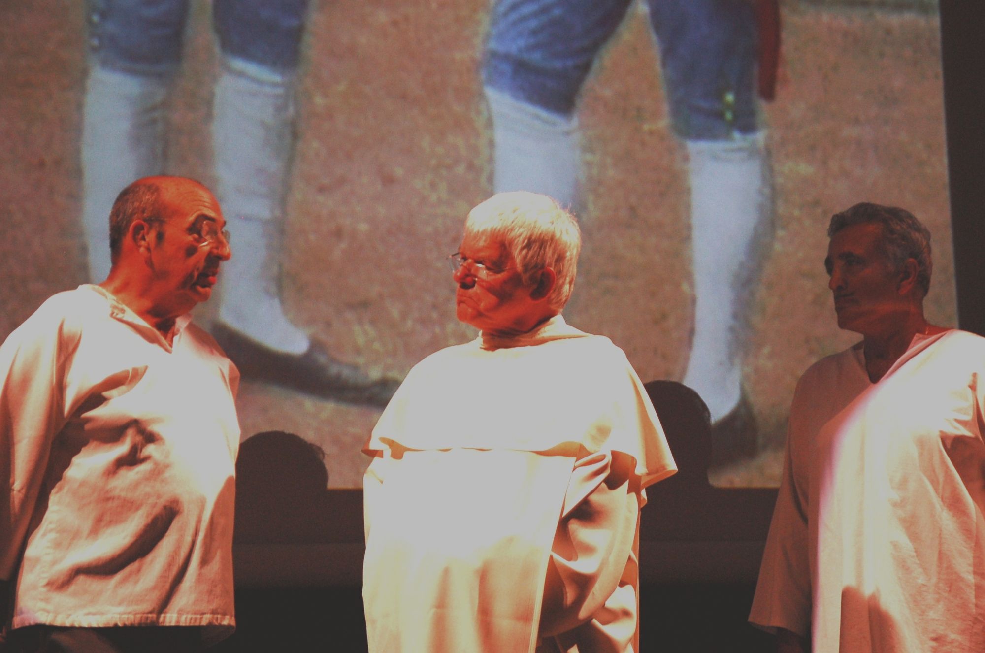 | Christian Mathon en Dom Bernard (rôle qu'il jouait en 1954) et Jacques Taboni