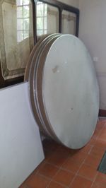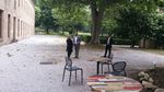 Houuuuuu ! Ces tables sont appuyées sur la vitre d'un tableau