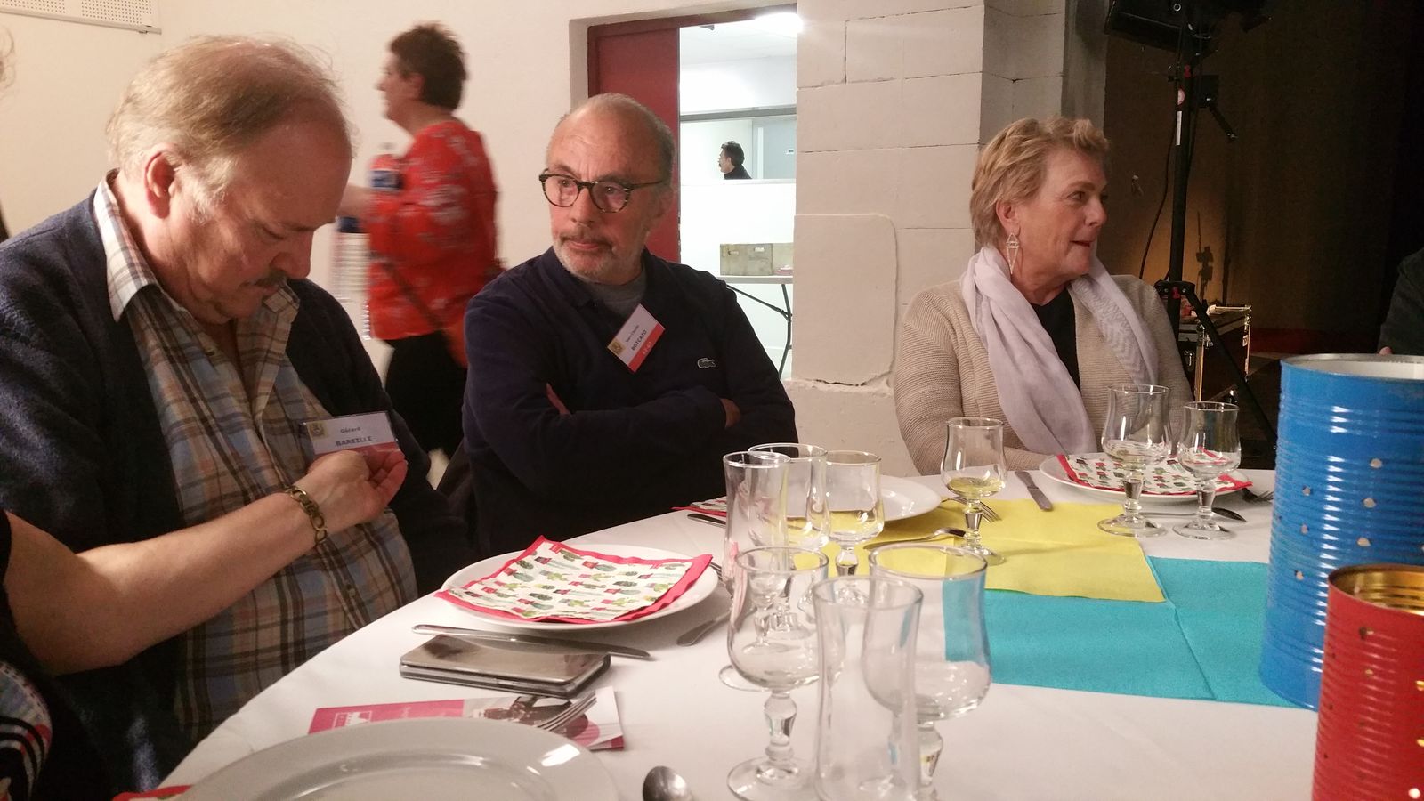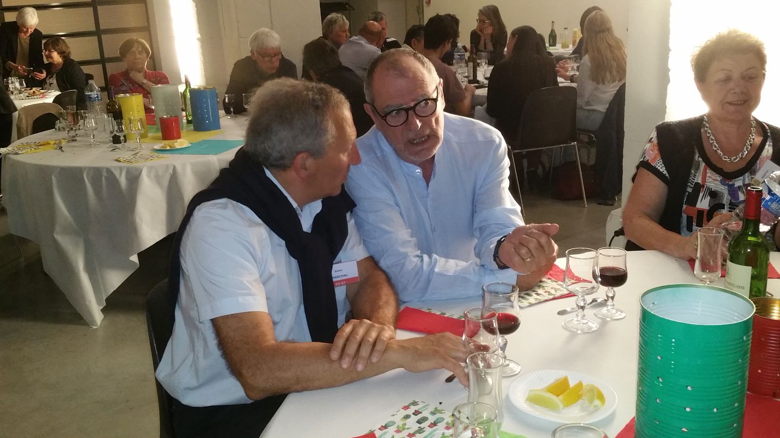 Le samedi, il y a eu un déjeuner à la Brasserie Saint Martin (chez Michel Pierson), qui réunissait une petite trentaine d'anciens, suivi par la visite du musée et des jardins du barrage de St Ferréol et du musée du centre de vol à voile de la montagne Noire (je ne peux apporter de commentaire, je n'ai pas fait la visite, préférant revoir le musée Dom Robert), avant d'enchaîner dans l'auditorium ou ancien théâtre, ou la grande salle d'études des Rouges) sur la pièce de théâtre L'ascenseur (dont l'un des deux acteurs la dédia à la mémoire de Bernard Murat), jouée par Gérard Tourniaire (61-66) et sa petite fille Camille Dura. Le dimanche, après la messe, la centaine d'anciens et anciennes et leurs époux(-ses) se sont retrouvés dans l'abbatiale pour un banquet et l'assemblée générale de l'Association Sorézienne, où les quatre administrateurs ont été élus ou reélus (Patrick Chabin, Jean-Paul Bossuge, Olivier Campardou, Frédéric De Helly) et qui s'est terminée par le renouvellement du bureau exécutif à l'identique. |