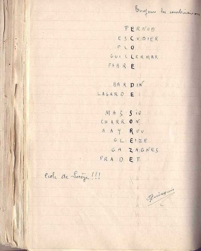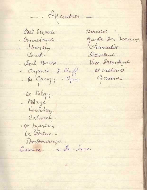 Fabien Del Monte, Jean Martimor, Jean Bardin, Marcel Combi, Henri Pech Barre, Pierre Aymes, Serres de Gauzy, Maurice de Blay, Claude Courbon, Edgard Calaret de Bresson, De Martin, Henri De Ferluc, Paul Boudouresque.