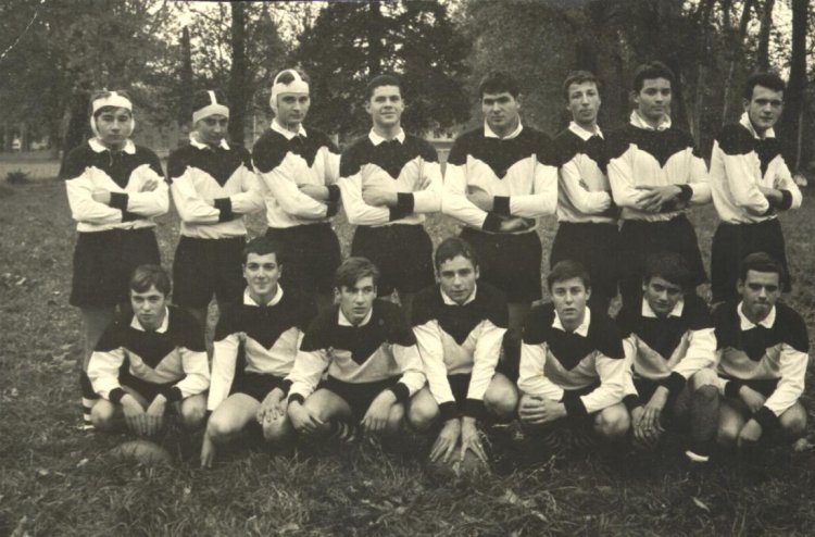 Photo prise dans le parc de l'Ecole juste avant un match contre une équipe de Mazamet, arbitré par Mr Tinel.