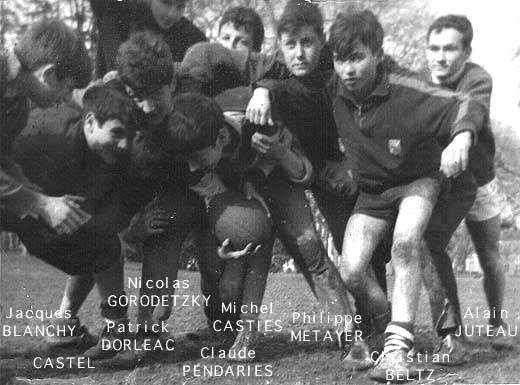 Beltz (ailier droit), François Cropsal (ailier gauche), Vigneau (2ème centre), Escarguel (1er centre et capitaine), Métayer (arrière), Castel (demi d'ouverture de l'équipe mais aussi pressenti par le Stade Toulousain pour jouer dans leur équipe cadets. Il était très doué, malheureusement lors d'une partie à Toulouse il a reçu un mauvais plaquage qui a touché sa colonne vertébrale et qui a mis fin à sa carrière de rugbyman), Sépulchre (demi de mêlée).